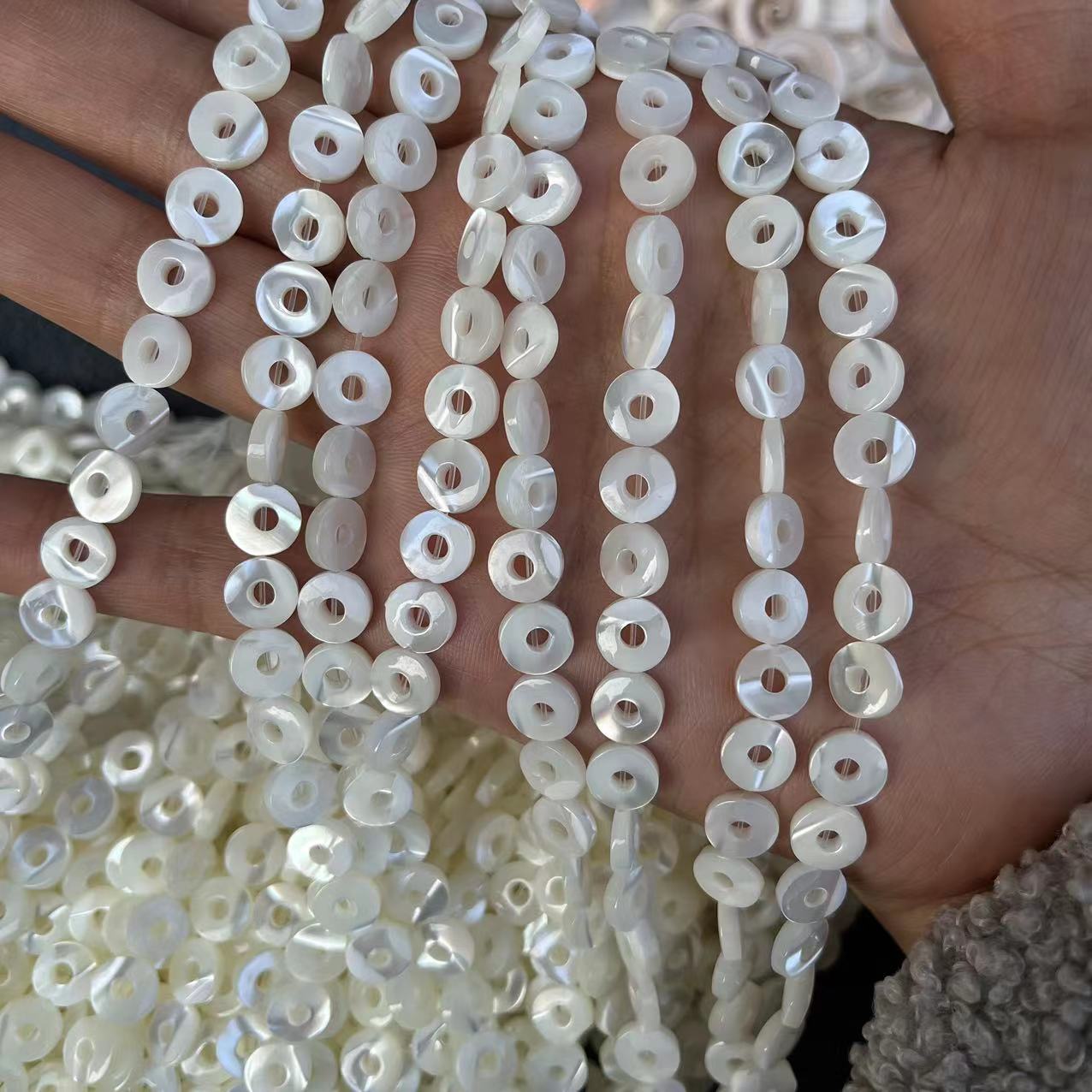 Turbanschnecken Perlen, Kreisring, DIY, weiß, 8mm, ca. 50PCs/Strang, verkauft von Strang