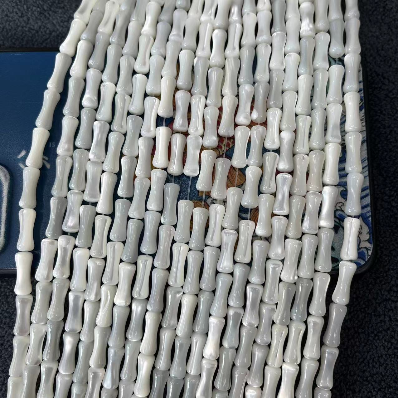 Turbanschnecken Perlen, Bambus, DIY, weiß, 5x12mm, ca. 32PCs/Strang, verkauft von Strang