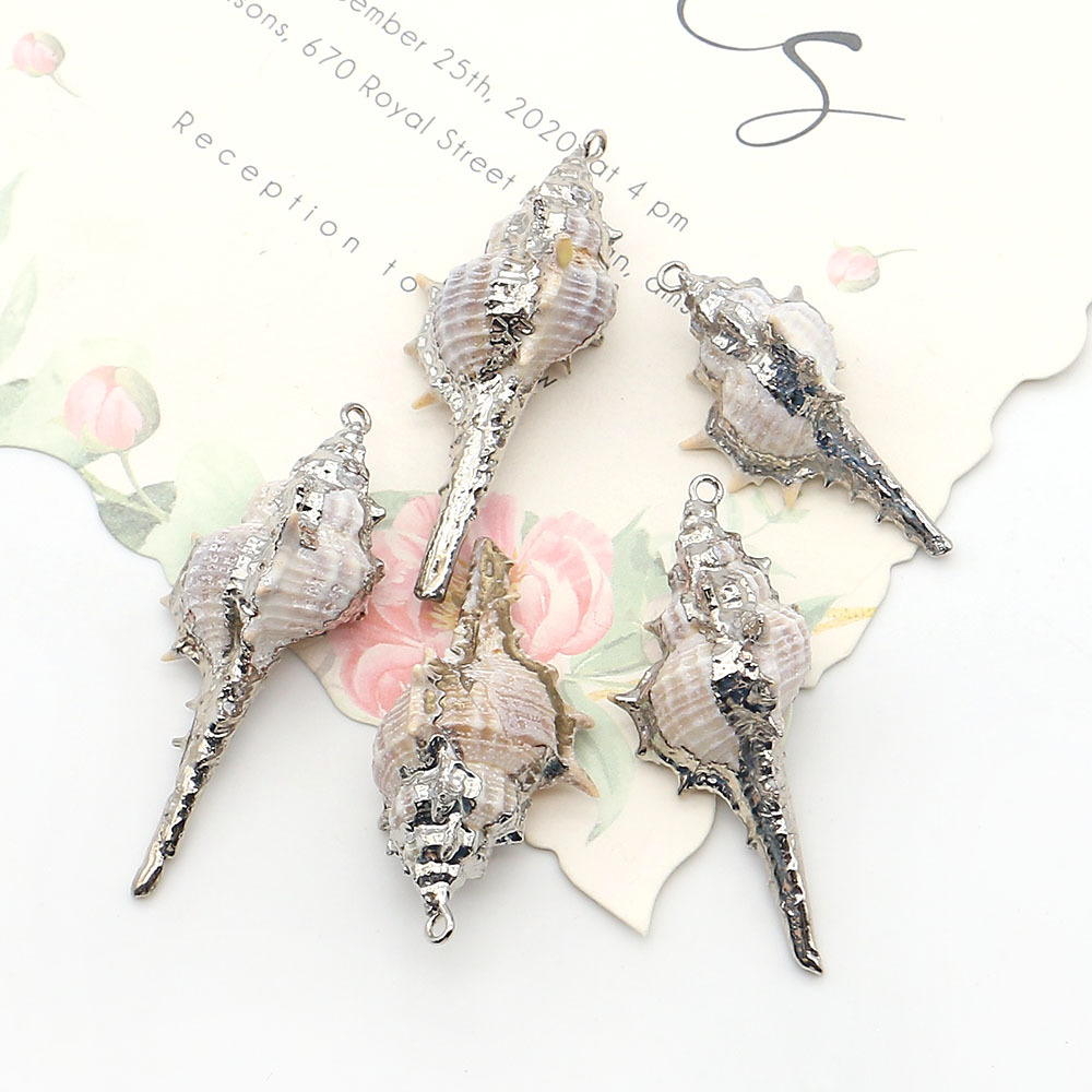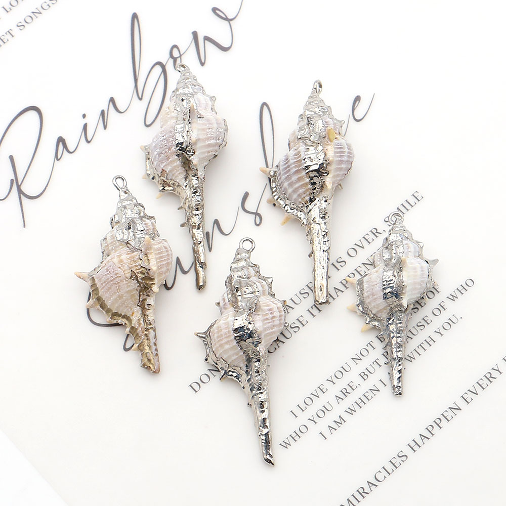 Trompete Shell Messing Anhänger, Muschel, mit Eisen, Strandschnecke, silberfarben plattiert, DIY, gemischte Farben, 19x39mm-19x51mm, verkauft von PC