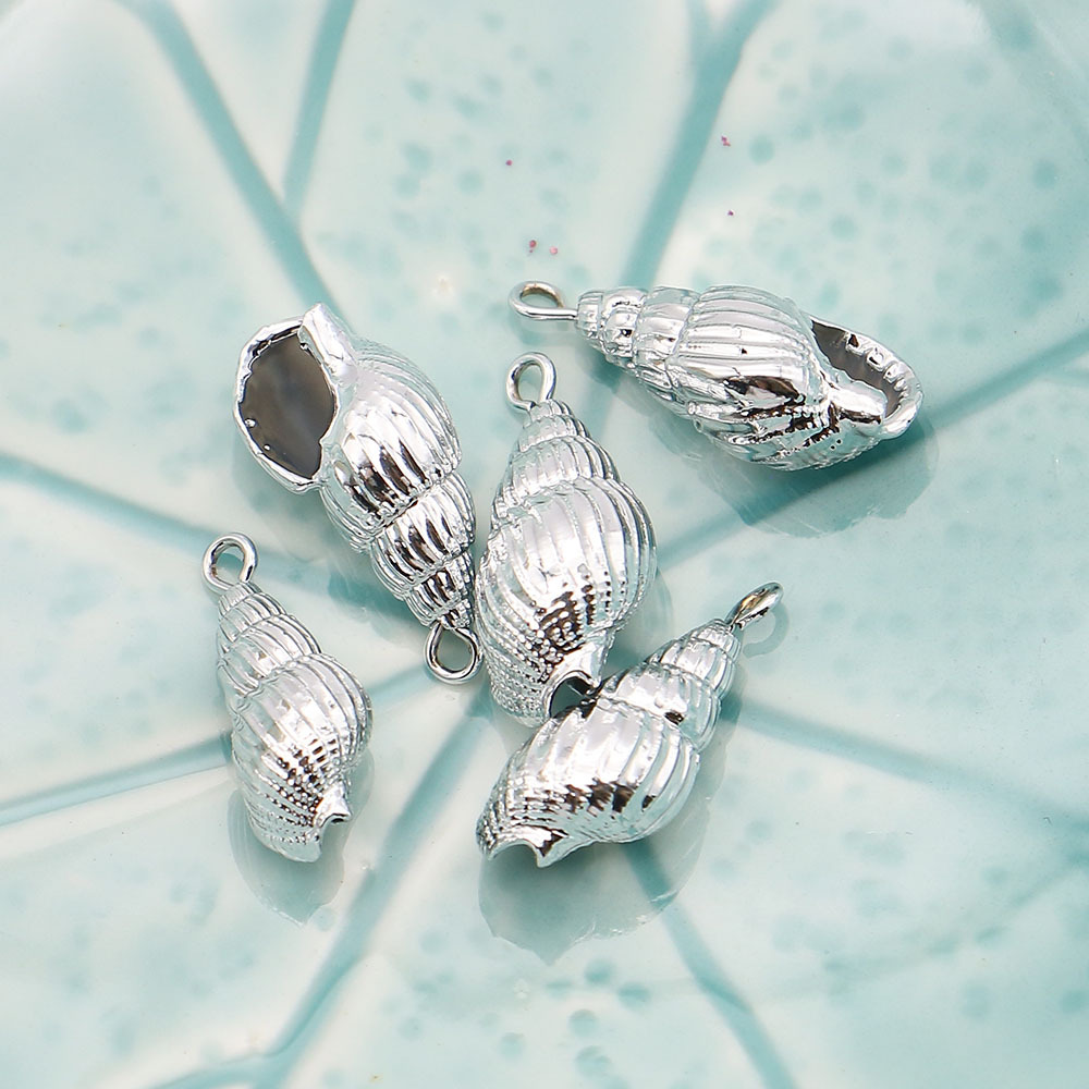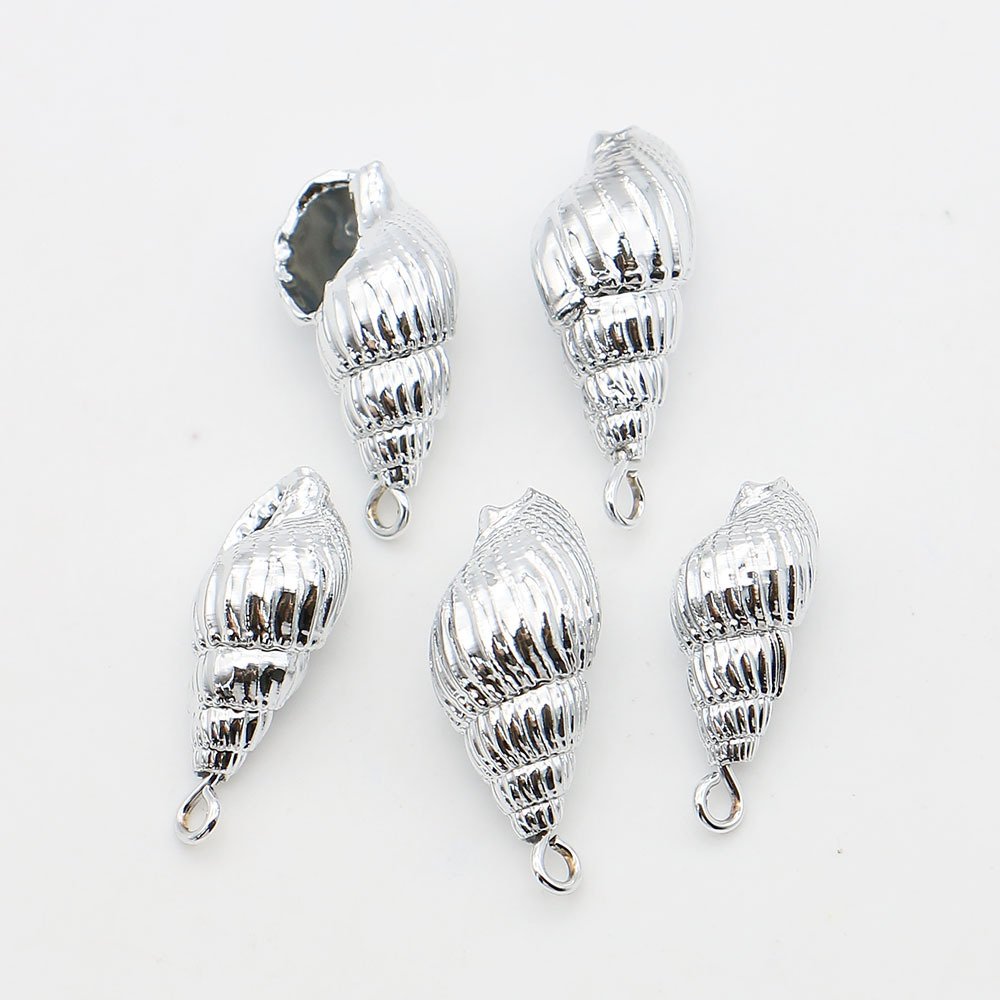 Trompete Shell Messing Anhänger, Muschel, mit Eisen, Strandschnecke, silberfarben plattiert, DIY, Silberfarbe, 9x20mm-11x23mm, verkauft von PC