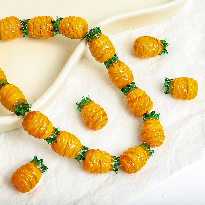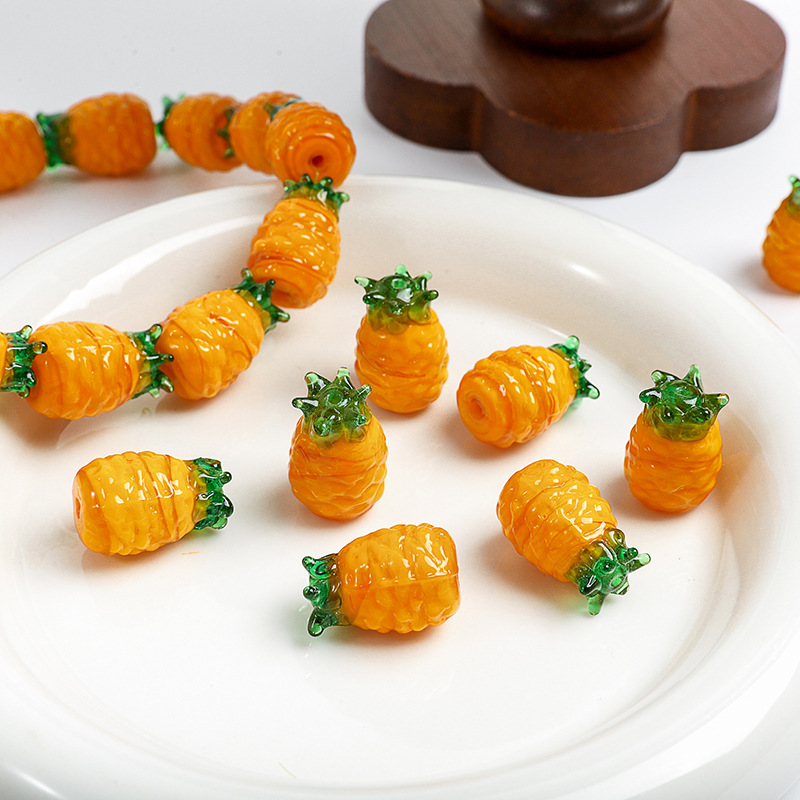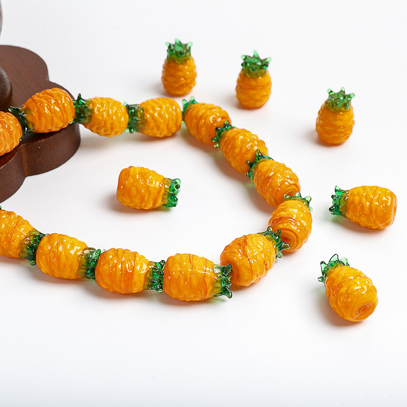 Vernickelt Glasperlen, Glas, Ananas, DIY, 15x20mm, Bohrung:ca. 2mm, verkauft von PC