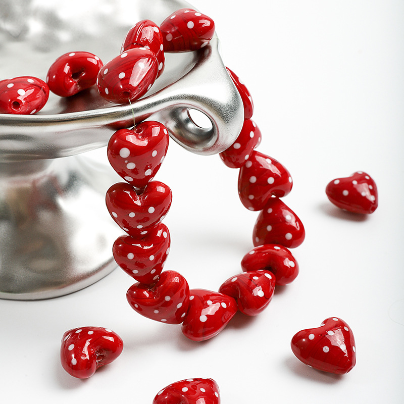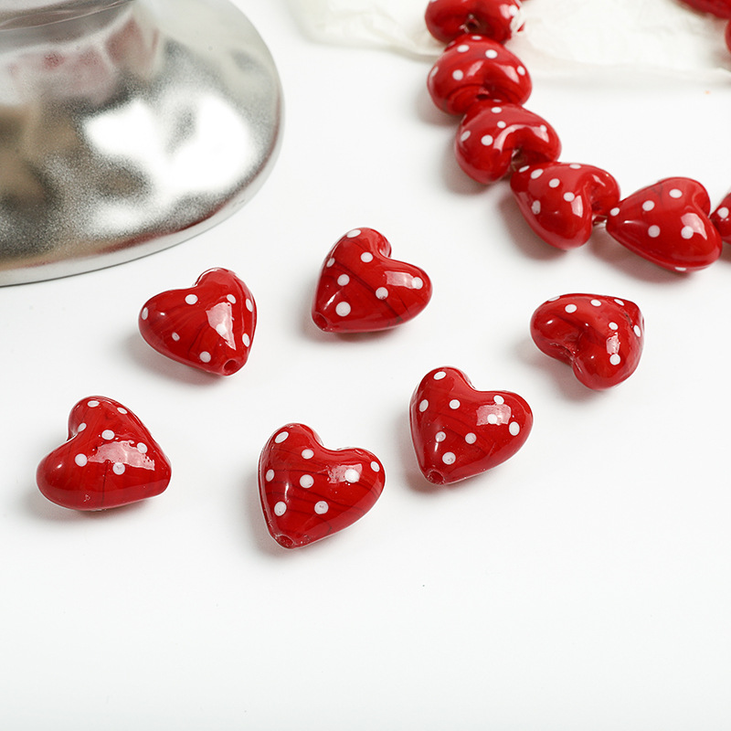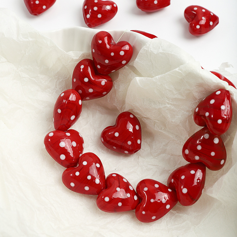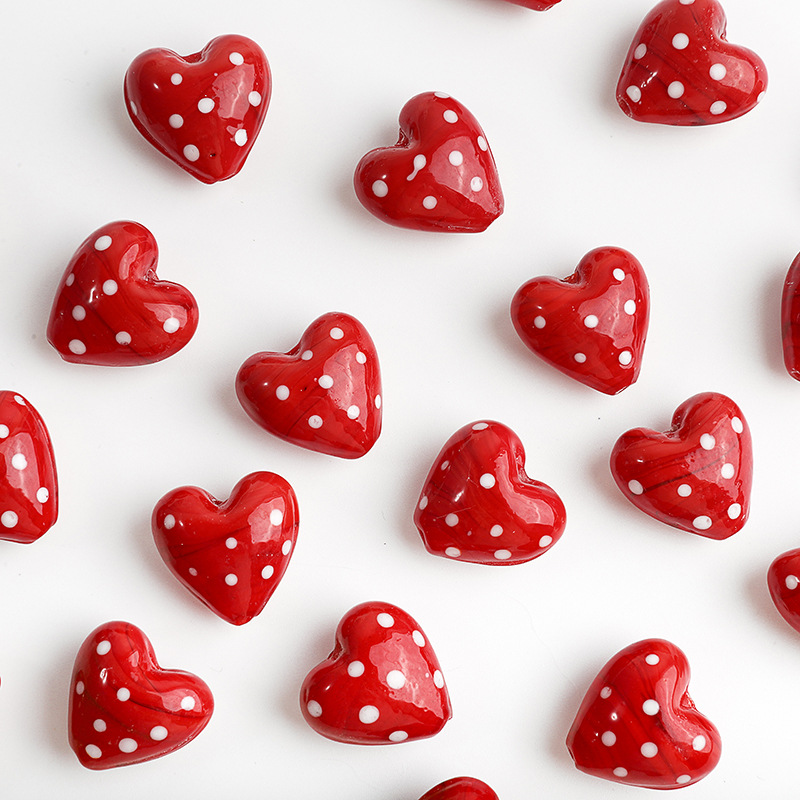 Vernickelt Glasperlen, Glas, Herz, DIY, rot, 20x20mm, Bohrung:ca. 2mm, verkauft von PC