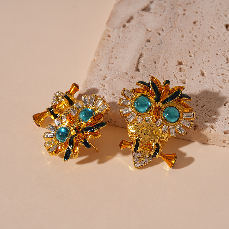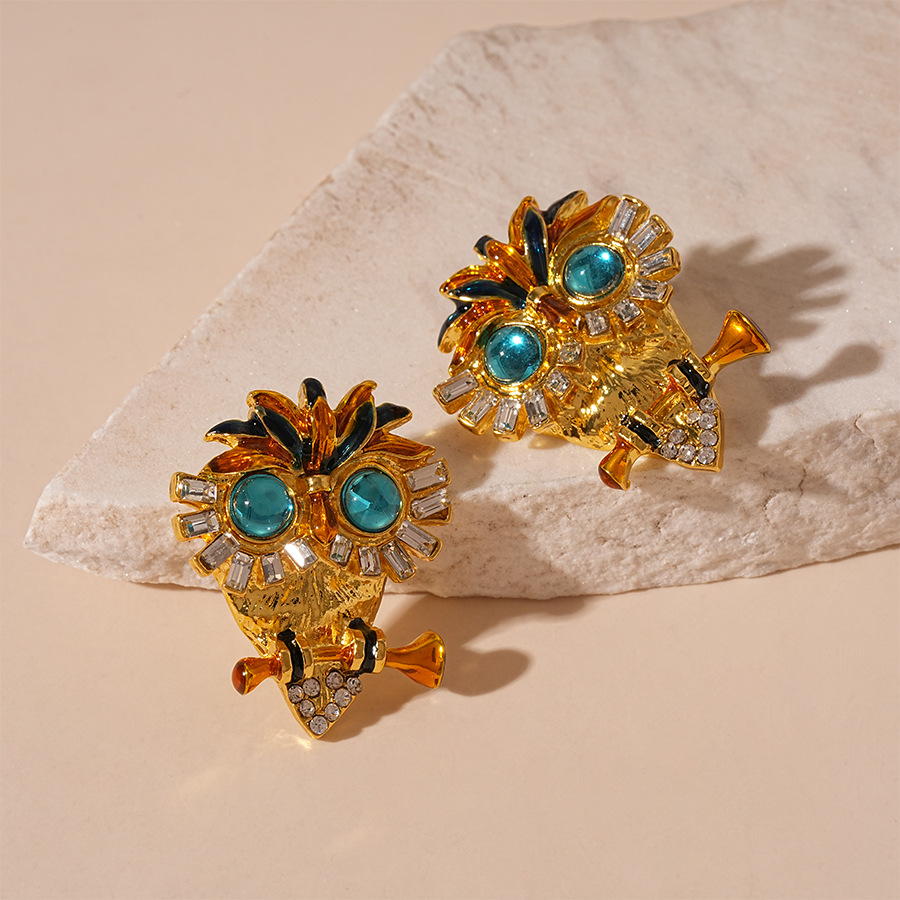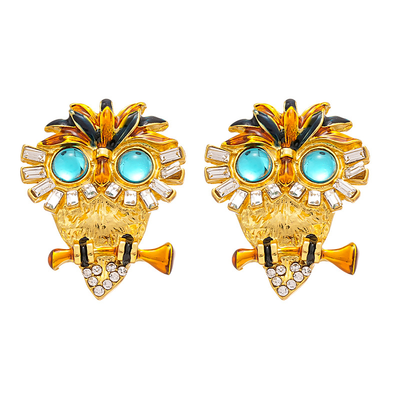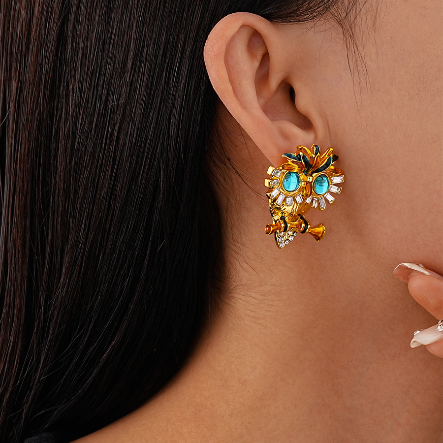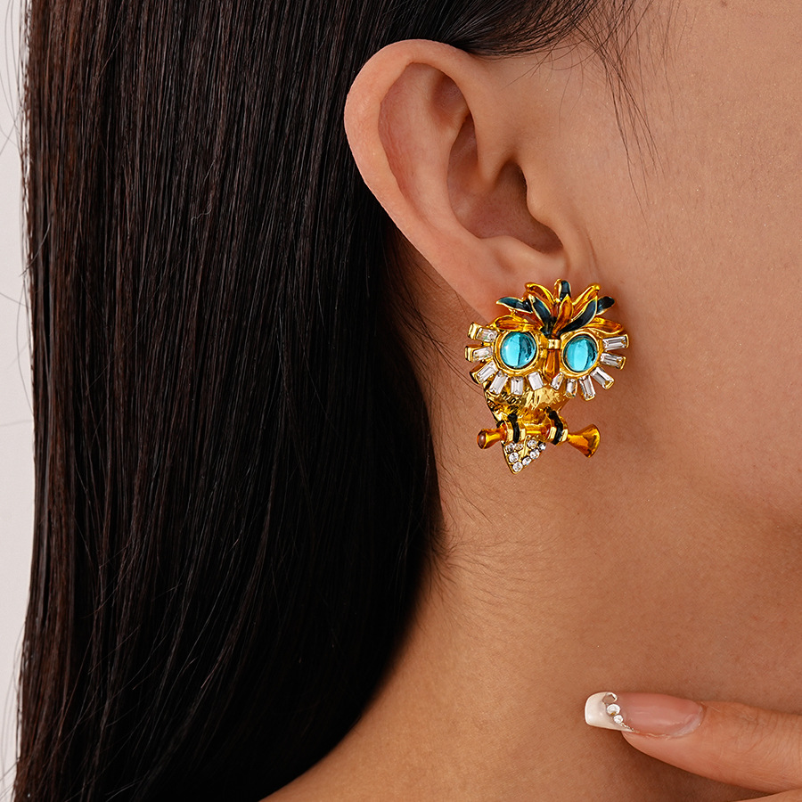 Zink Legierung Strass Ohrstecker, Zinklegierung, Eule, goldfarben plattiert, Modeschmuck & mit Strass, goldfarben, 36x30mm, verkauft von Paar