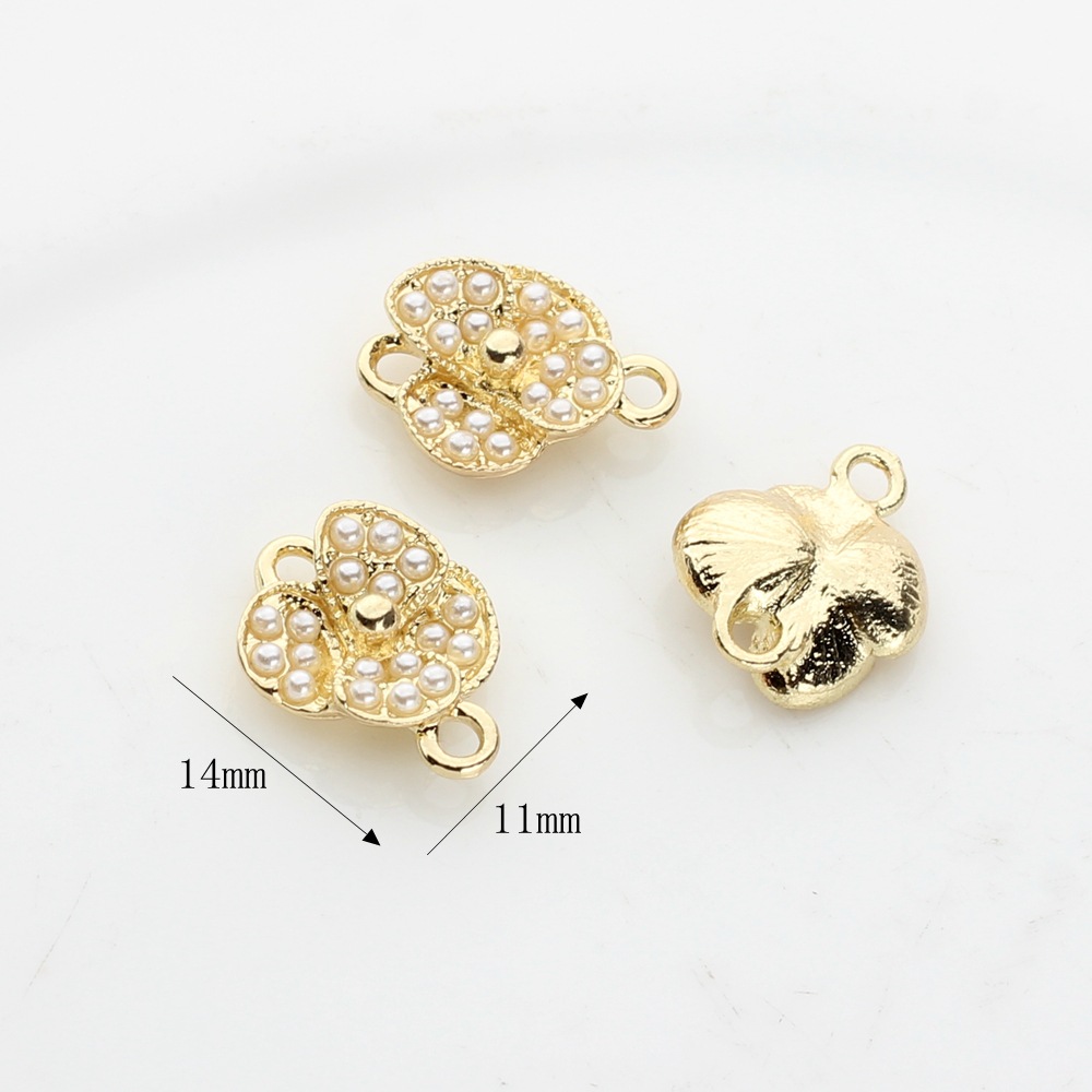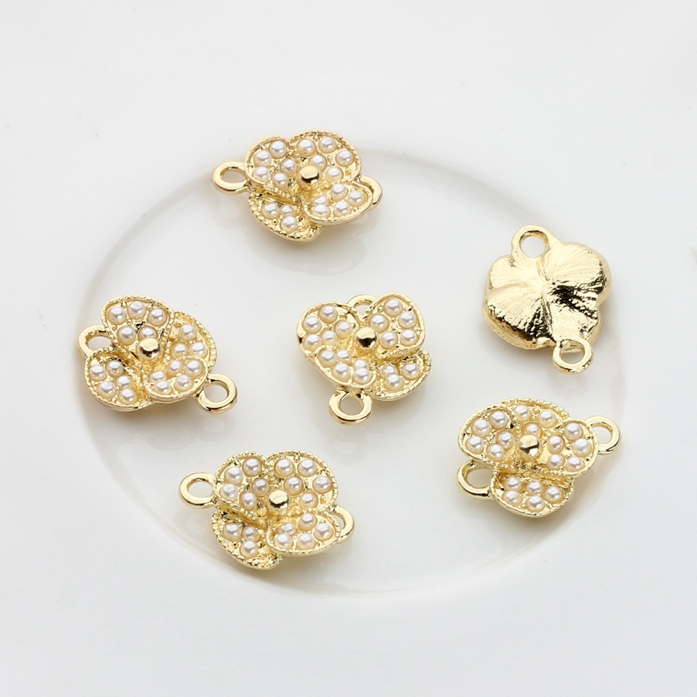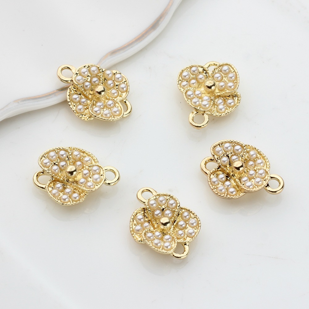 Zink Legierung Anhänger Verbinder, Zinklegierung, mit Kunststoff Perlen, Blume, goldfarben plattiert, DIY, goldfarben, 100PCs/Tasche, verkauft von Tasche