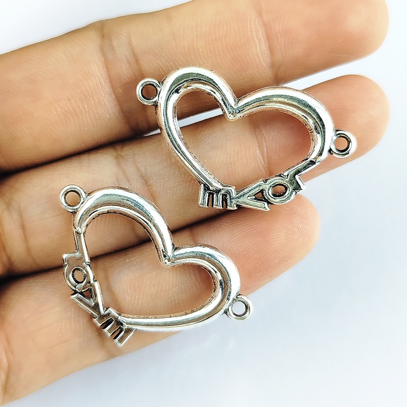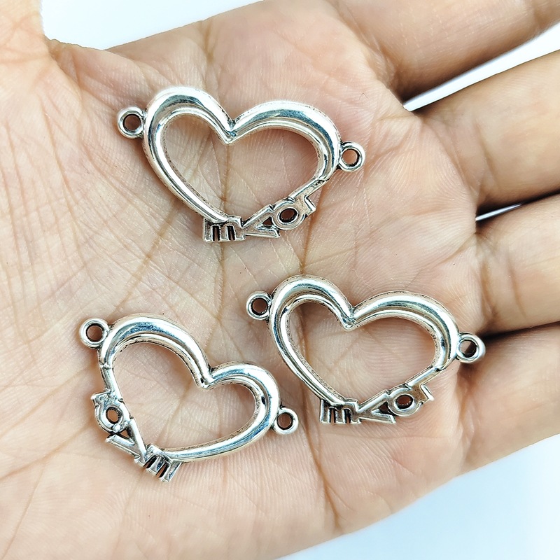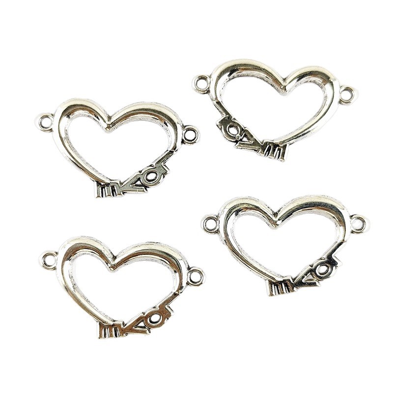 Zink Legierung Anhänger Verbinder, Zinklegierung, Herz, silberfarben plattiert, DIY & hohl, 19x32mm, 100PCs/Tasche, verkauft von Tasche