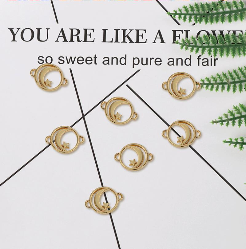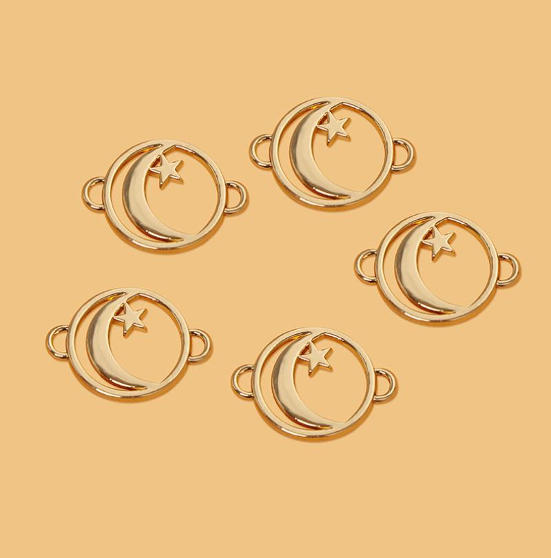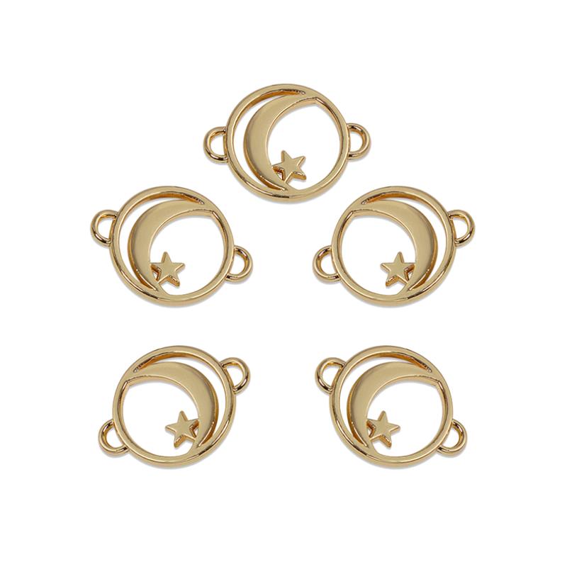 Zink Legierung Anhänger Verbinder, Zinklegierung, Mond und Sterne, goldfarben plattiert, DIY & hohl, goldfarben, 100PCs/Tasche, verkauft von Tasche