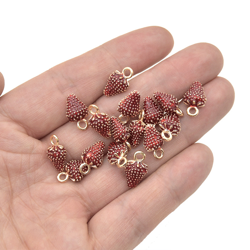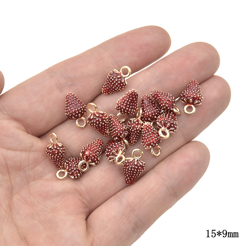 Zink Legierung Emaille Anhänger , Zinklegierung, Erdbeere, goldfarben plattiert, DIY, 15x9mm, verkauft von PC