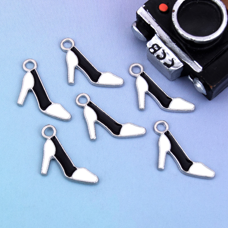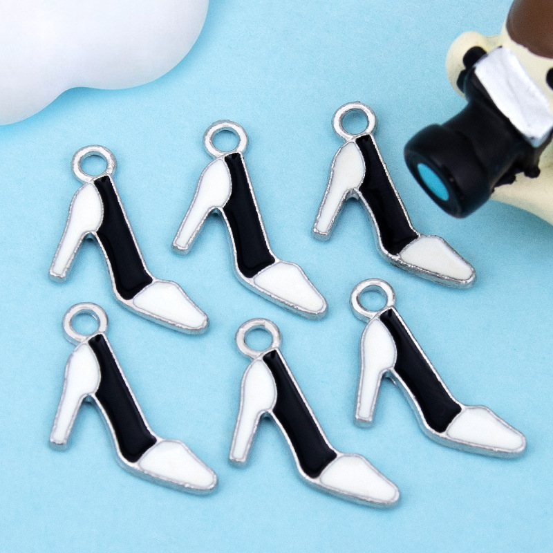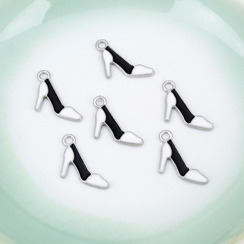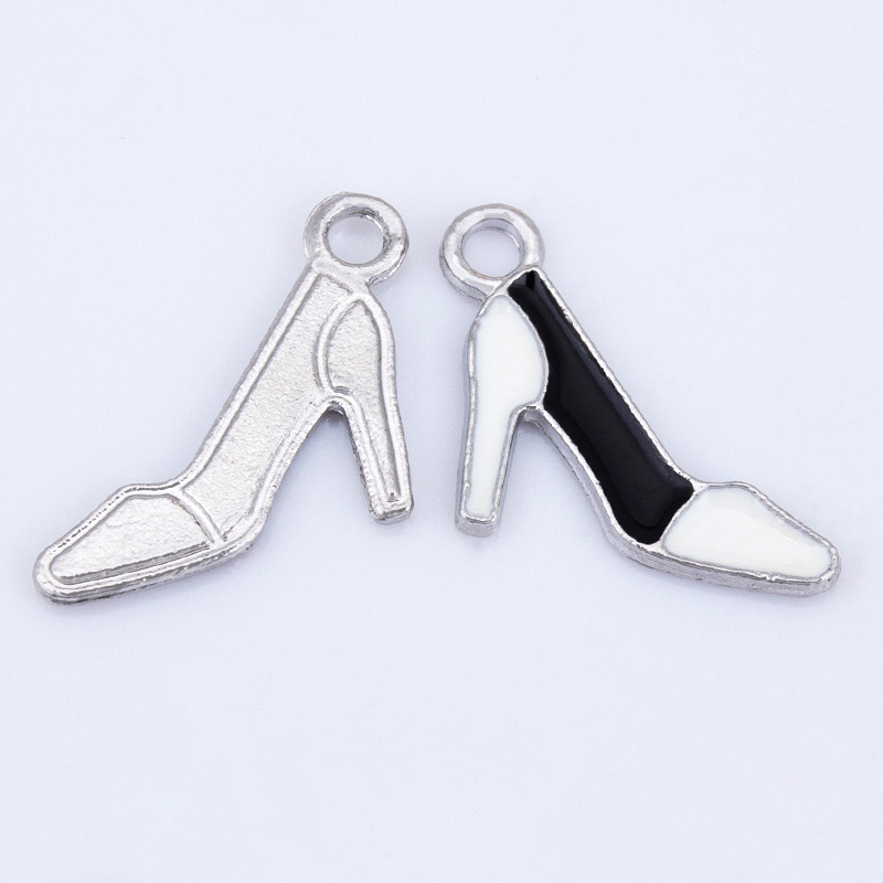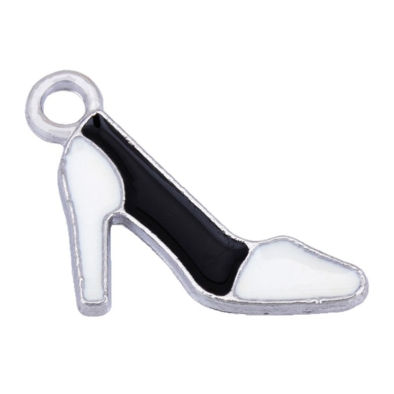 Zink Legierung Emaille Anhänger , Zinklegierung, Schuhe, plattiert, DIY, weiß und schwarz, 15x13mm, verkauft von PC