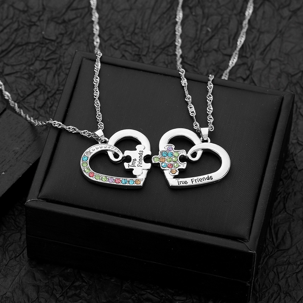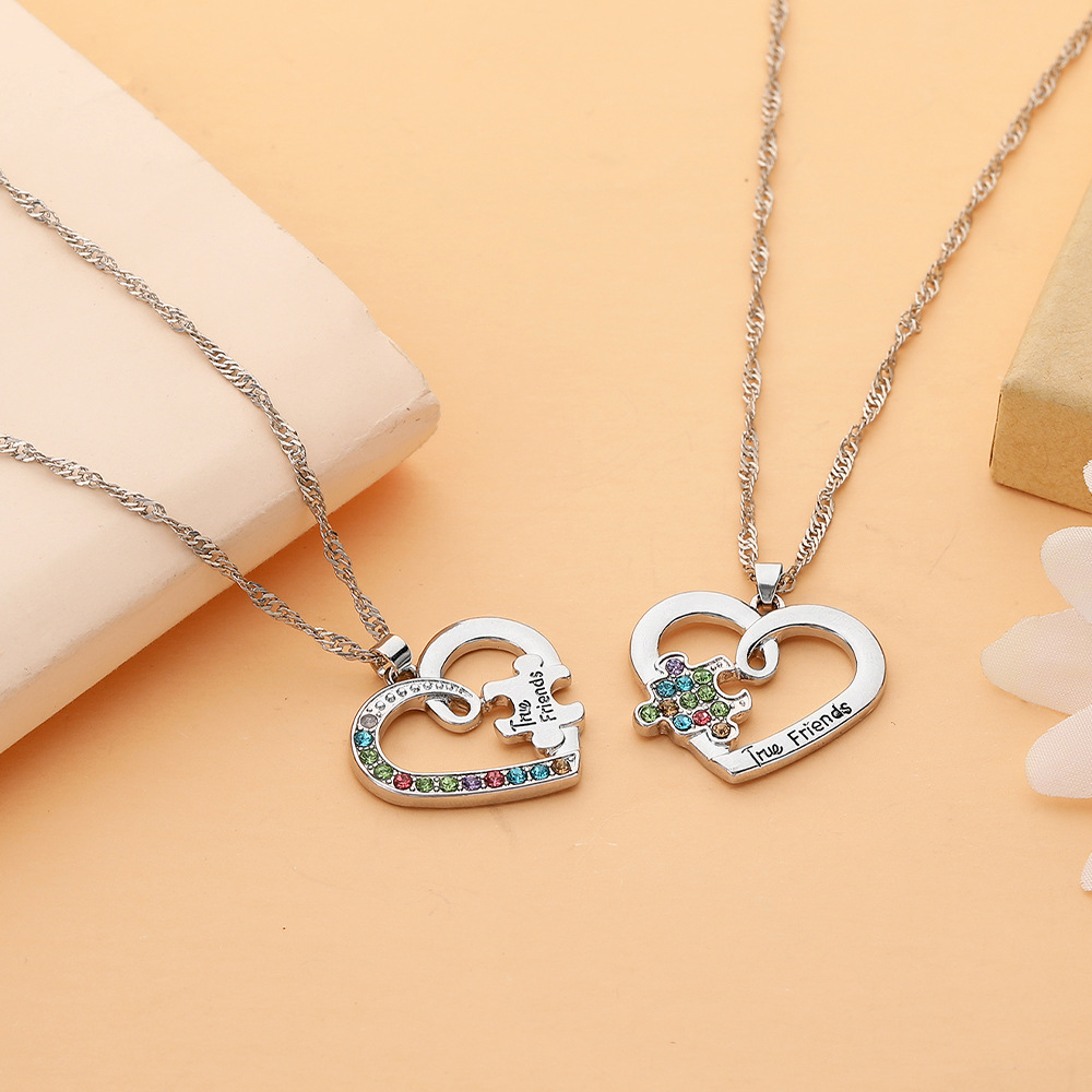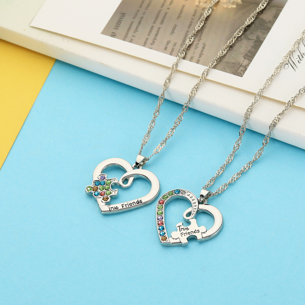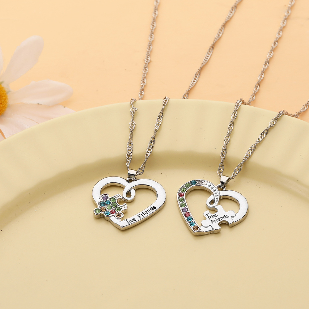 Zink Legierung Halskette, Zinklegierung, plattiert, 2 Stück & für Frau & mit Strass & hohl, originale Farbe, verkauft von setzen