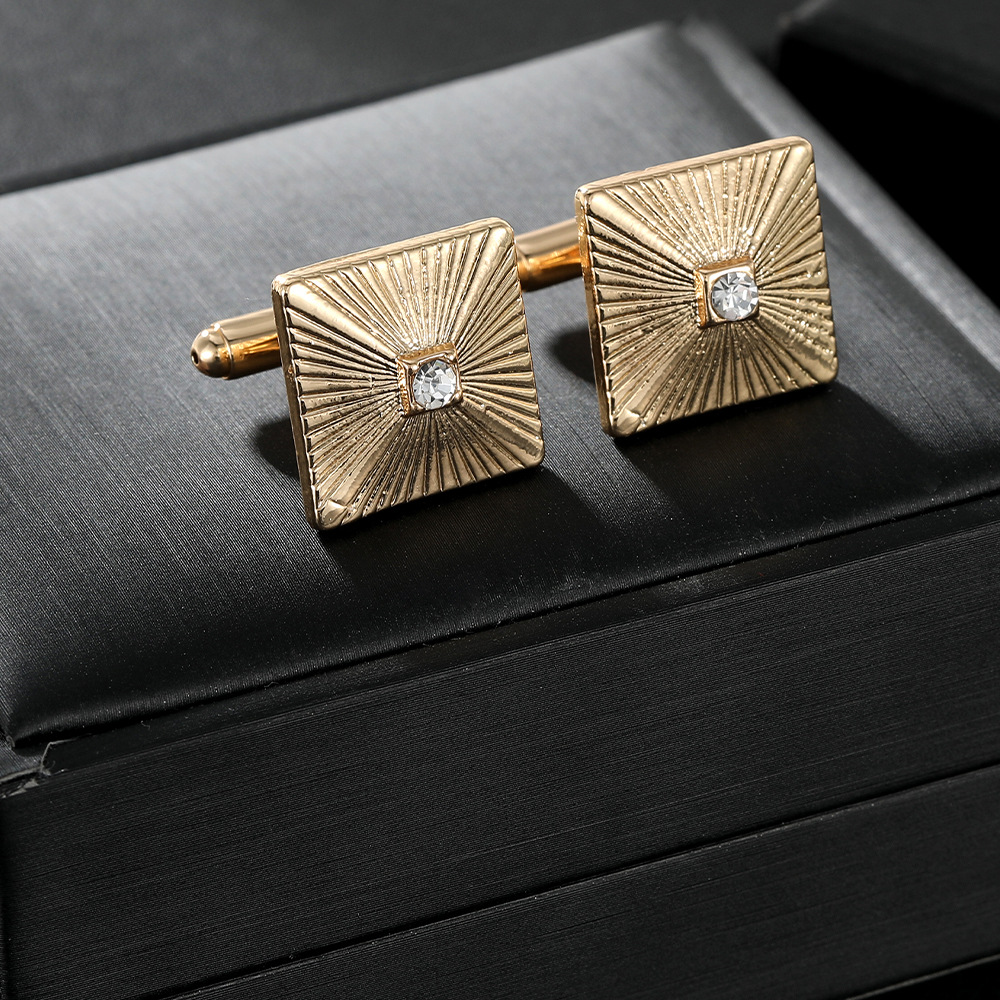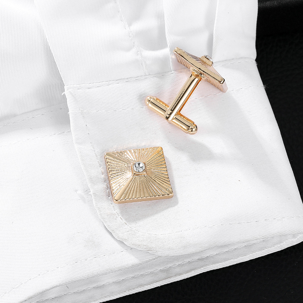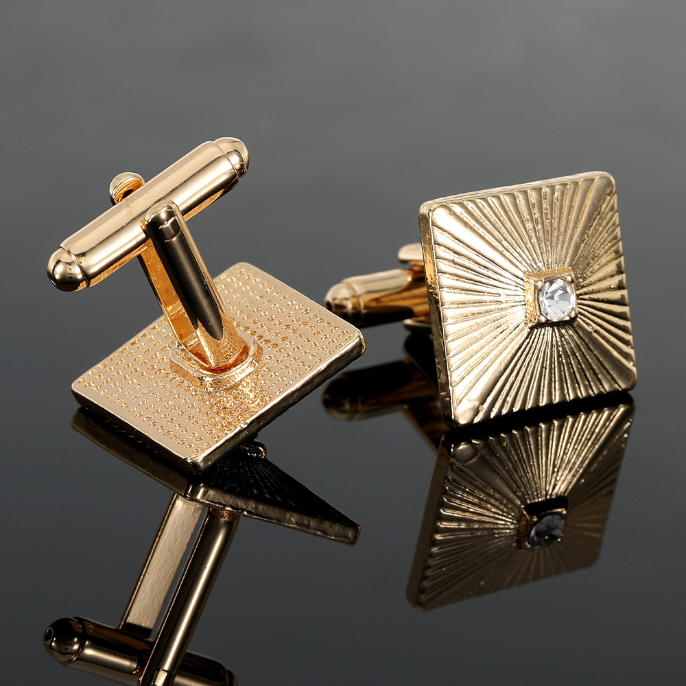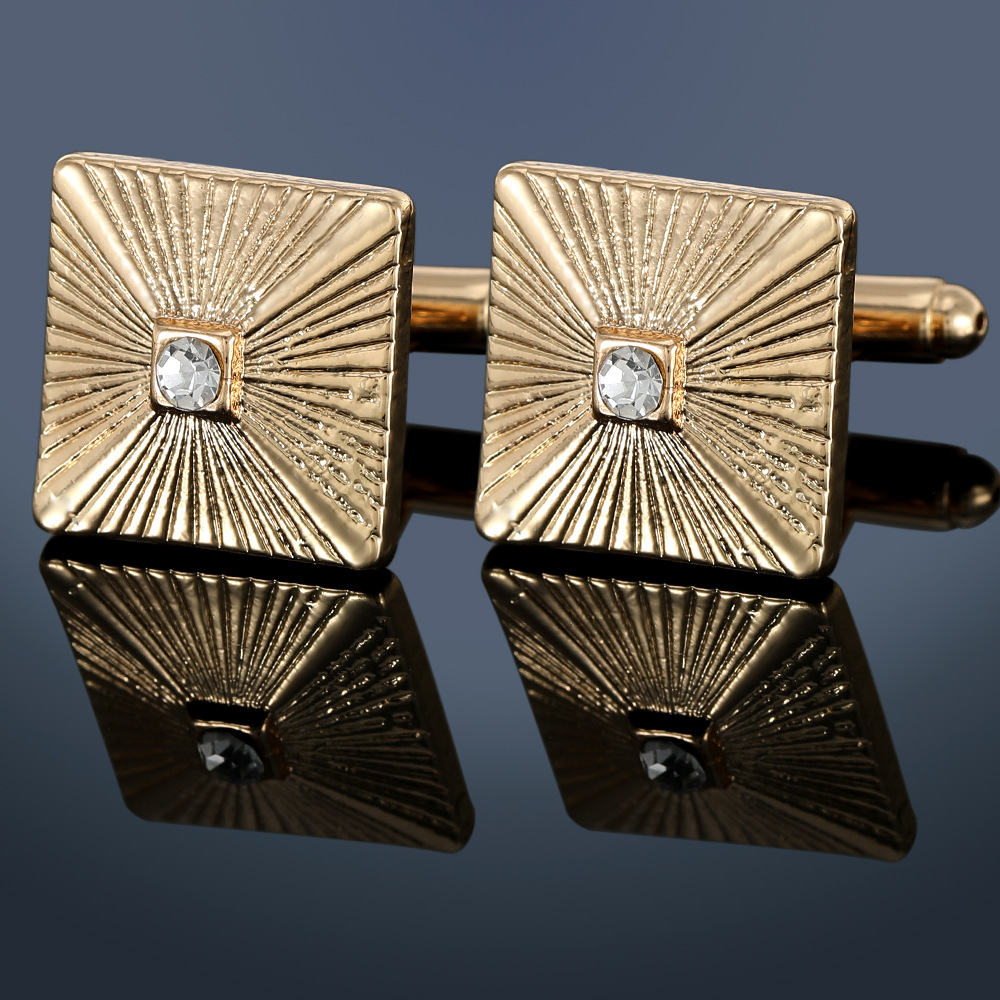 Zink Legierung Manschettenknöpfe, Zinklegierung, Quadrat, plattiert, Modeschmuck & für den Menschen & mit Strass, goldfarben, verkauft von Paar