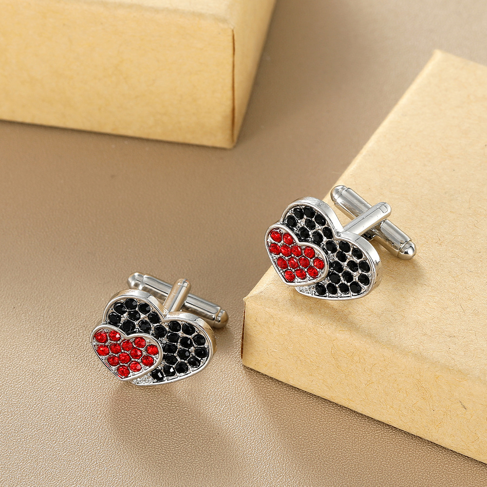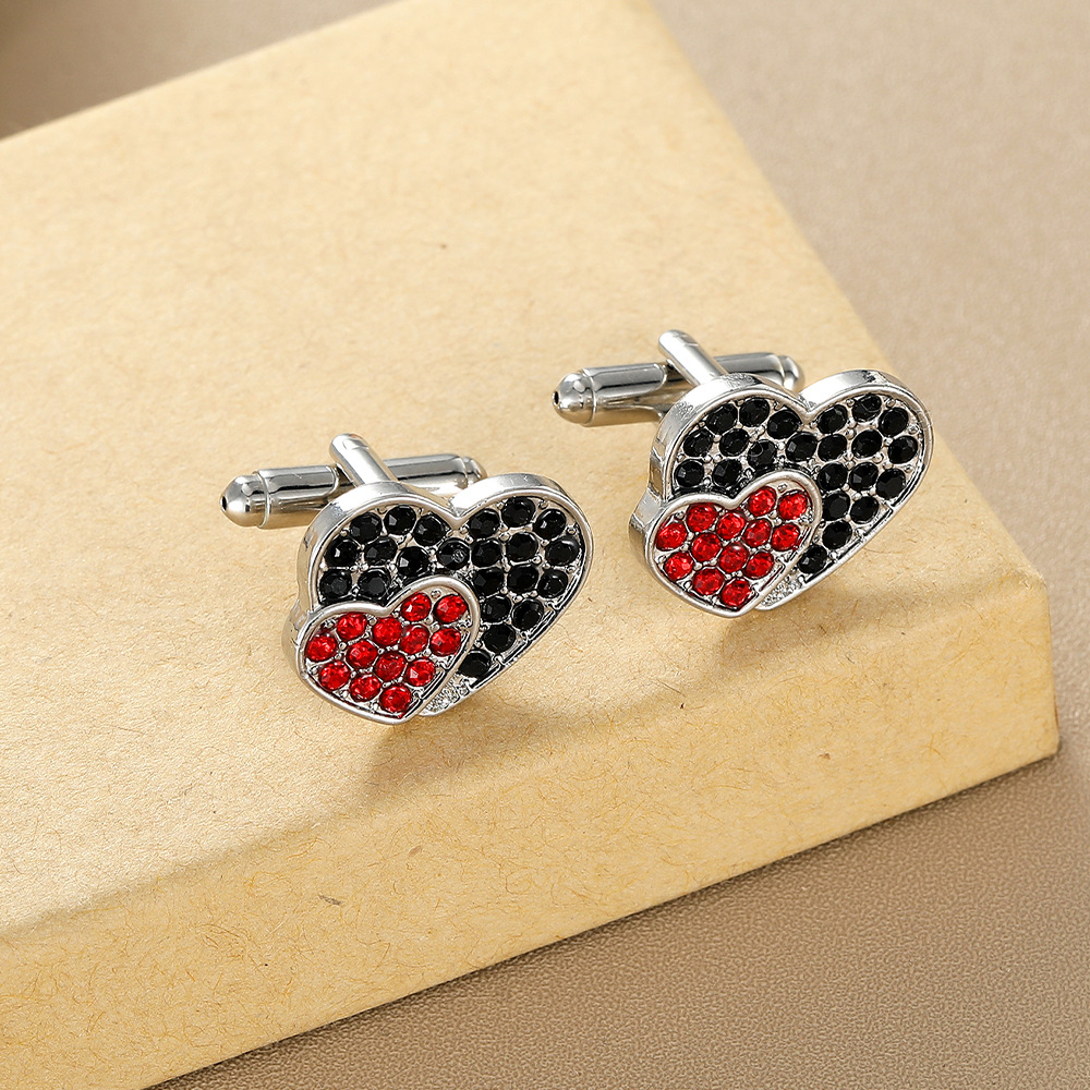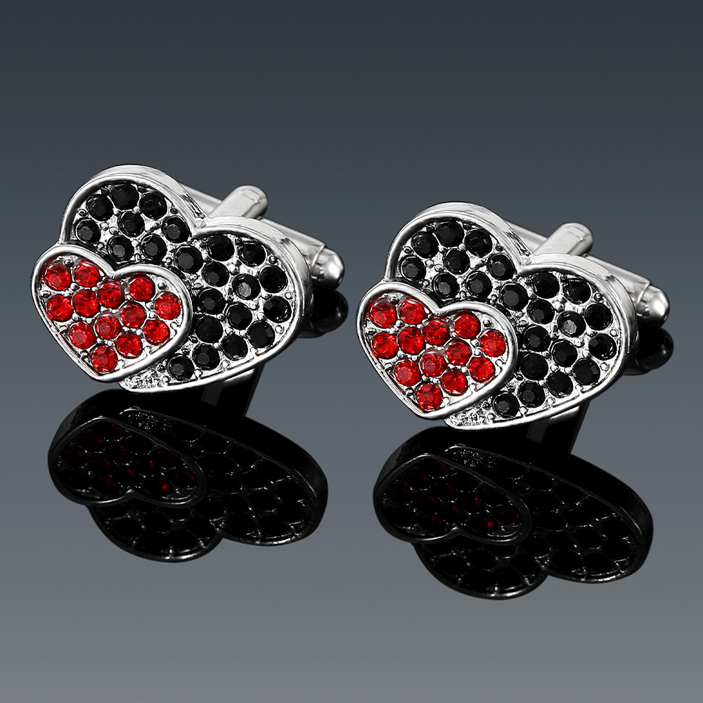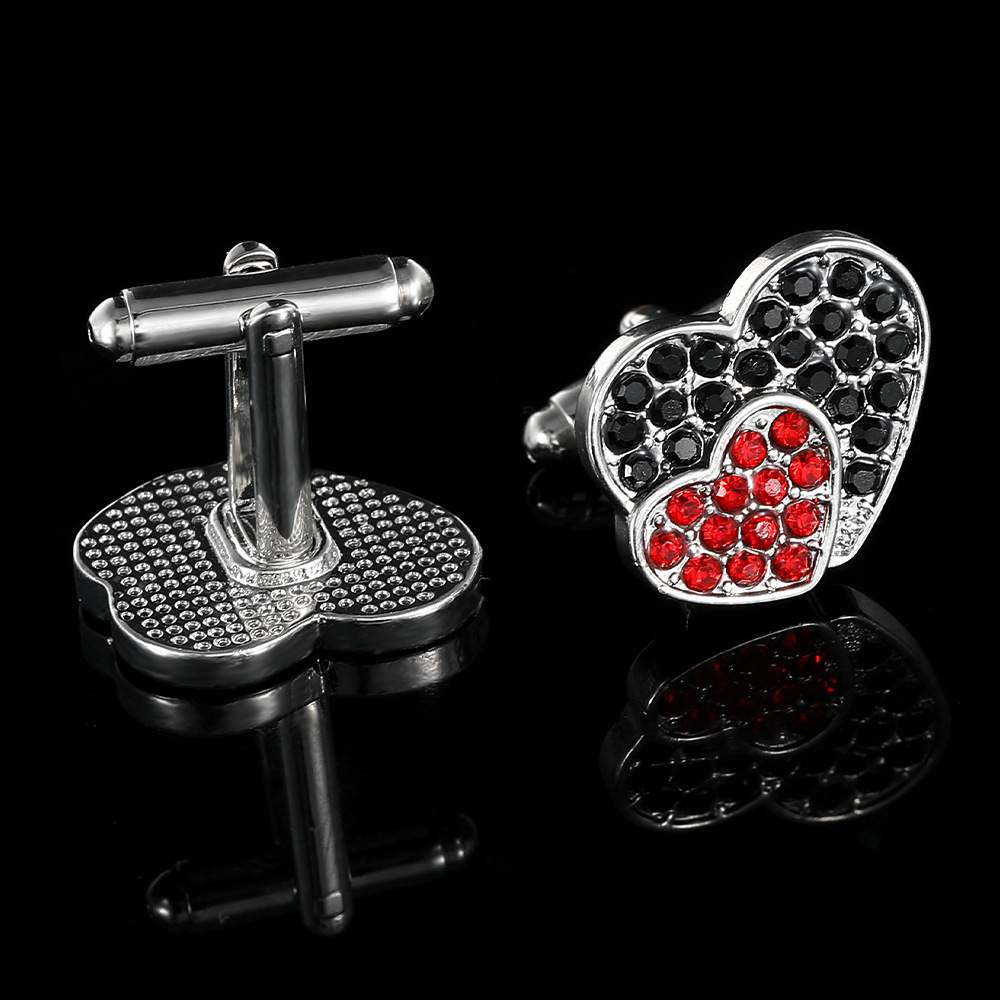 Zink Legierung Manschettenknöpfe, Zinklegierung, Herz, Modeschmuck & unisex & mit Strass, Silberfarbe, verkauft von Paar