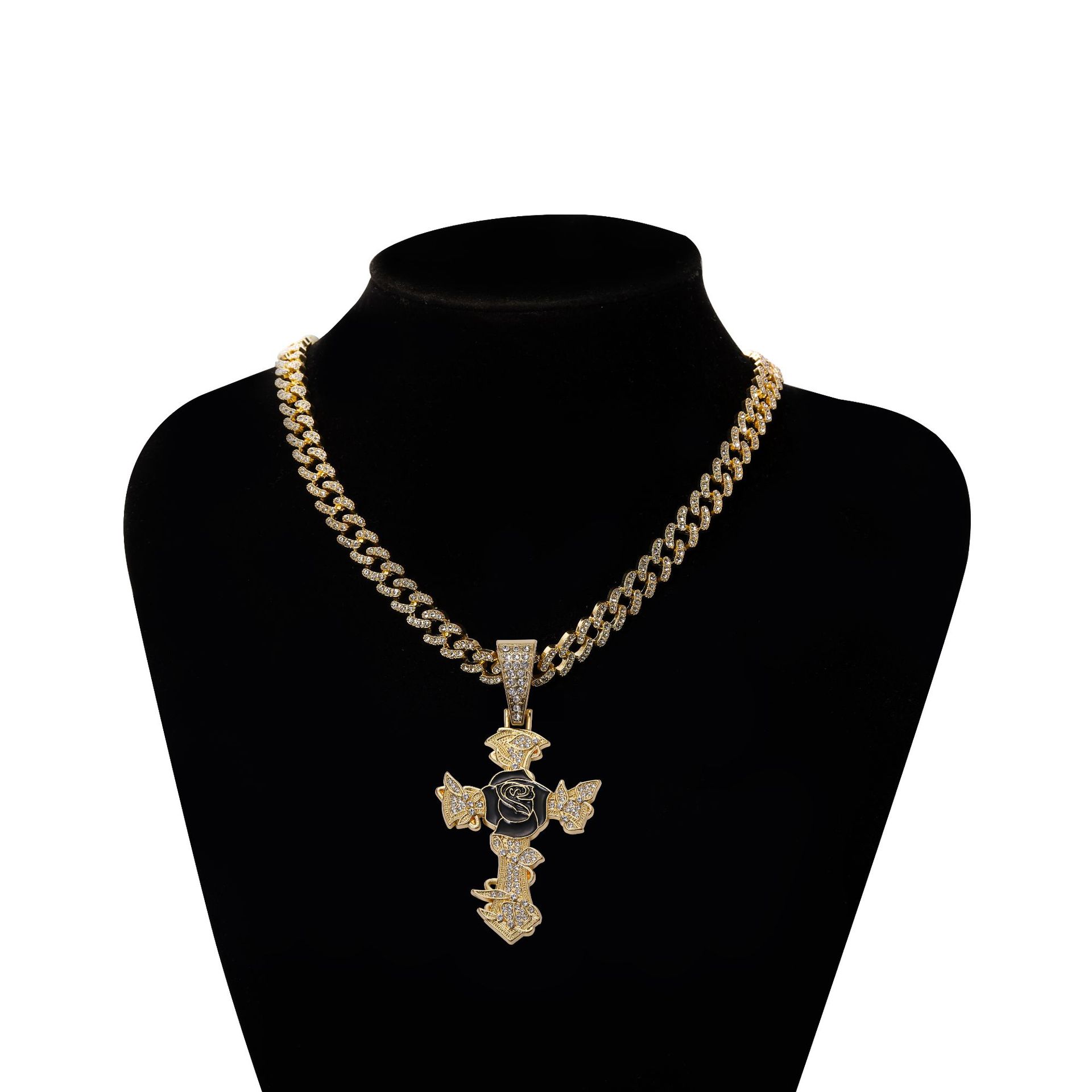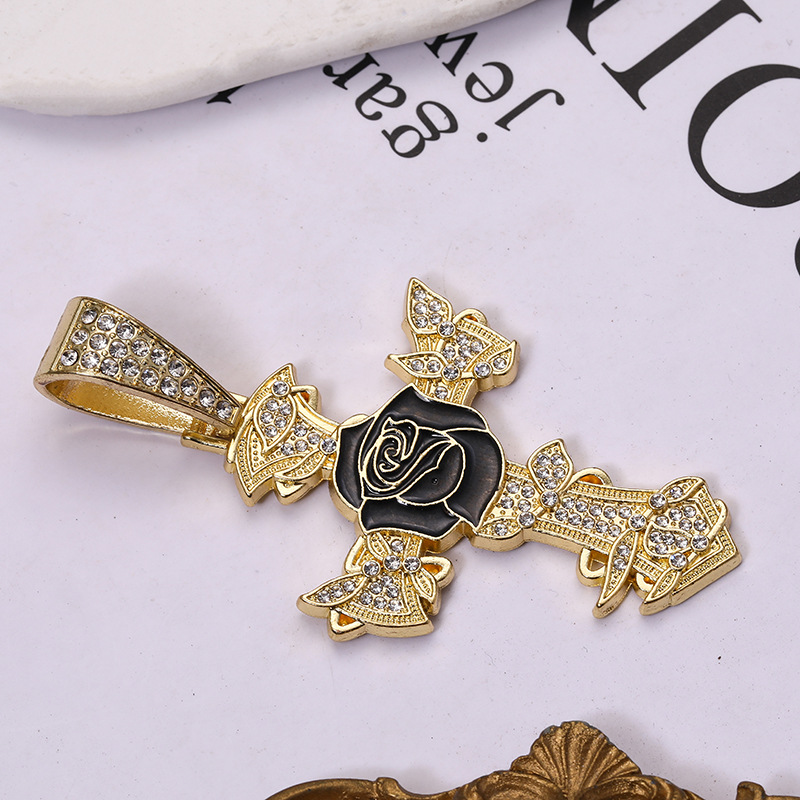 Zink Legierung Strass Anhänger, Zinklegierung, Kreuz, plattiert, DIY & Emaille & mit Strass, keine, 64x44mm, verkauft von PC