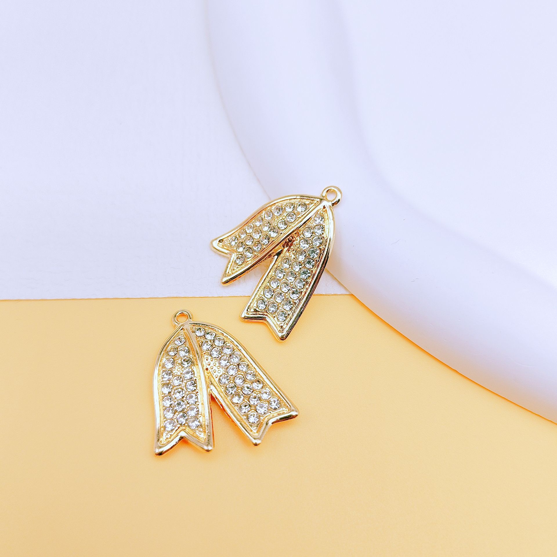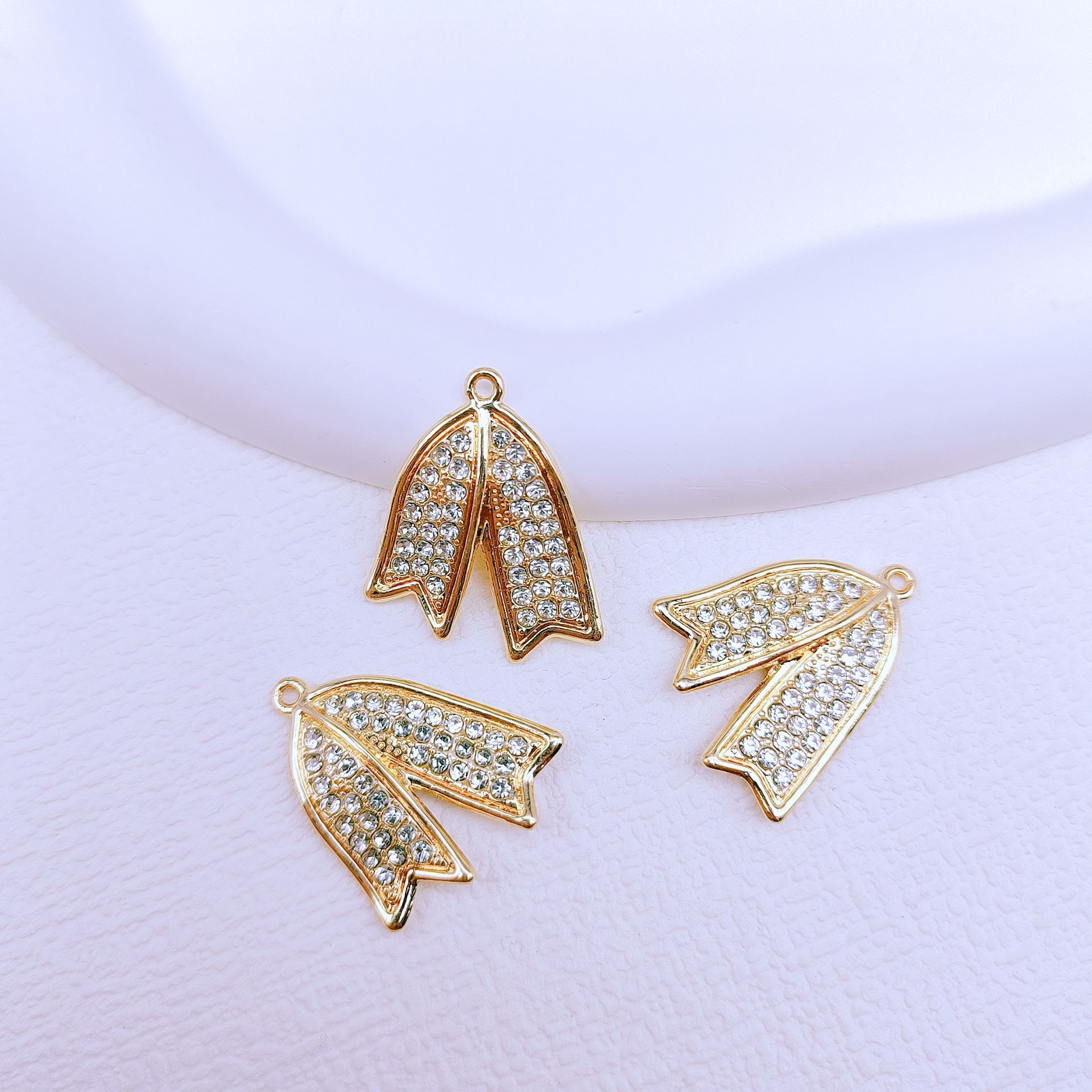 Zink Legierung Strass Anhänger, Zinklegierung, Blatt, plattiert, DIY & mit Strass, goldfarben, 100PCs/Tasche, verkauft von Tasche