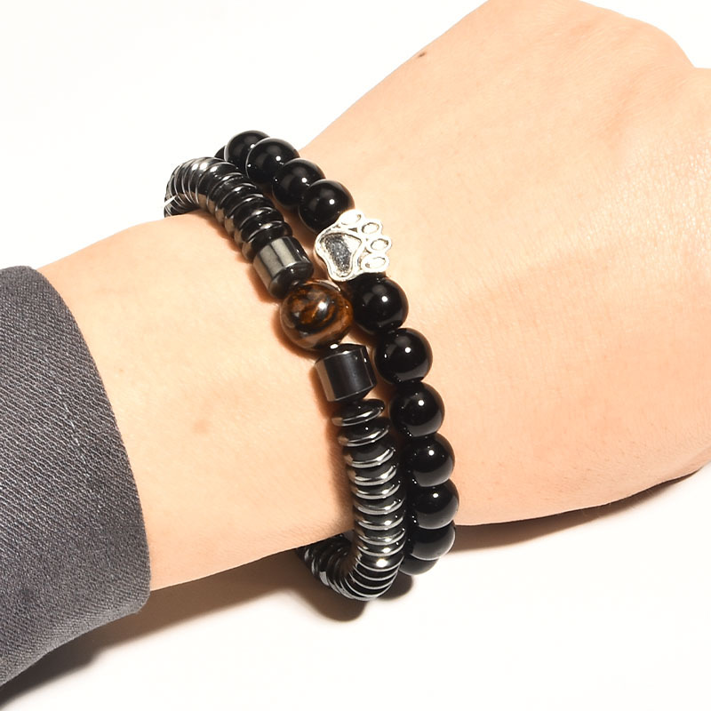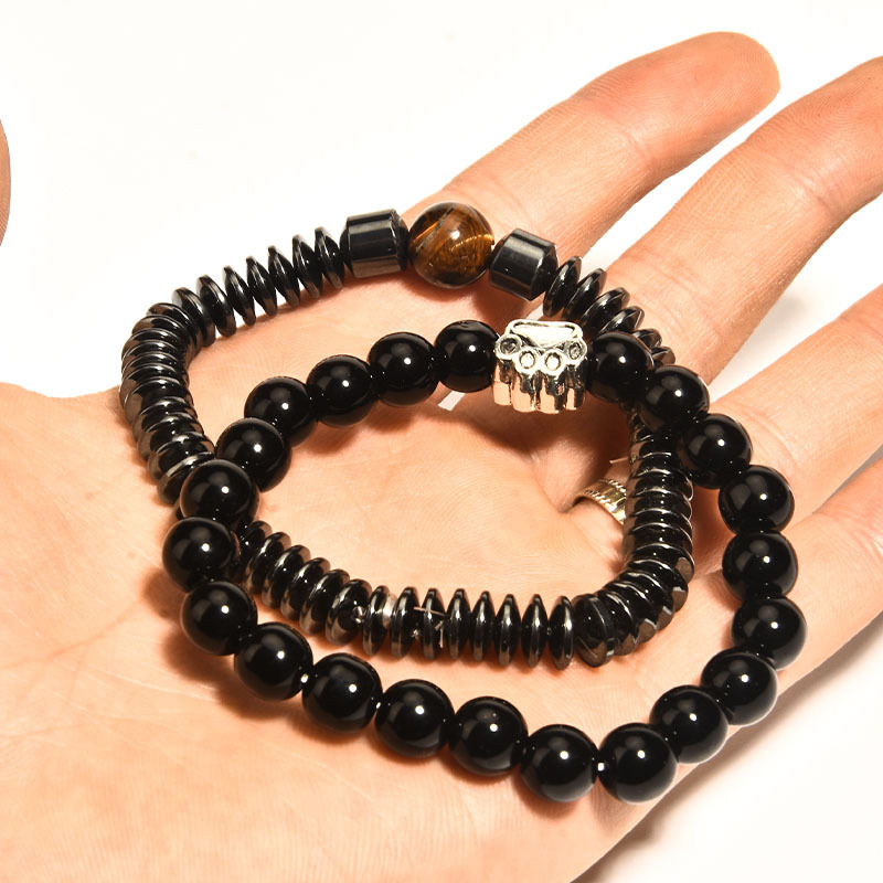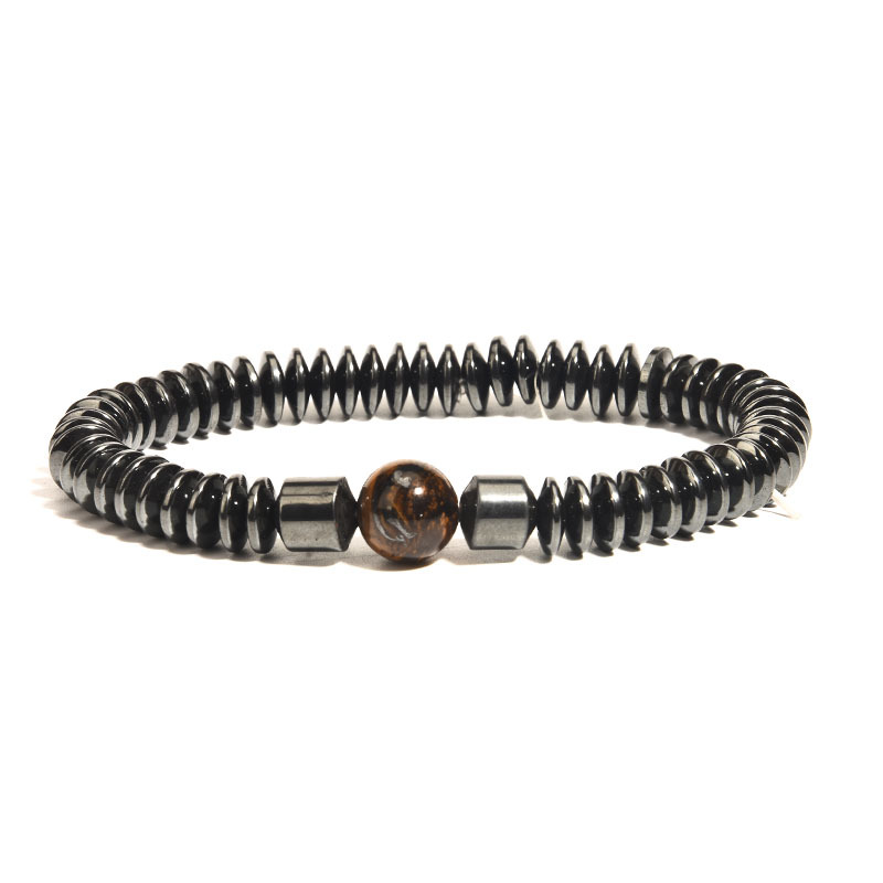 Zinklegierung Armband, mit Magnesit & Tigerauge & schwarzer Stein & Non- magnetische Hämatit, elastisch & verschiedene Stile für Wahl & für den Menschen, Länge:ca. 7 ZollInch, verkauft von PC