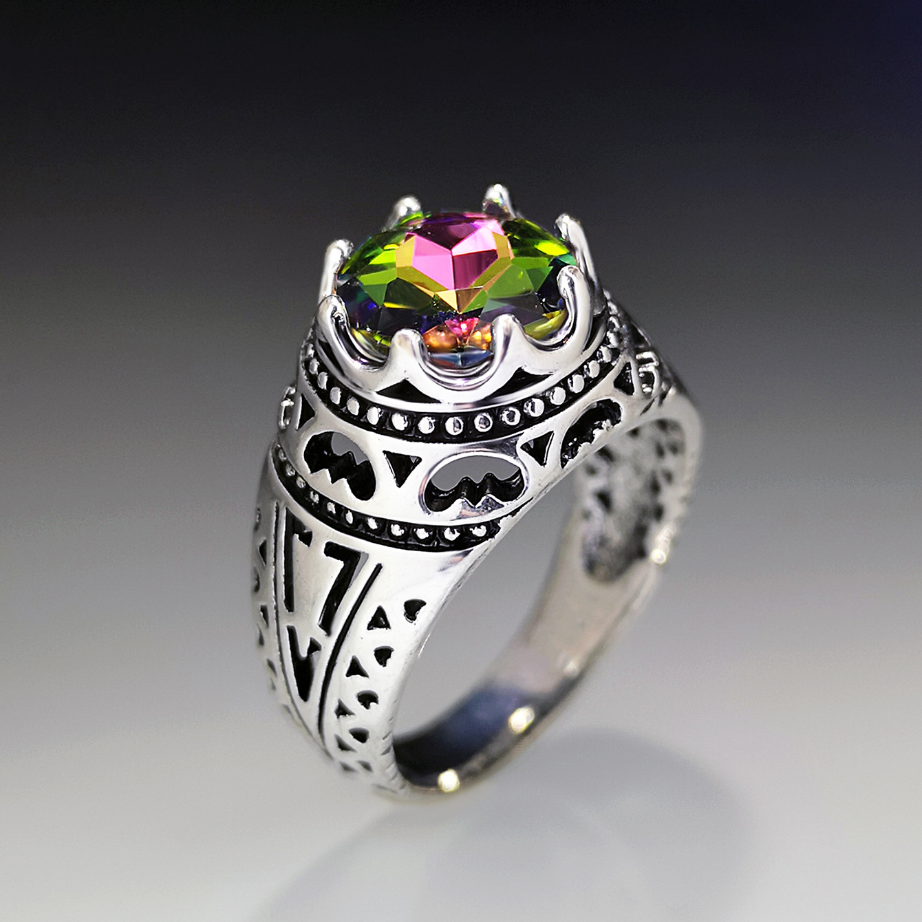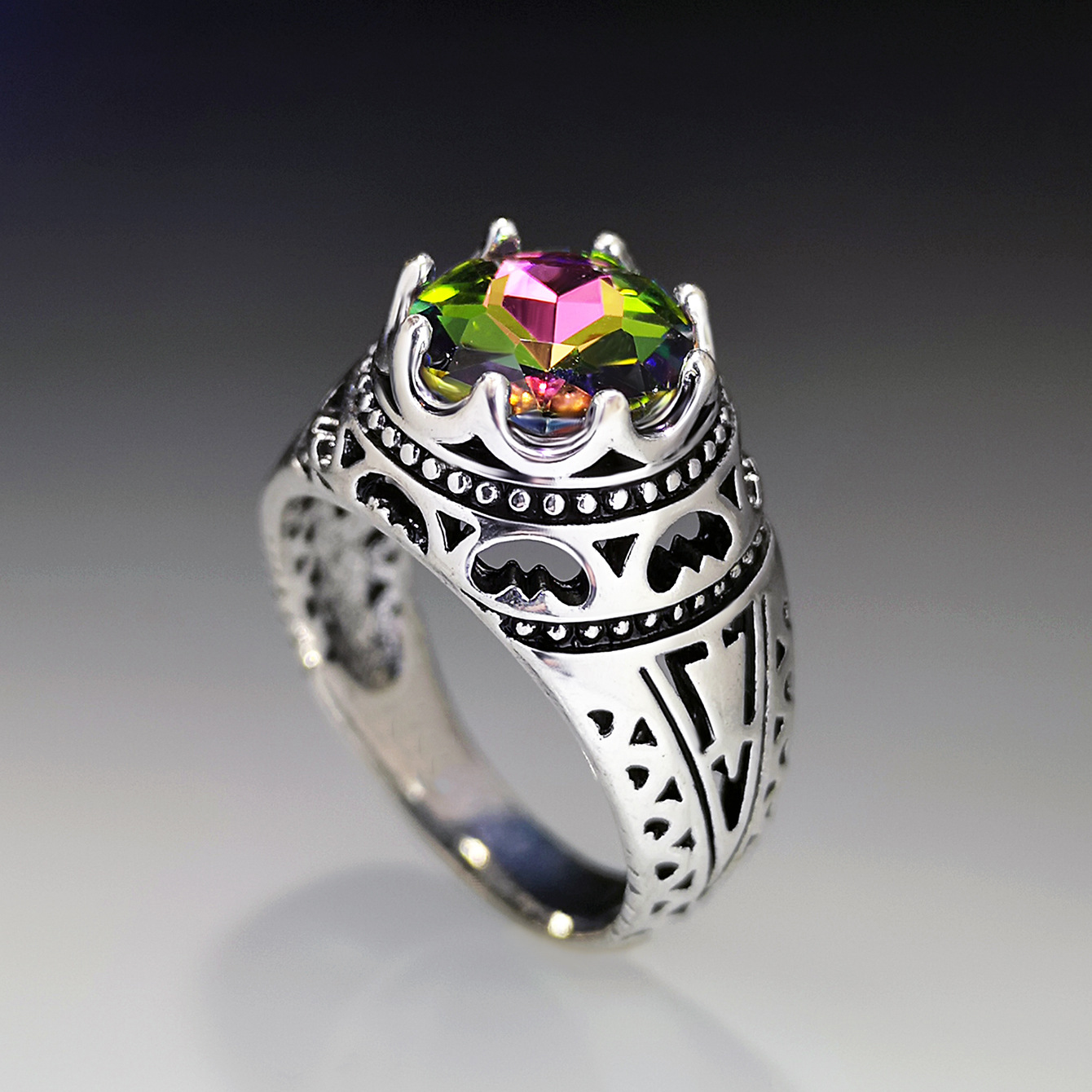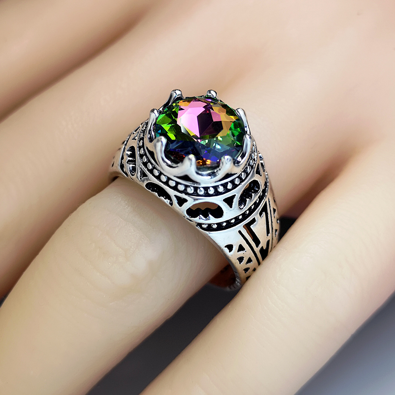Zinklegierung Fingerring, mit Kristall, Krone, antik silberfarben plattiert, Vintage & verschiedene Größen vorhanden & für Frau, Größe:6-10, verkauft von PC
