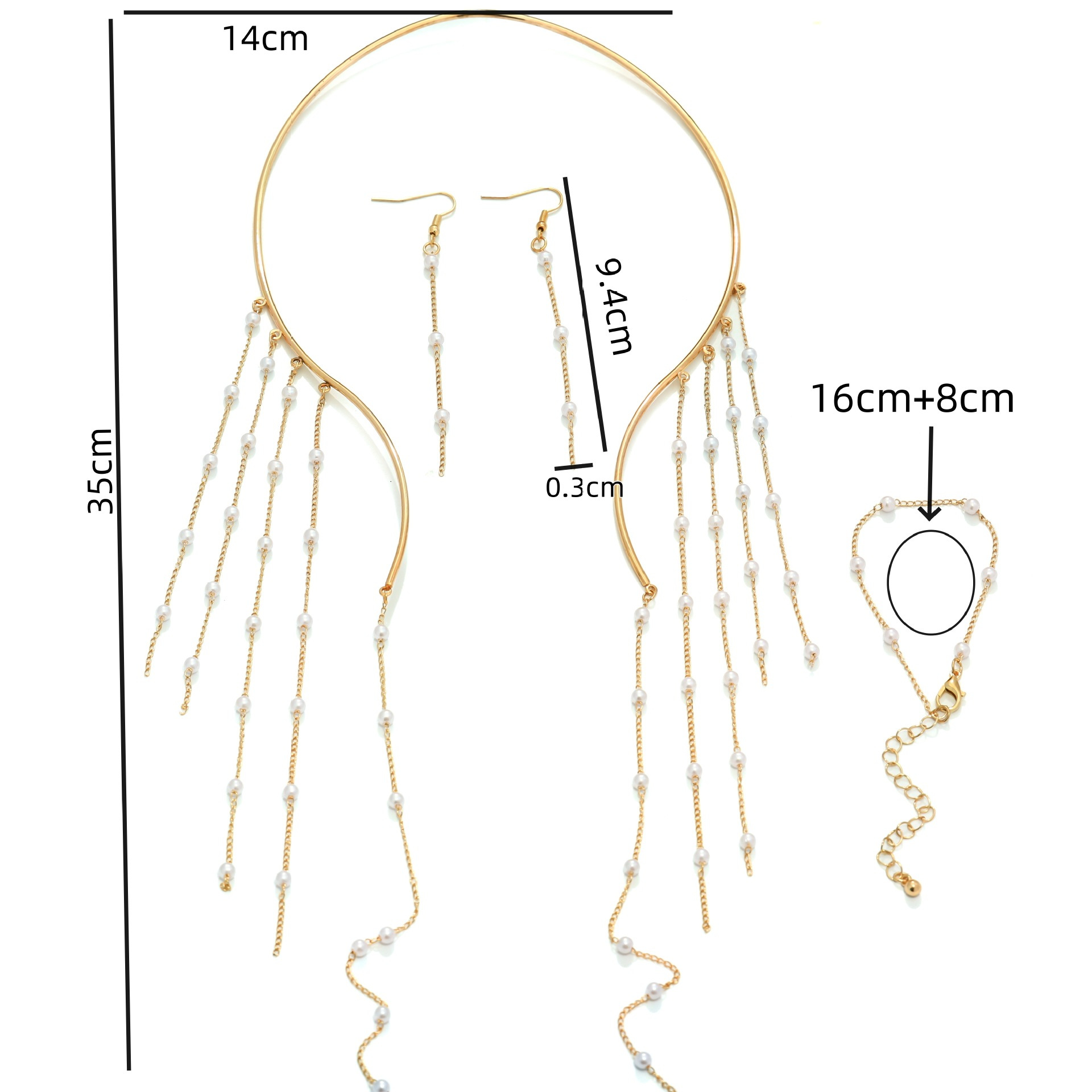 Mode Zink Legierung Schmucksets, Zinklegierung, Armband & Ohrring & Halskette, mit ABS-Kunststoff-Perlen, Edelstahl Stecker, mit Verlängerungskettchen von 5cm, plattiert, für Frau, keine, frei von Blei & Kadmium, 33mm,170mmuff0c400mm, Länge:ca. 6.5 ZollInch, ca. 15.5 ZollInch, verkauft von setzen