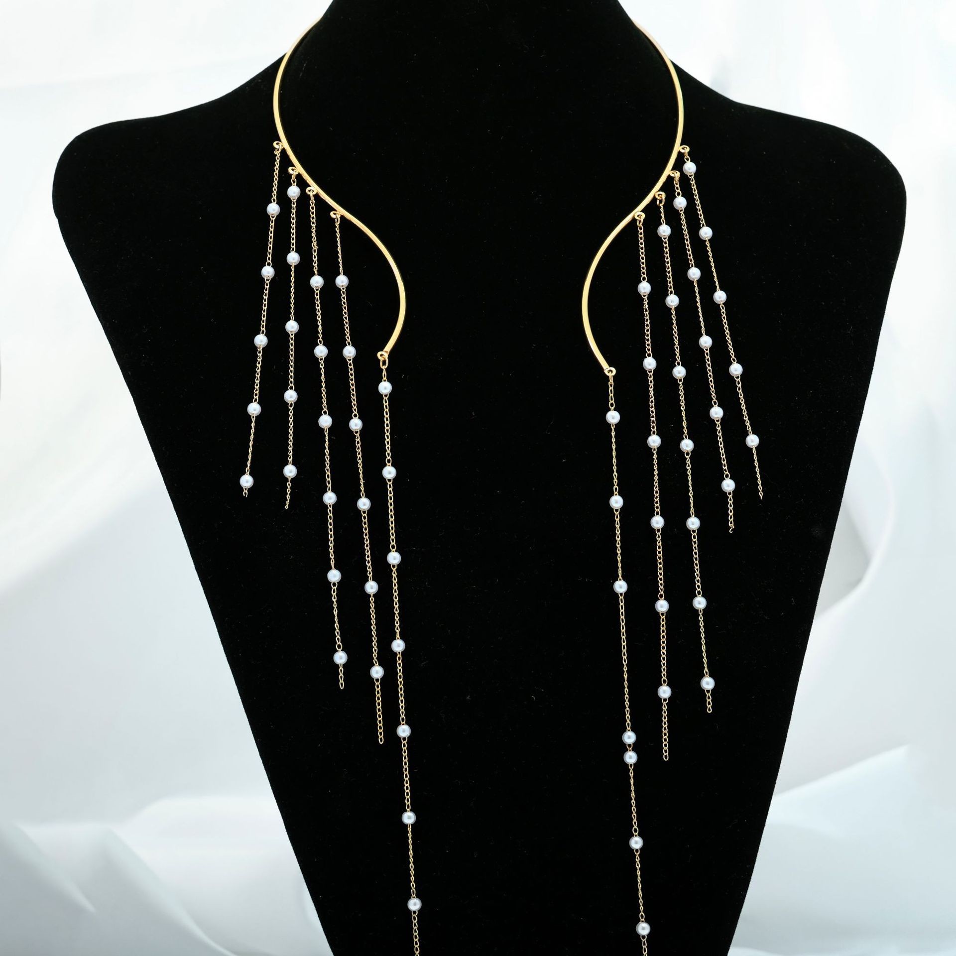 Zinklegierung Mode Schmuckset, Stud Ohrring & Halskette, mit ABS-Kunststoff-Perlen, Edelstahl Stecker, mit Verlängerungskettchen von 5cm, Branch, plattiert, für Frau & mit Strass, keine, frei von Blei & Kadmium, 36mm, Länge:ca. 17 ZollInch, verkauft von setzen