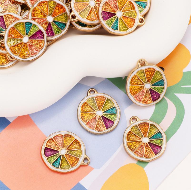 Zinklegierung Obst Anhänger, Zitrone, goldfarben plattiert, DIY, gemischte Farben, 100PCs/Tasche, verkauft von Tasche