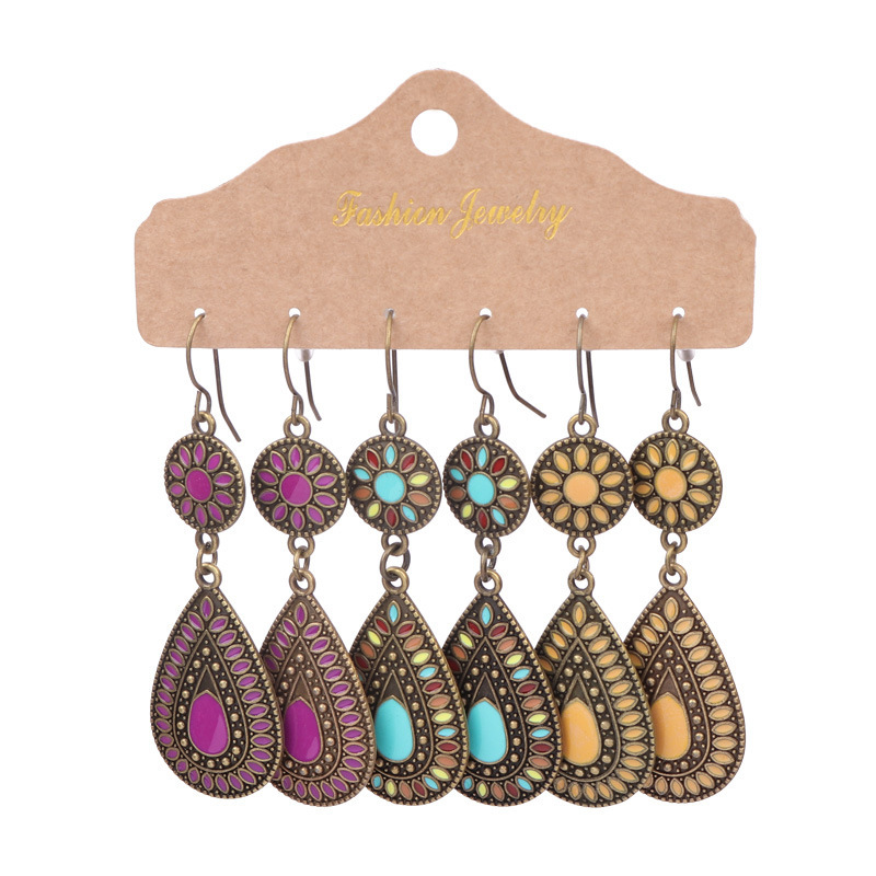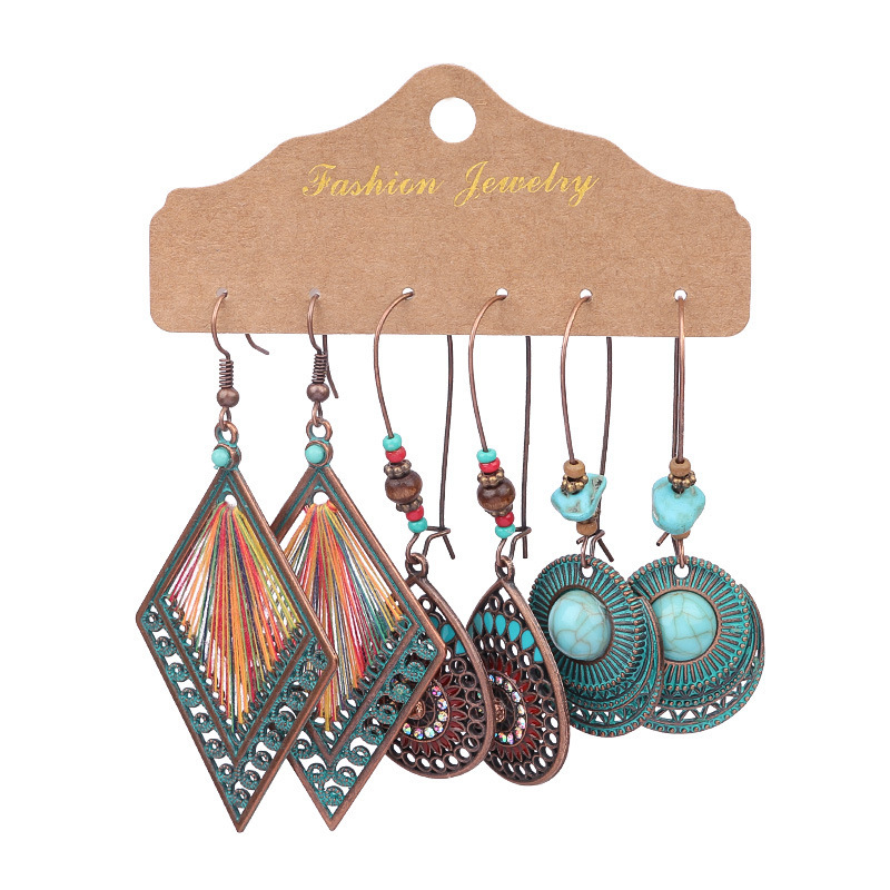 Zinklegierung Ohrring-Set, mit Baumwollfaden & Holz, plattiert, Folk-Stil & verschiedene Stile für Wahl & für Frau, verkauft von setzen