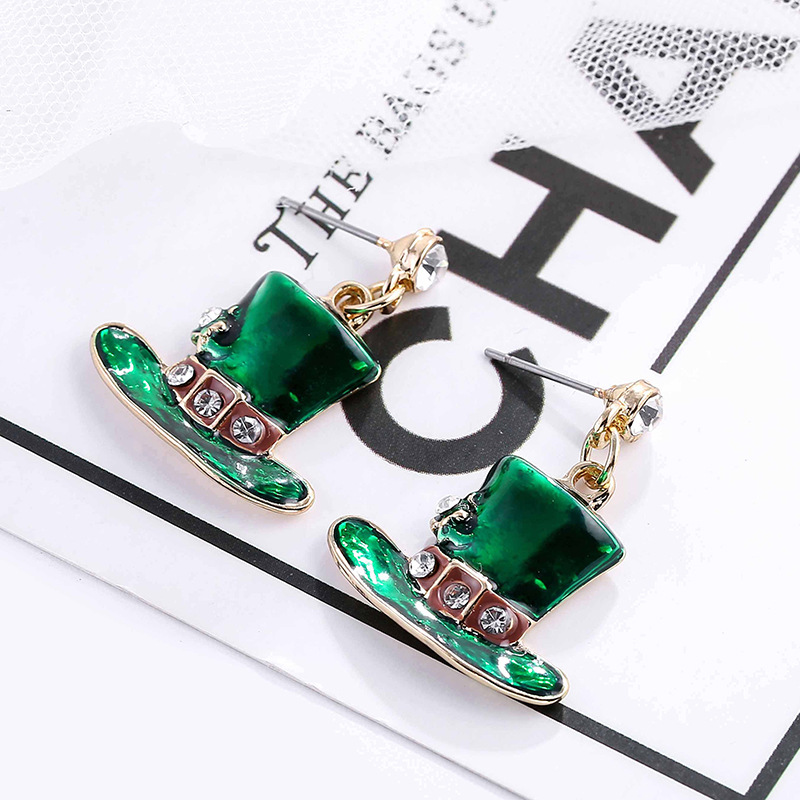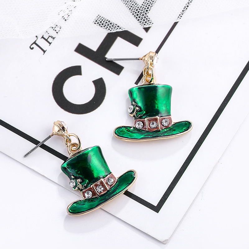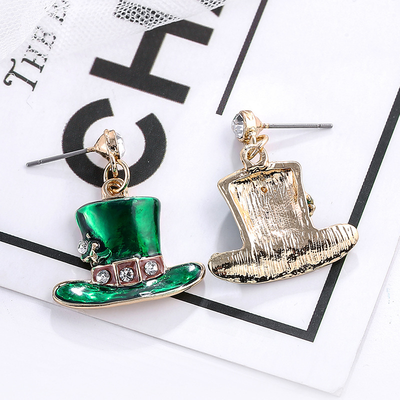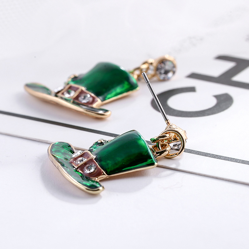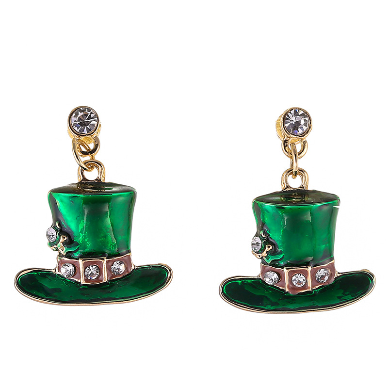 Zinklegierung Tropfen Ohrring, Hut, goldfarben plattiert, für Frau & Emaille & mit Strass, earring length 30-40mm, verkauft von Paar