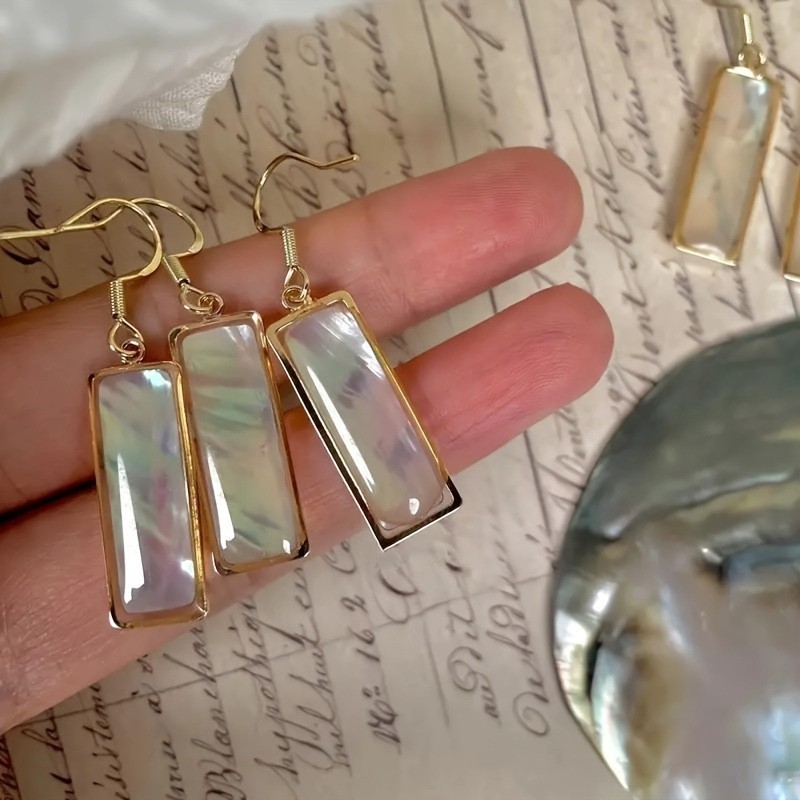 Zinklegierung Tropfen Ohrring, mit Seeohr Muschel, Geometrisches Muster, goldfarben plattiert, Modeschmuck & für Frau, 10x45mm, verkauft von Paar