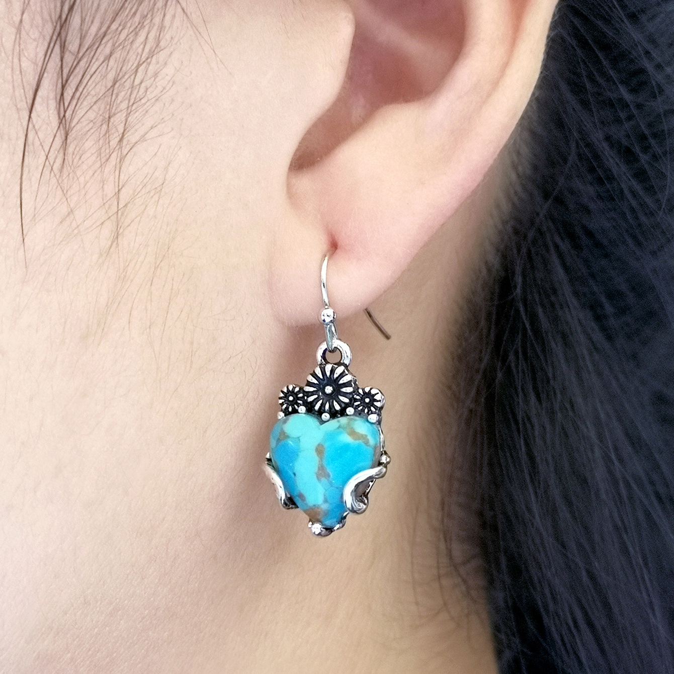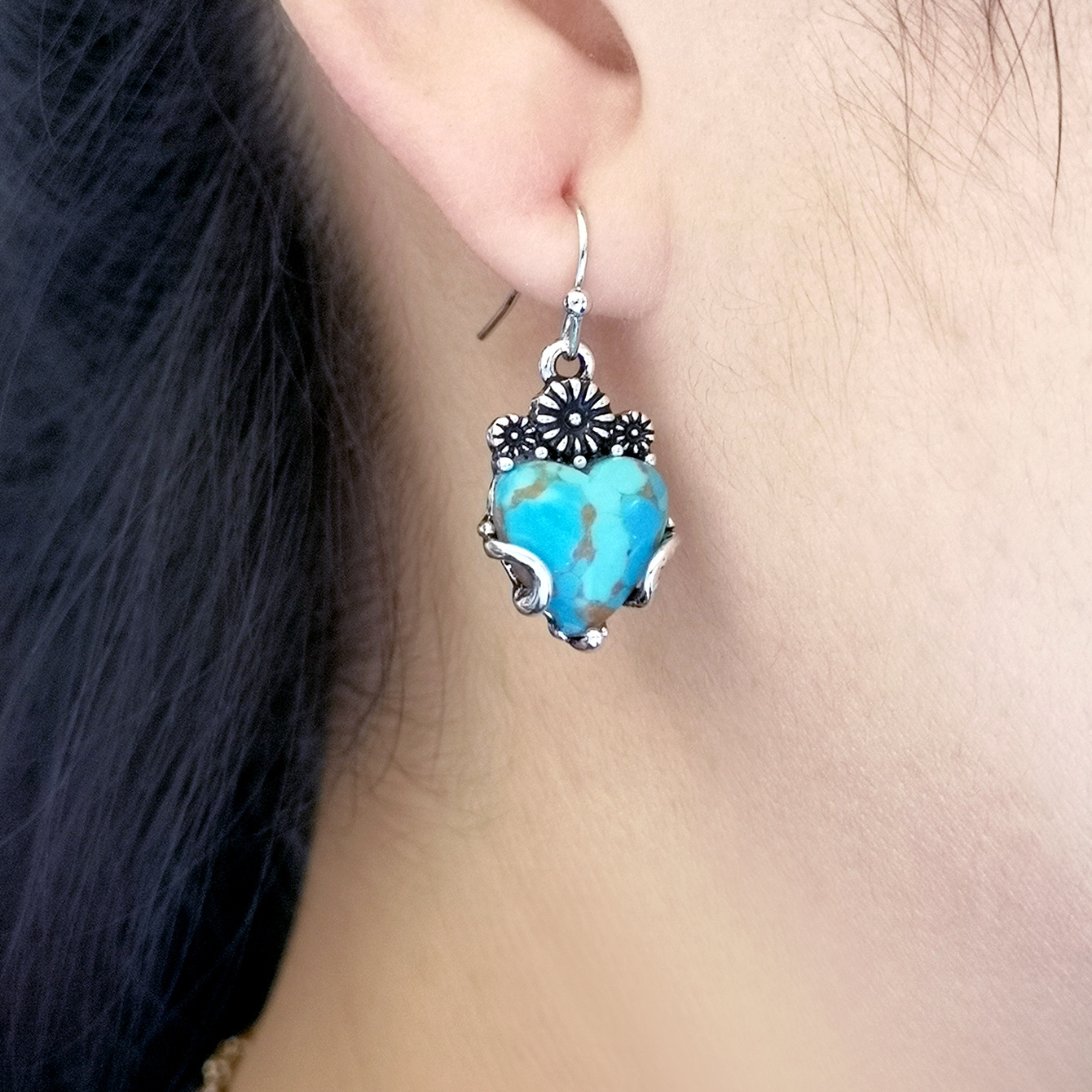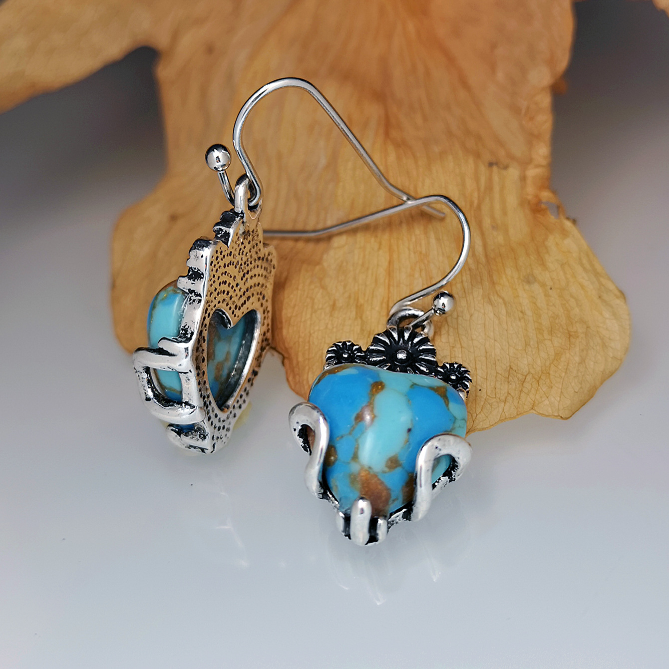 Zinklegierung Tropfen Ohrring, mit Türkis, Herz, antik silberfarben plattiert, Vintage & für Frau, 14x31mm, verkauft von Paar