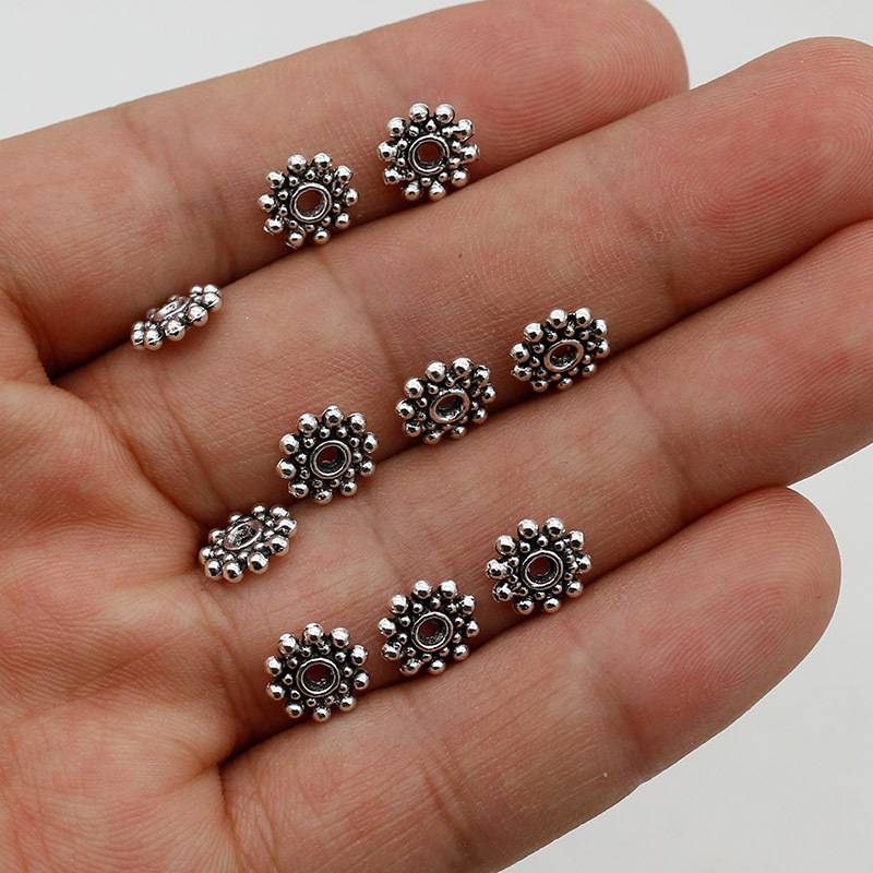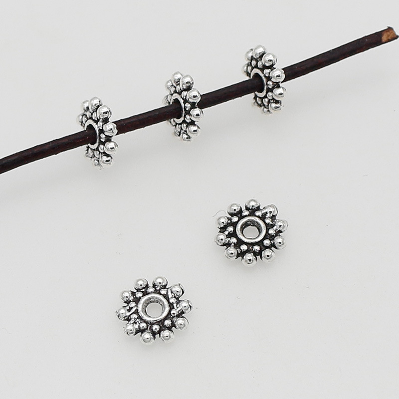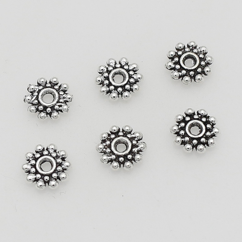 Zinklegierung Zwischenperlen, Blume, antik silberfarben plattiert, frei von Blei & Kadmium, 4x2mm, Bohrung:ca. 1mm, ca. 1250PCs/Tasche, verkauft von Tasche