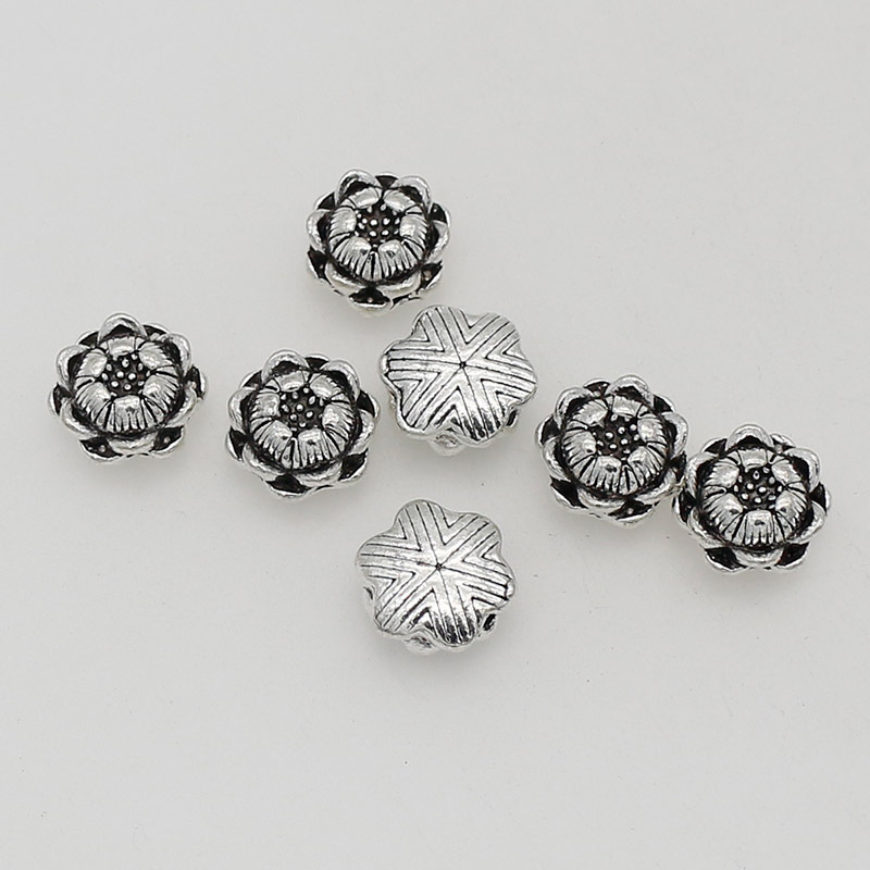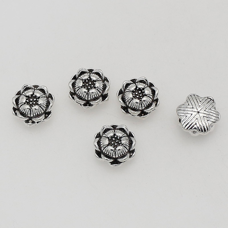 Zinklegierung Zwischenperlen, Blume, antik silberfarben plattiert, frei von Blei & Kadmium, 4x2mm, Bohrung:ca. 1mm, ca. 1250PCs/Tasche, verkauft von Tasche