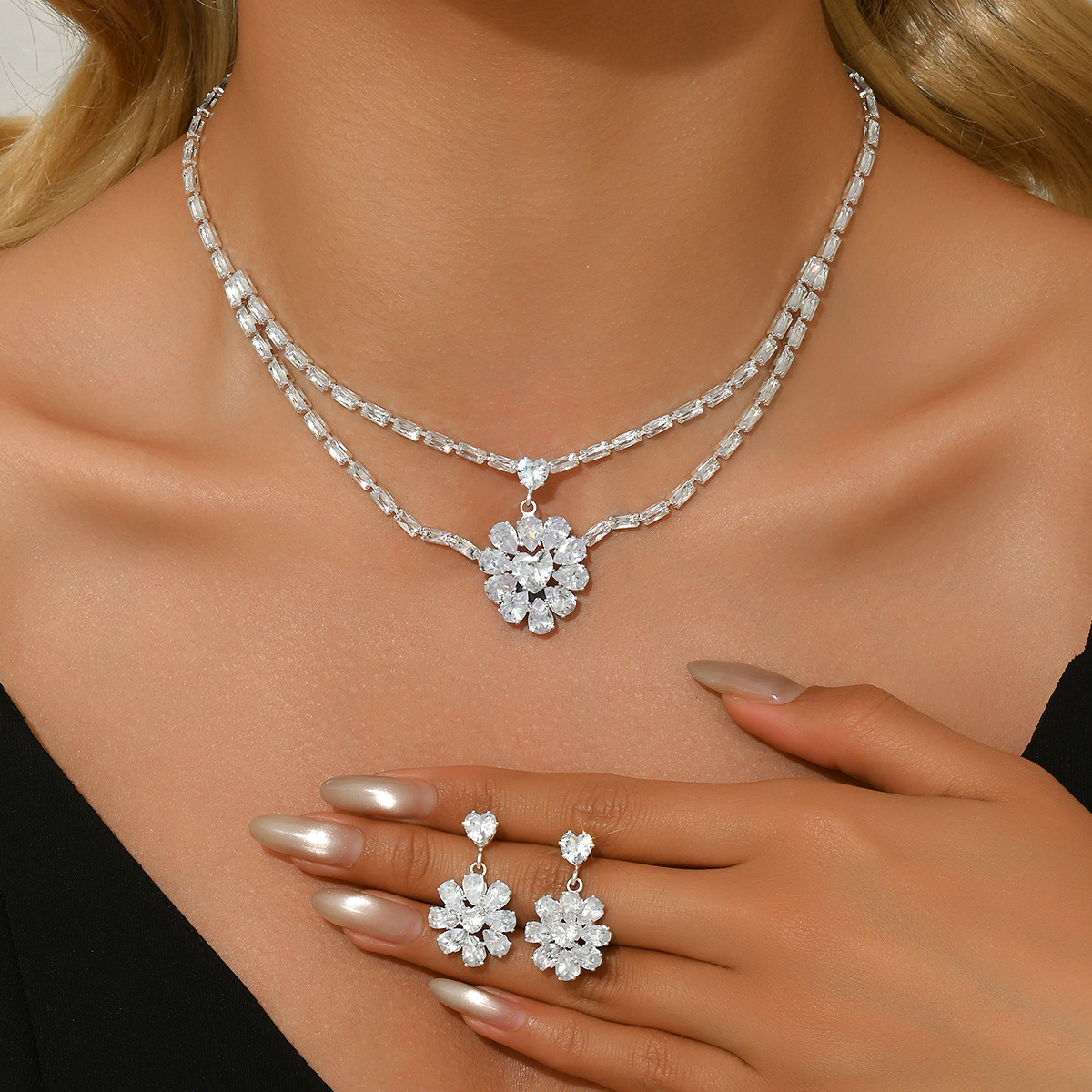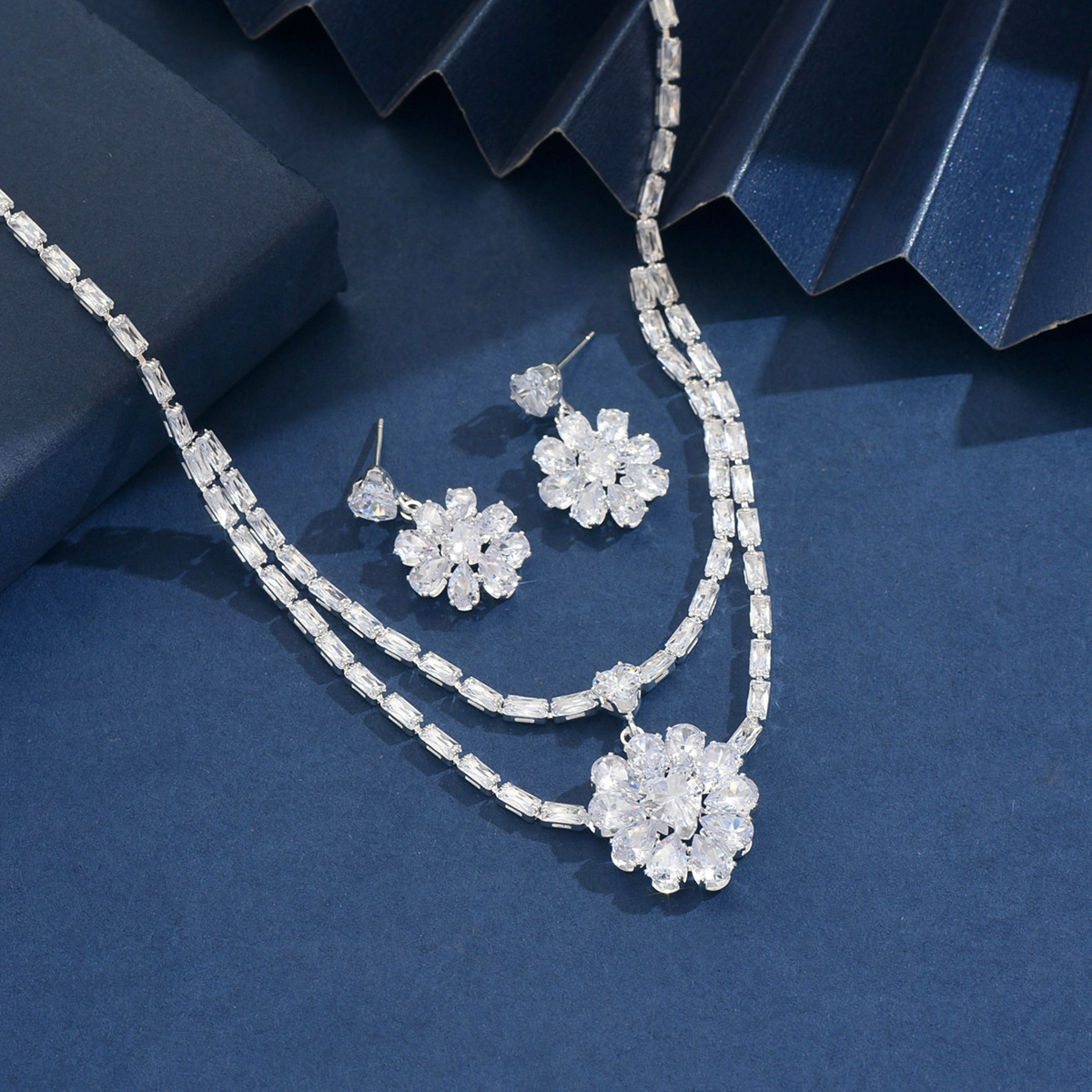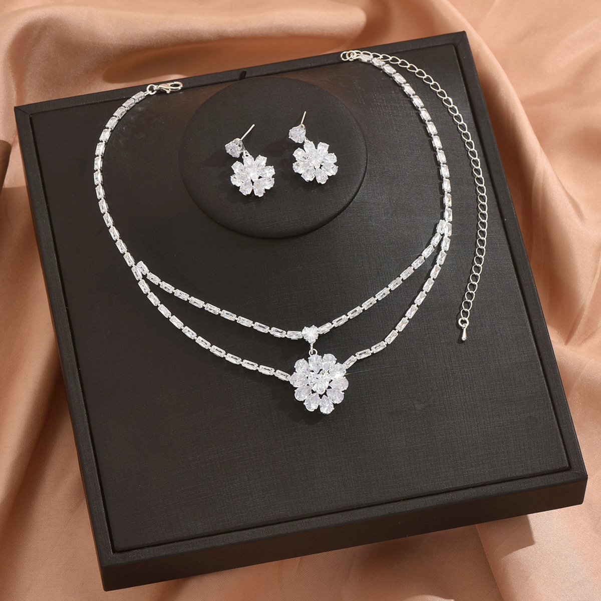 Zirkonia Micro Pave Schmucksets Messing, silberfarben plattiert, 2 Stück & Modeschmuck & Micro pave Zirkonia, Silberfarbe, verkauft von setzen