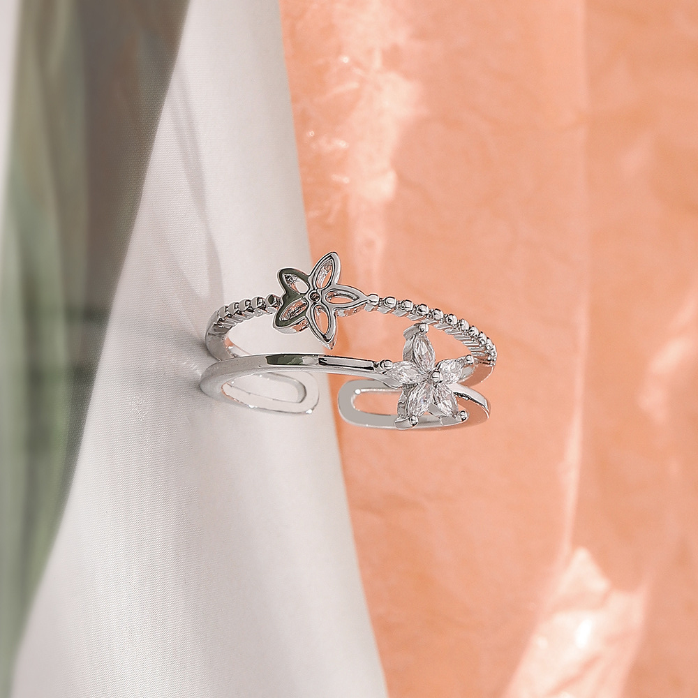 Befestigter Zirkonia Messingring Fingerring, Messing, Blütenblätter, plattiert, Micro pave Zirkonia & für Frau, Platin Farbe, verkauft von PC
