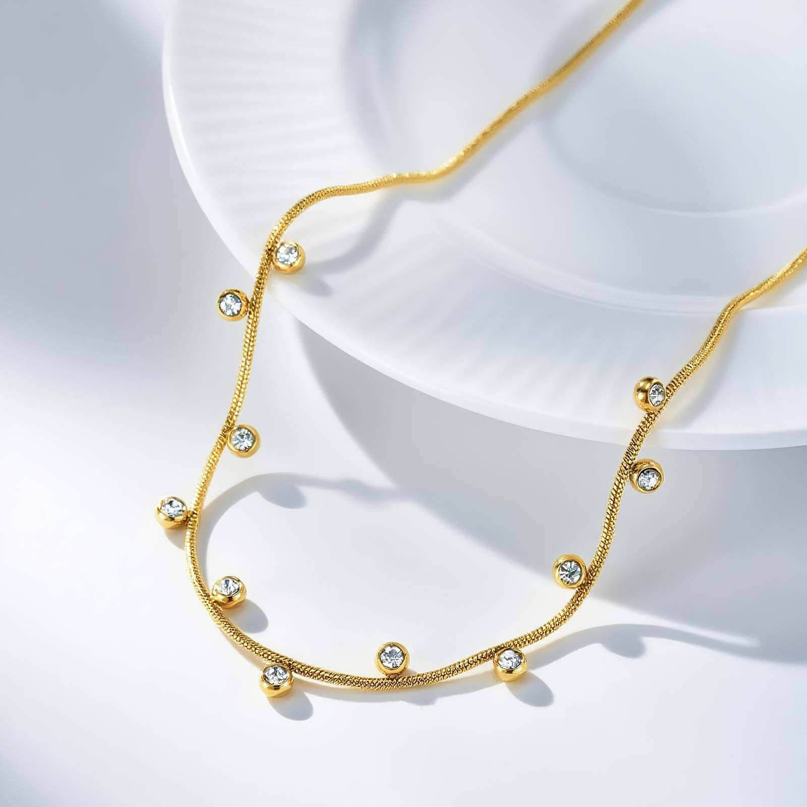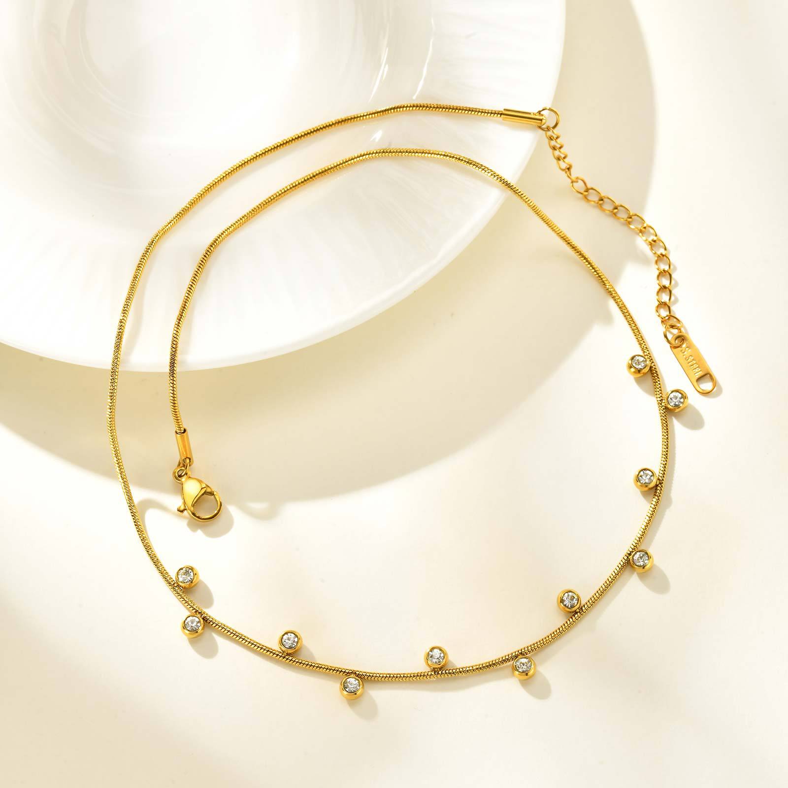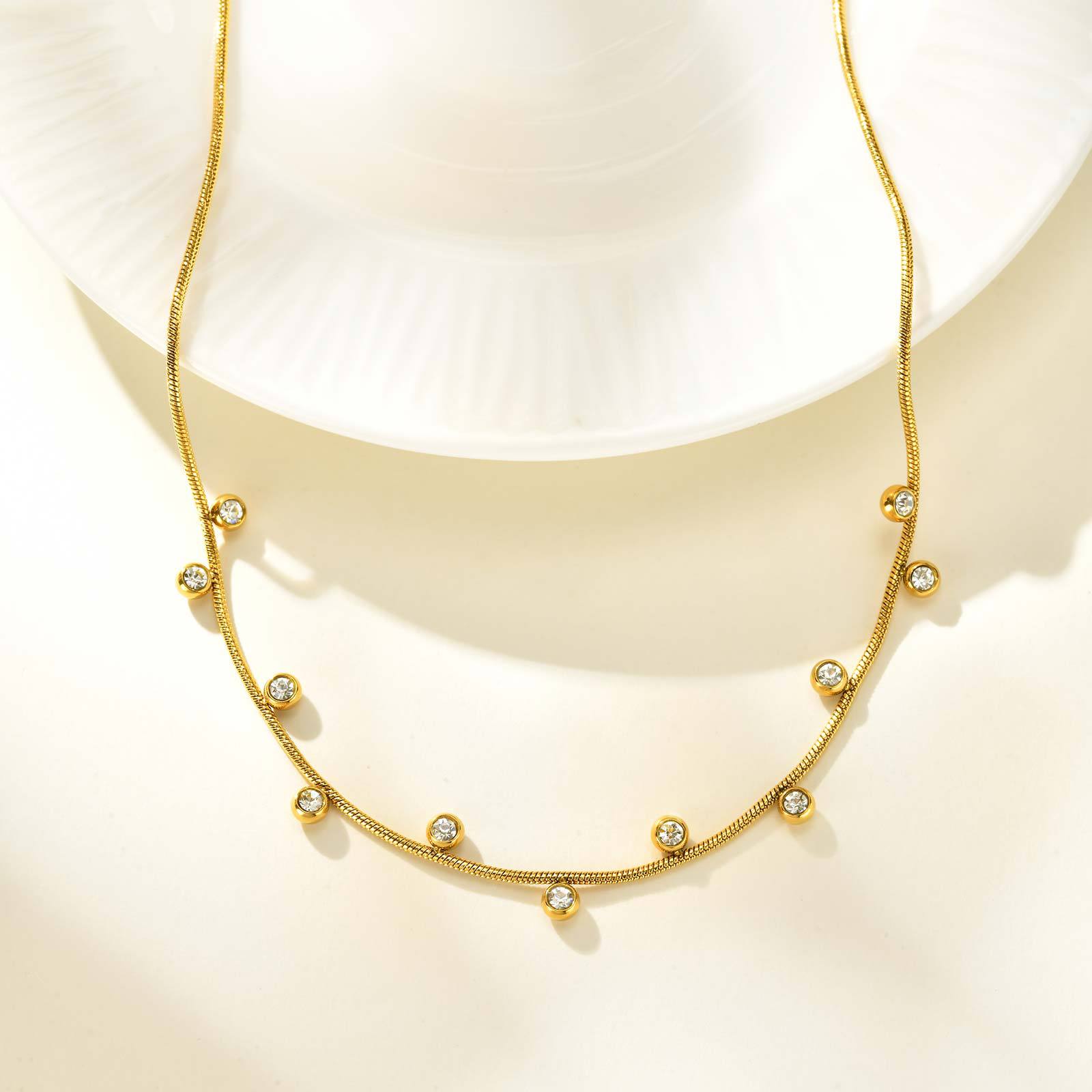 Zirkonia Edelstahl Halskette, 304 Edelstahl, mit kubischer Zirkonia, plattiert, Modeschmuck & Schlangekette & für Frau, goldfarben, verkauft von PC