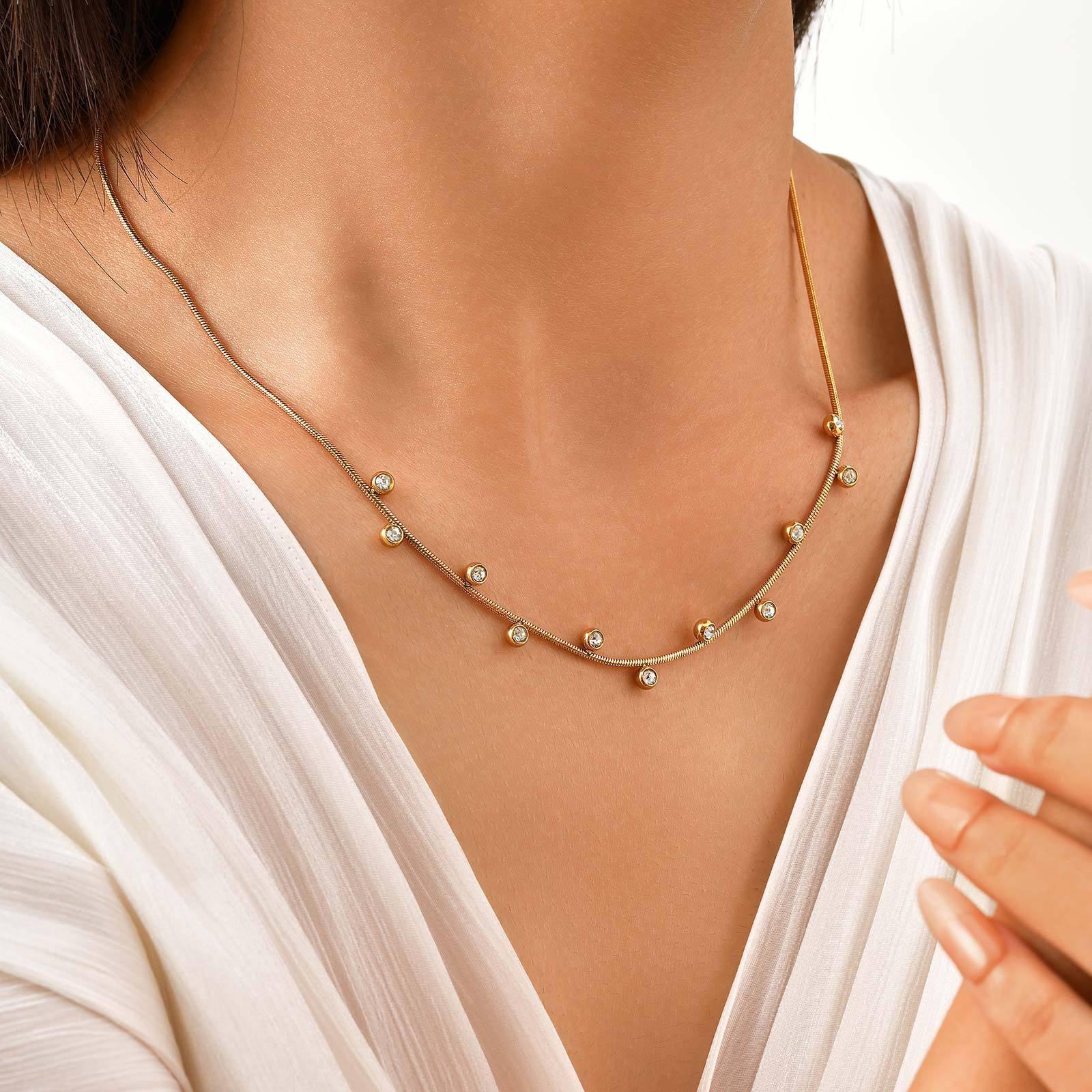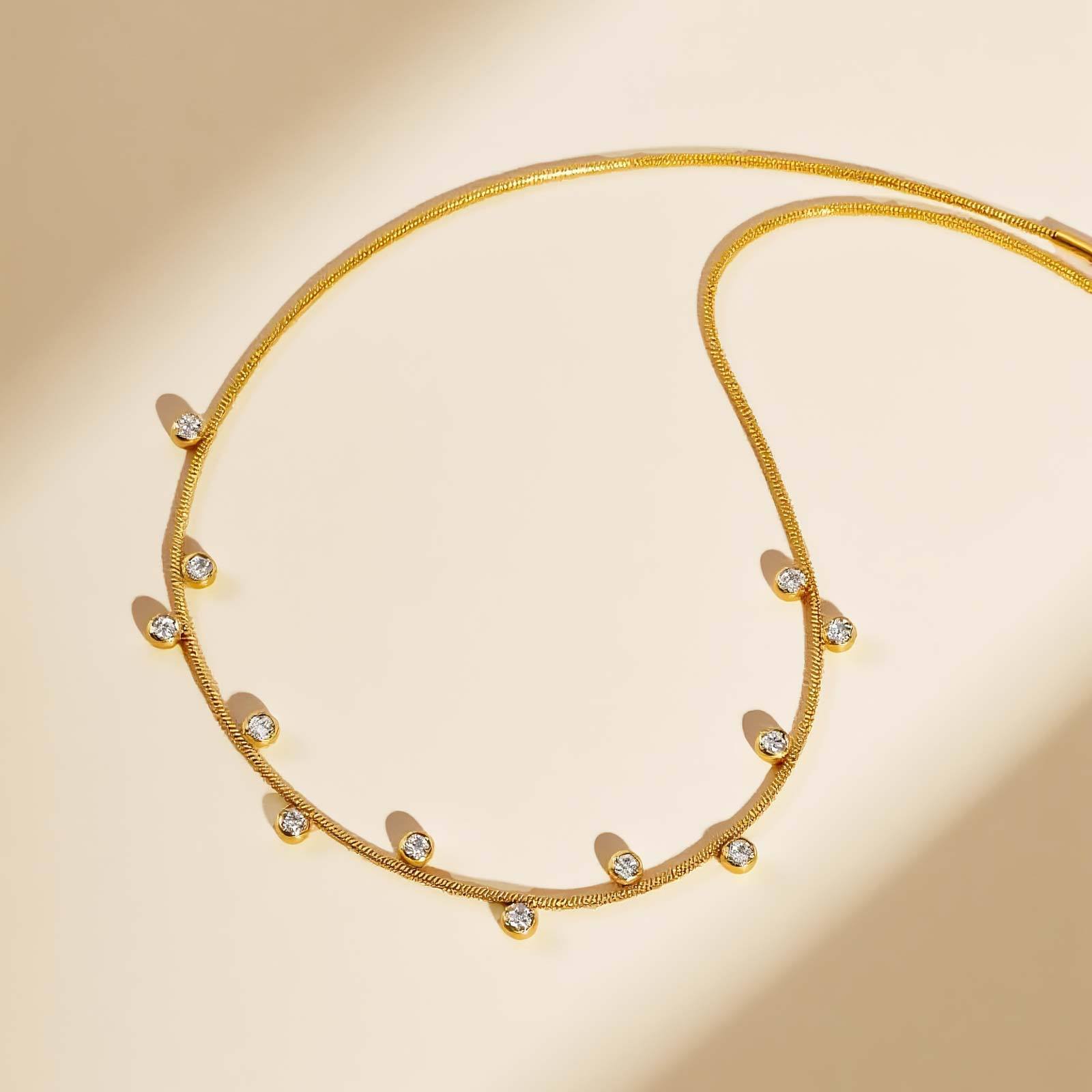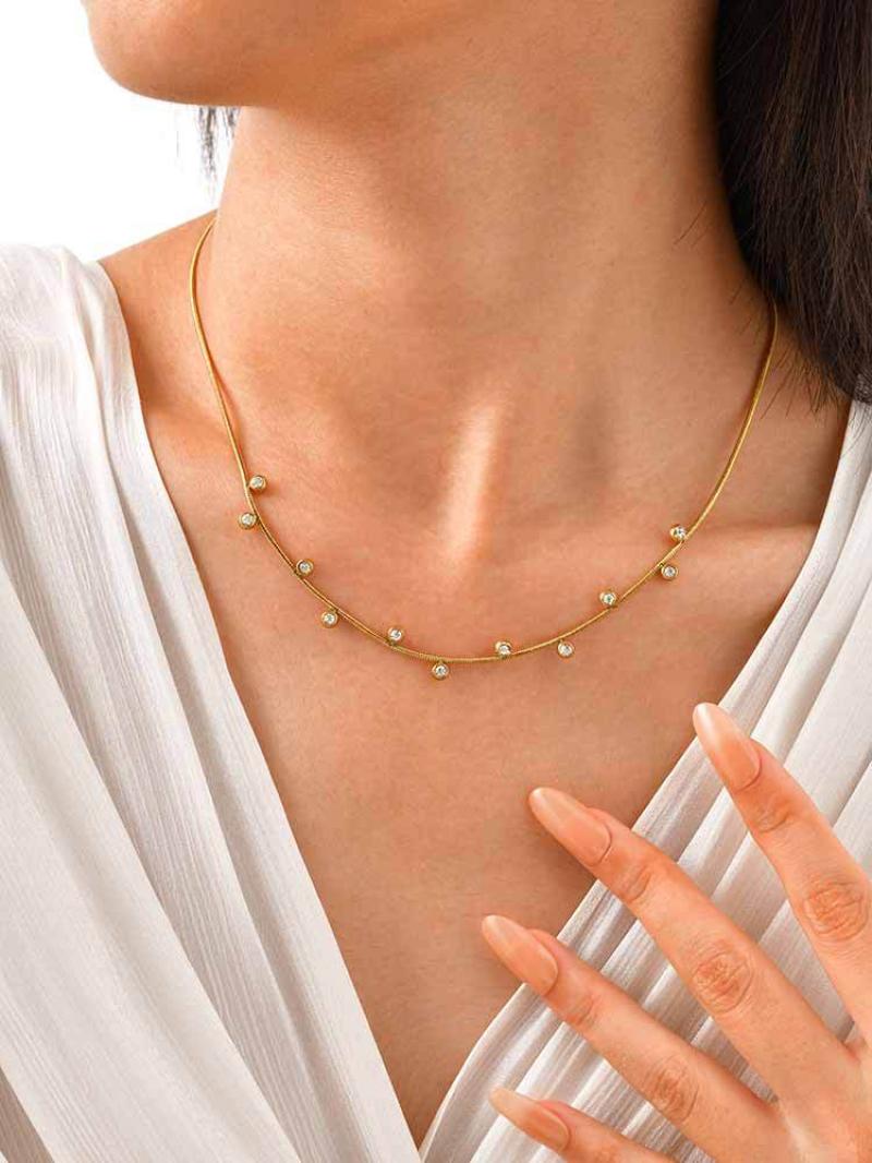 Zirkonia Edelstahl Halskette, 304 Edelstahl, mit kubischer Zirkonia, plattiert, Modeschmuck & Schlangekette & für Frau, goldfarben, verkauft von PC