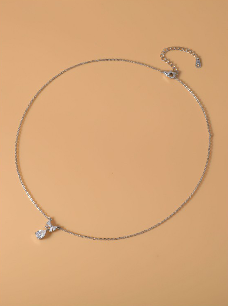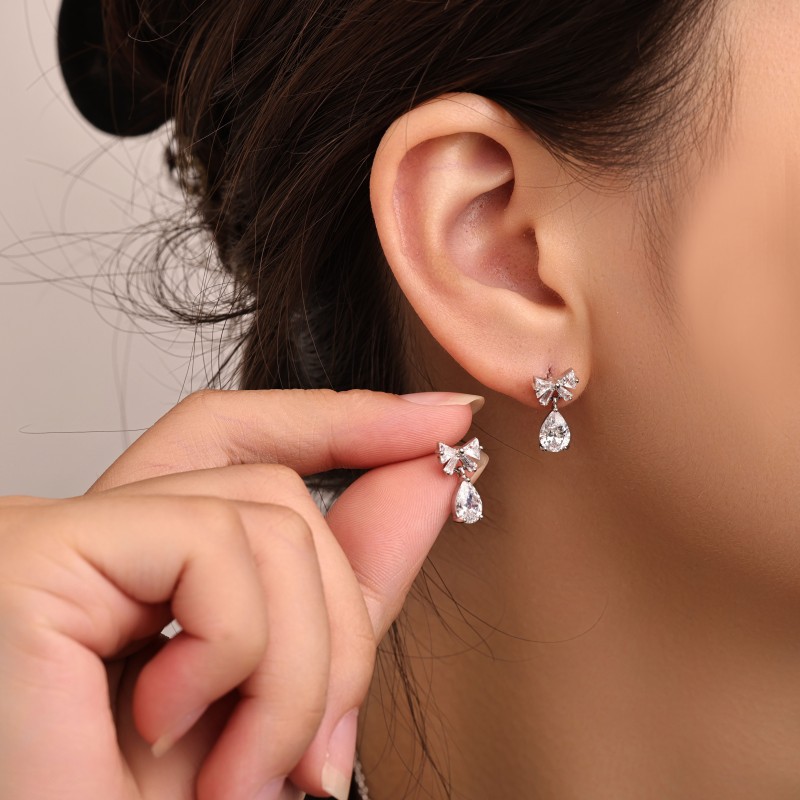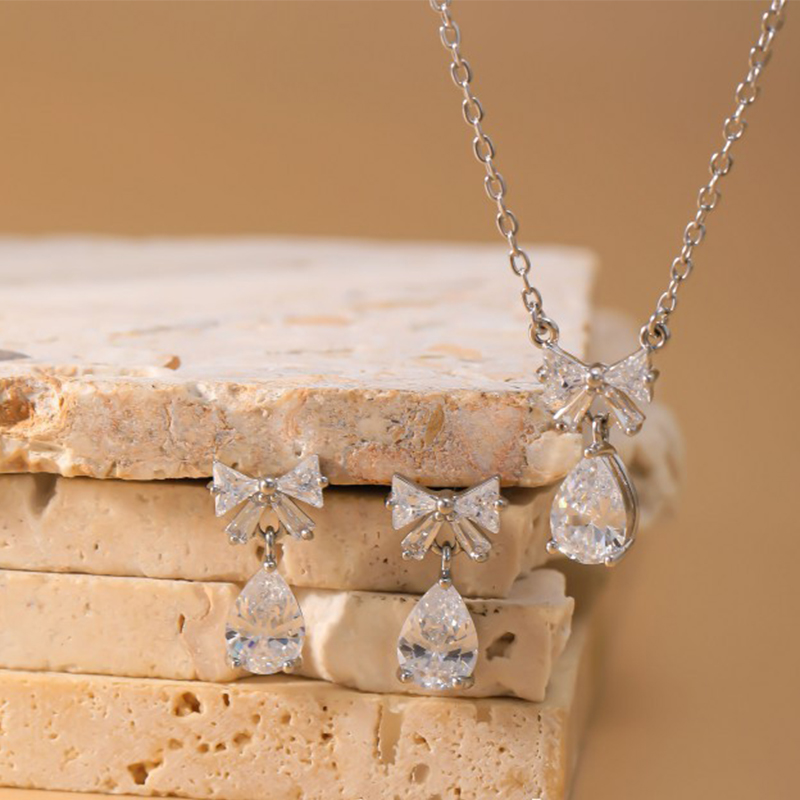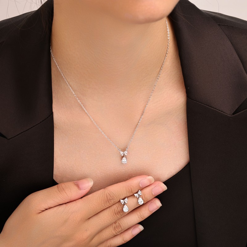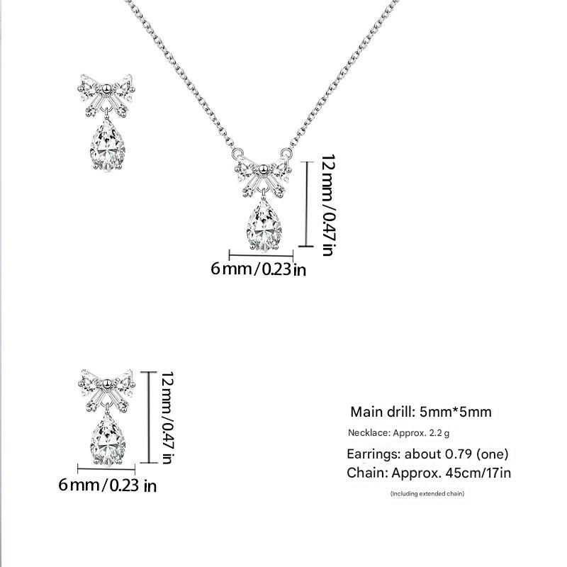 Zirkonia Micro Pave Schmucksets Messing, Ohrring & Halskette, Schleife, plattiert, 2 Stück & Micro pave Zirkonia & für Frau, Silberfarbe, verkauft von setzen