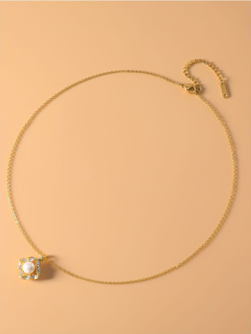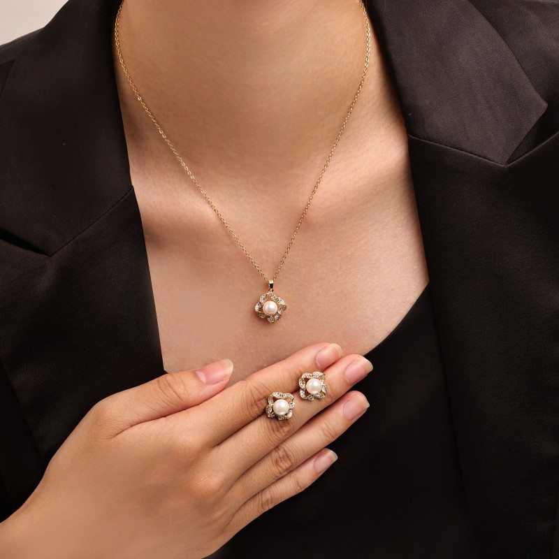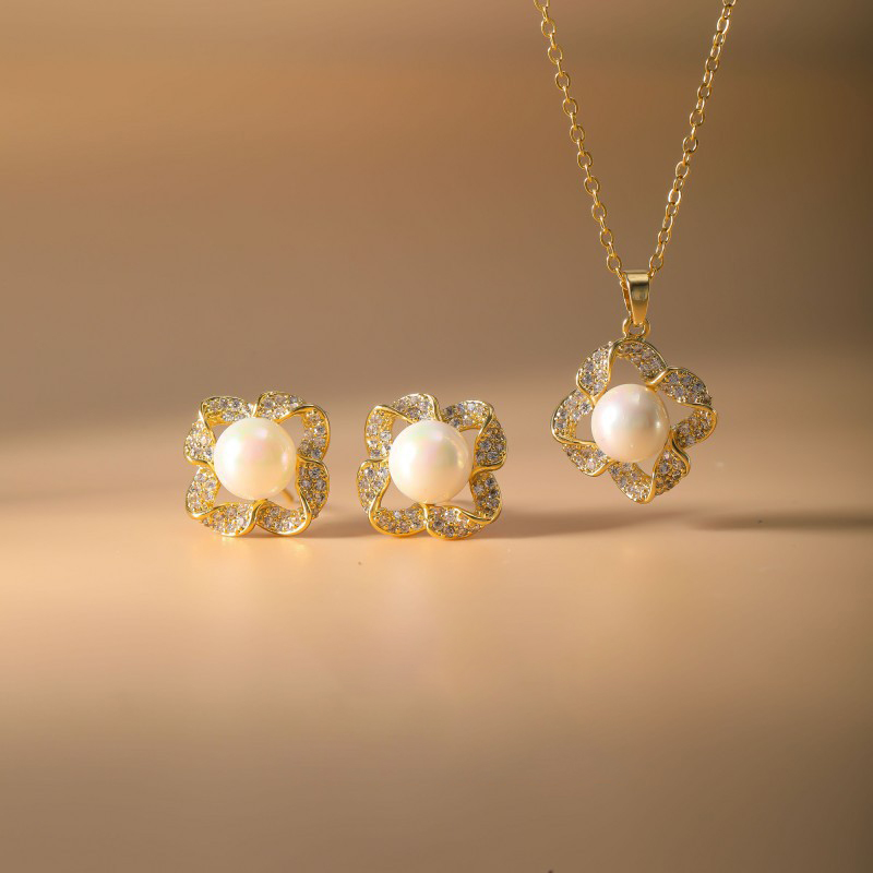 Zirkonia Micro Pave Schmucksets Messing, Stud Ohrring & Halskette, mit Kunststoff Perlen, Blume, plattiert, 2 Stück & Micro pave Zirkonia & für Frau, keine, verkauft von setzen