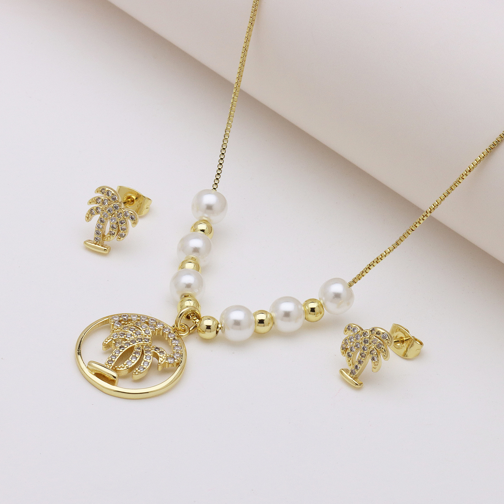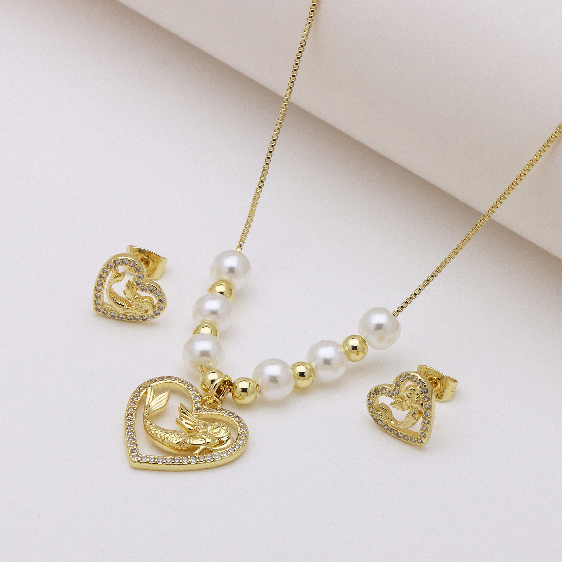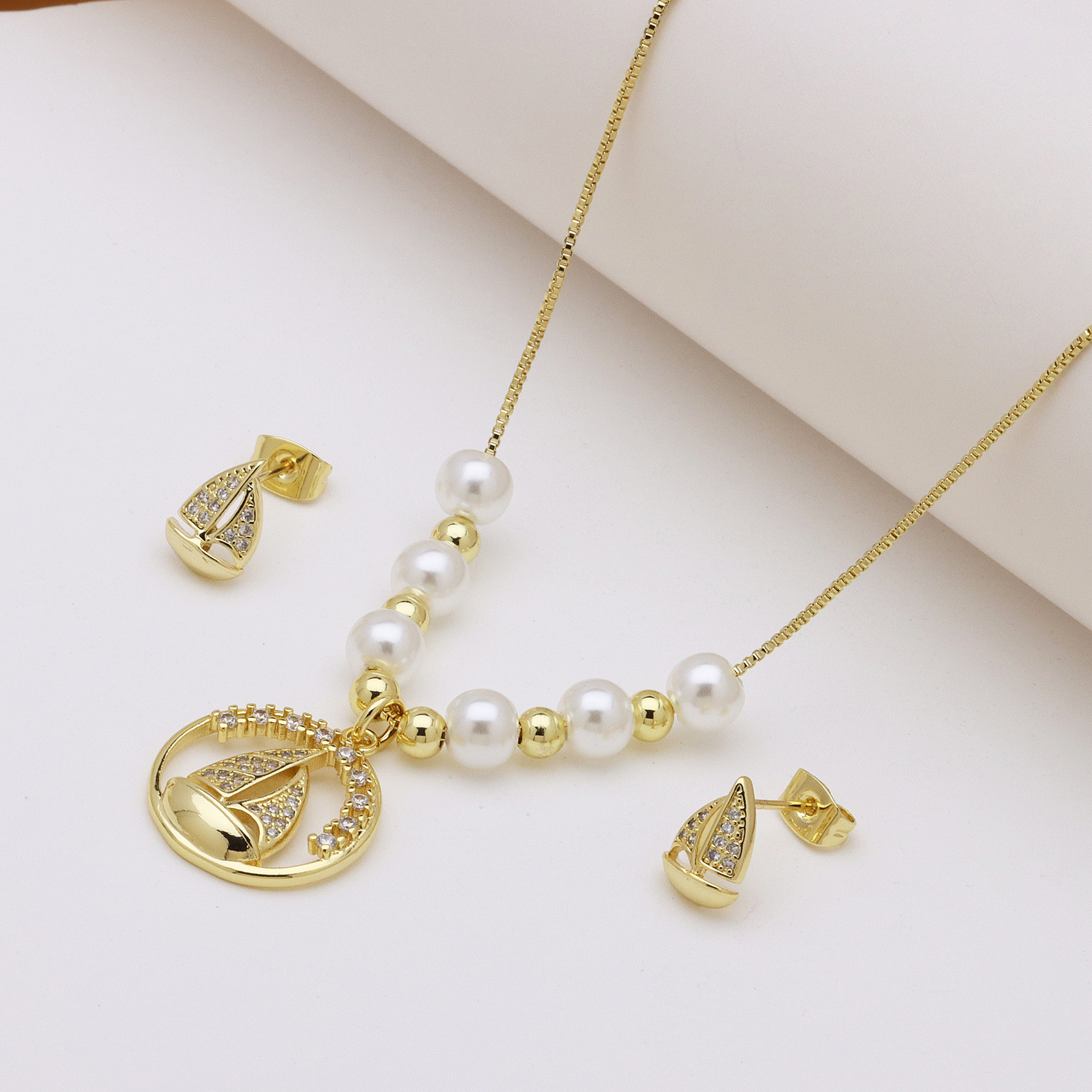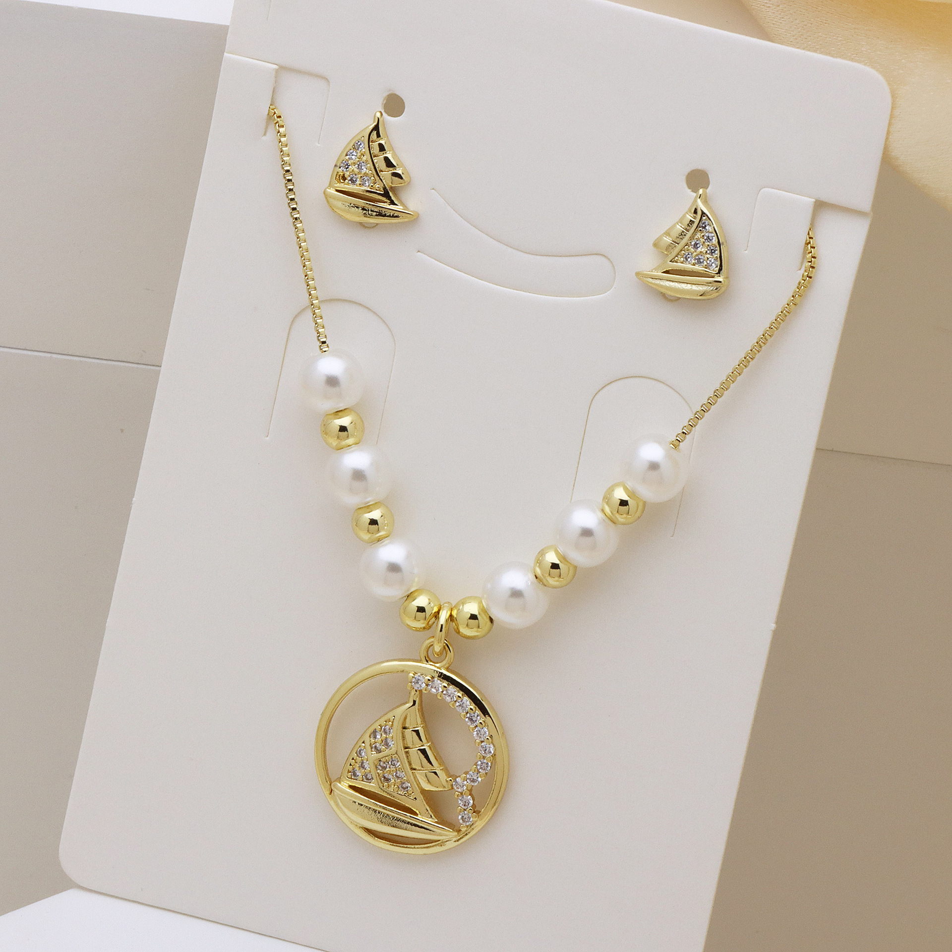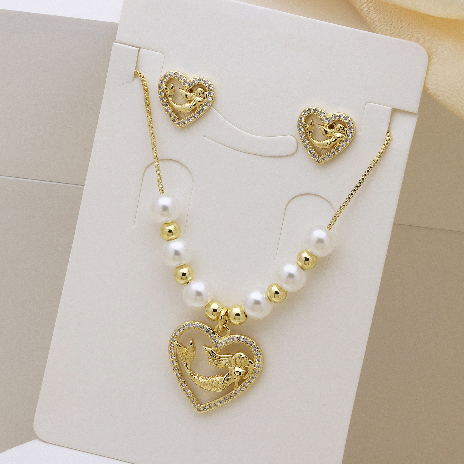 Zirkonia Micro Pave Schmucksets Messing, mit Kunststoff Perlen, goldfarben plattiert, verschiedene Stile für Wahl & Micro pave Zirkonia & für Frau, keine, Länge:ca. 50 cm, verkauft von setzen