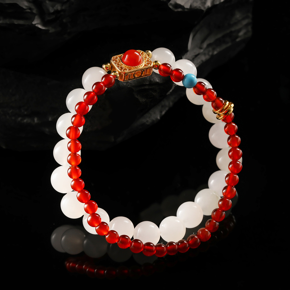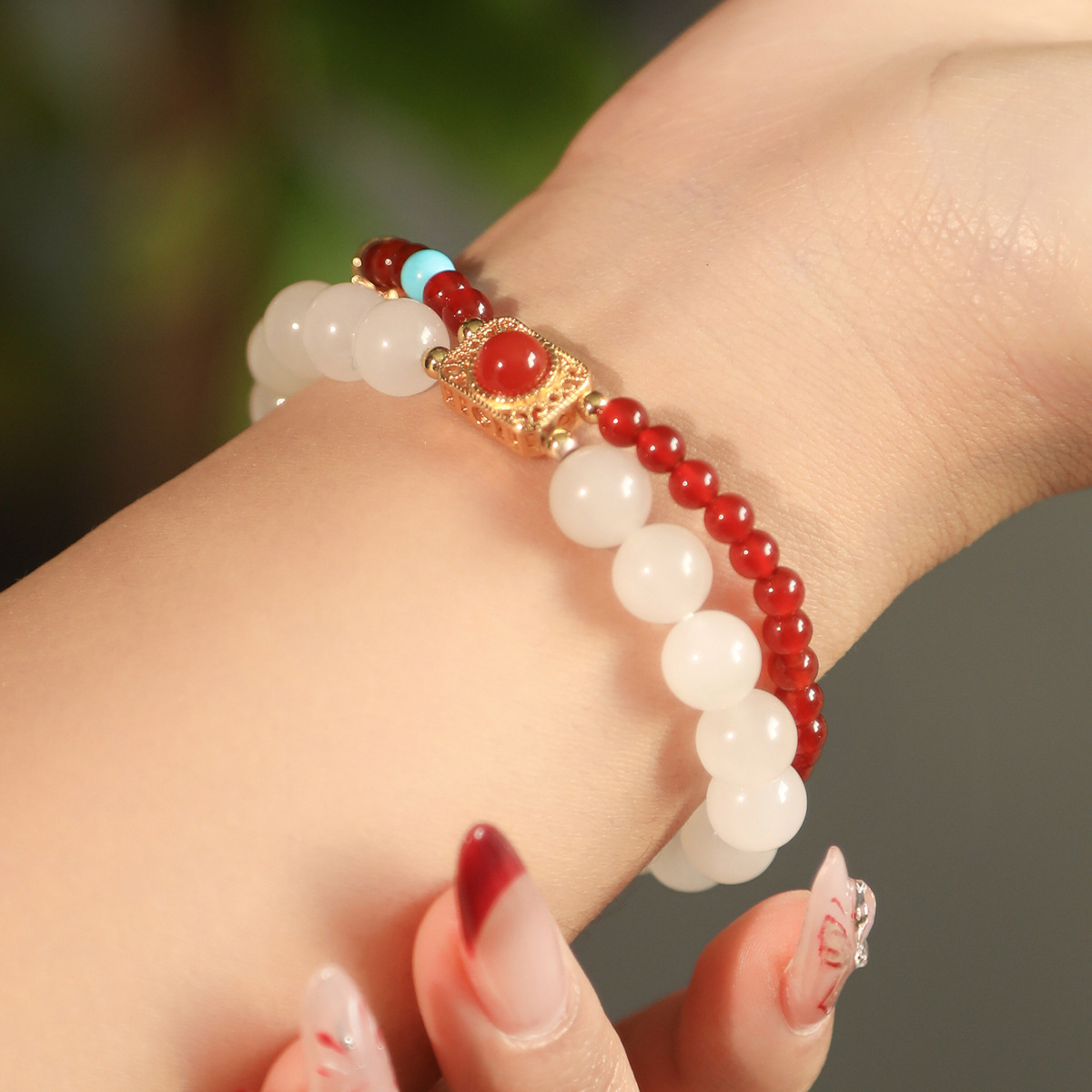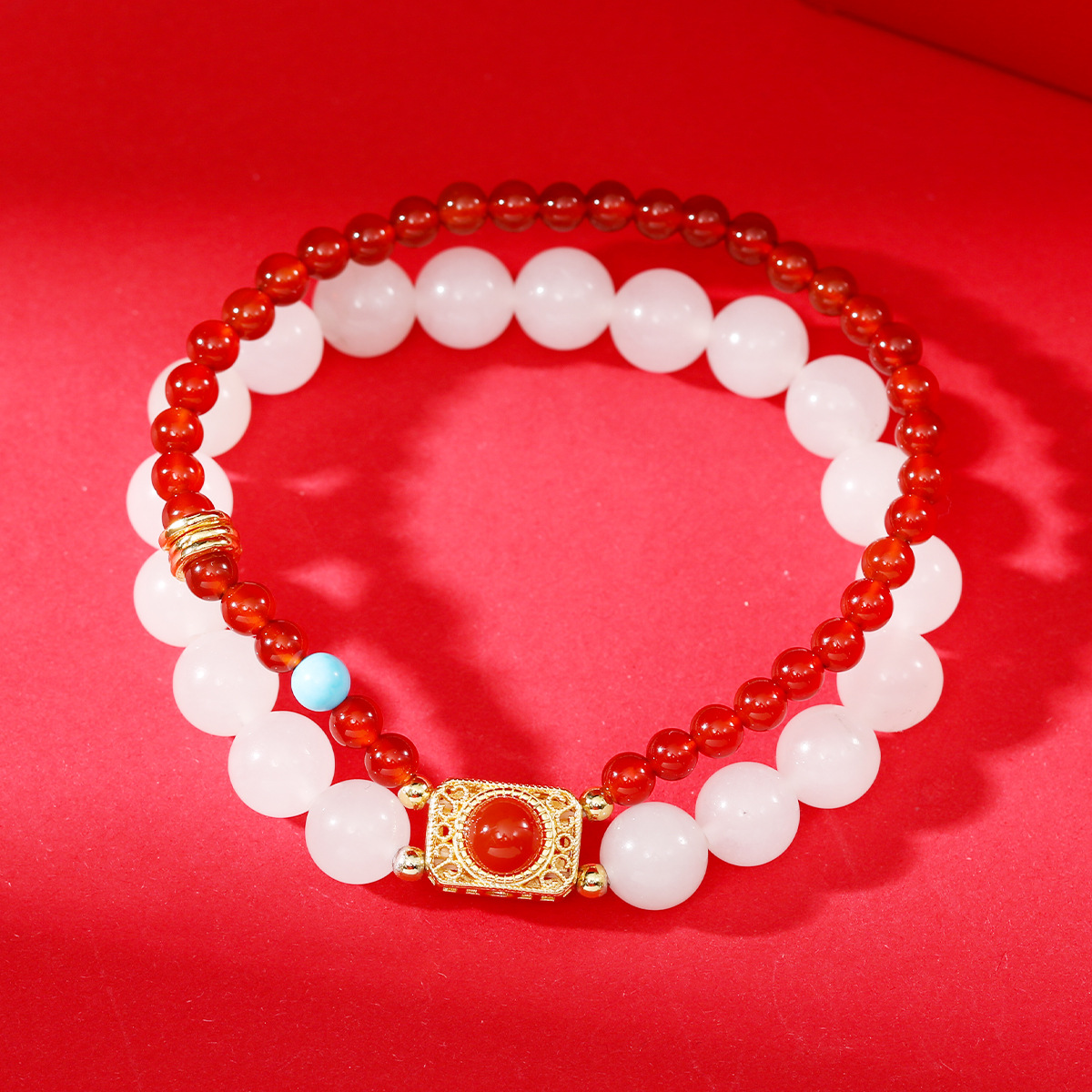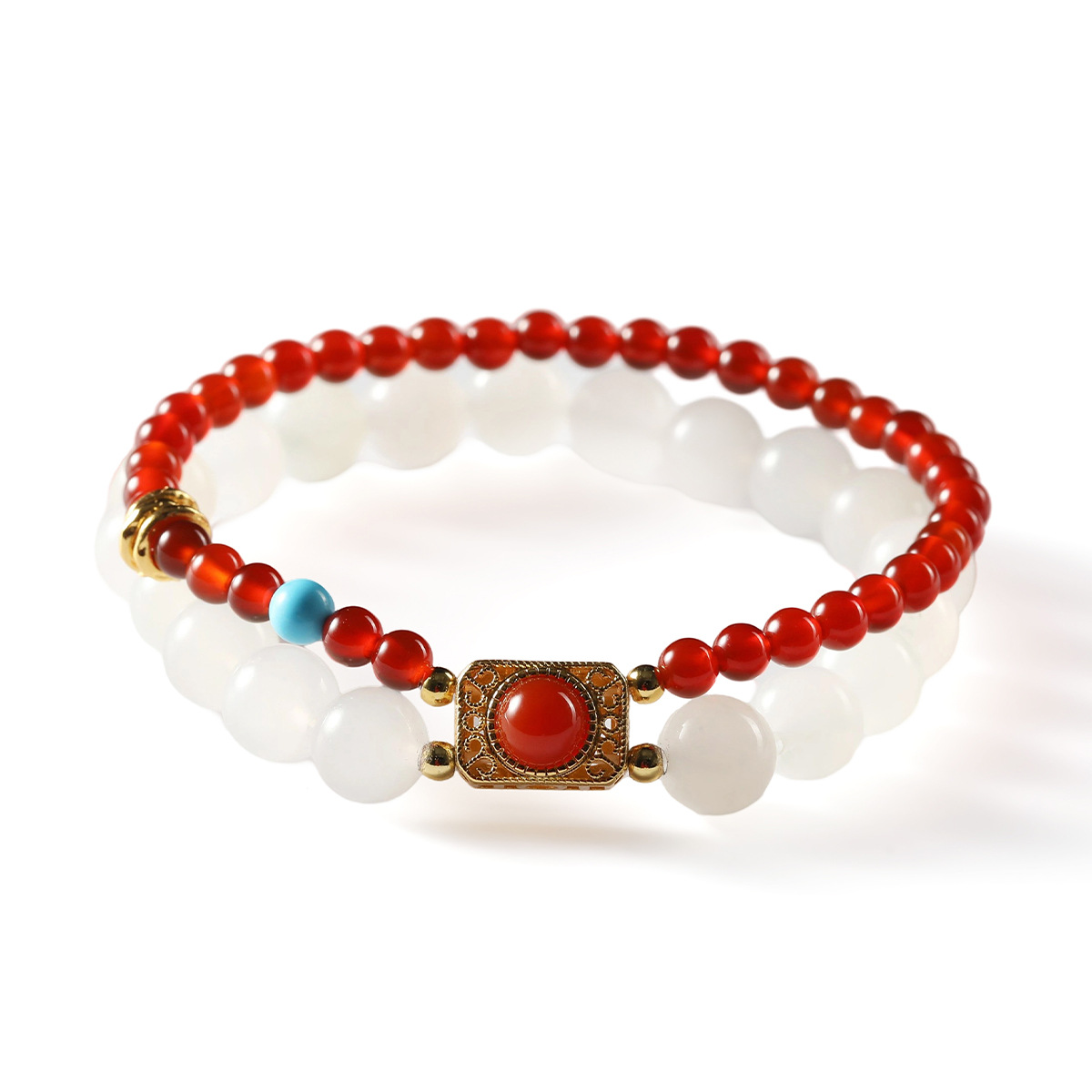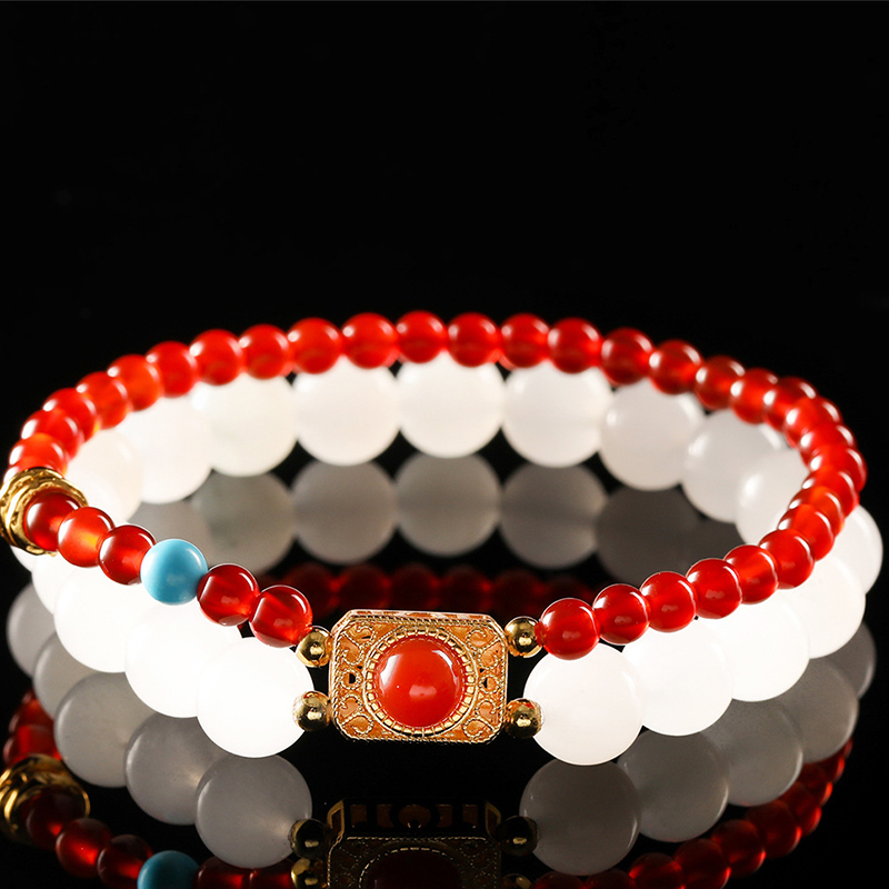 Roter Achat Armband, mit Ice Jade & Messing, handgemacht, Doppelschicht & natürliche & für Frau, beads length 4mm,8mm, Länge:ca. 6 ZollInch, verkauft von PC