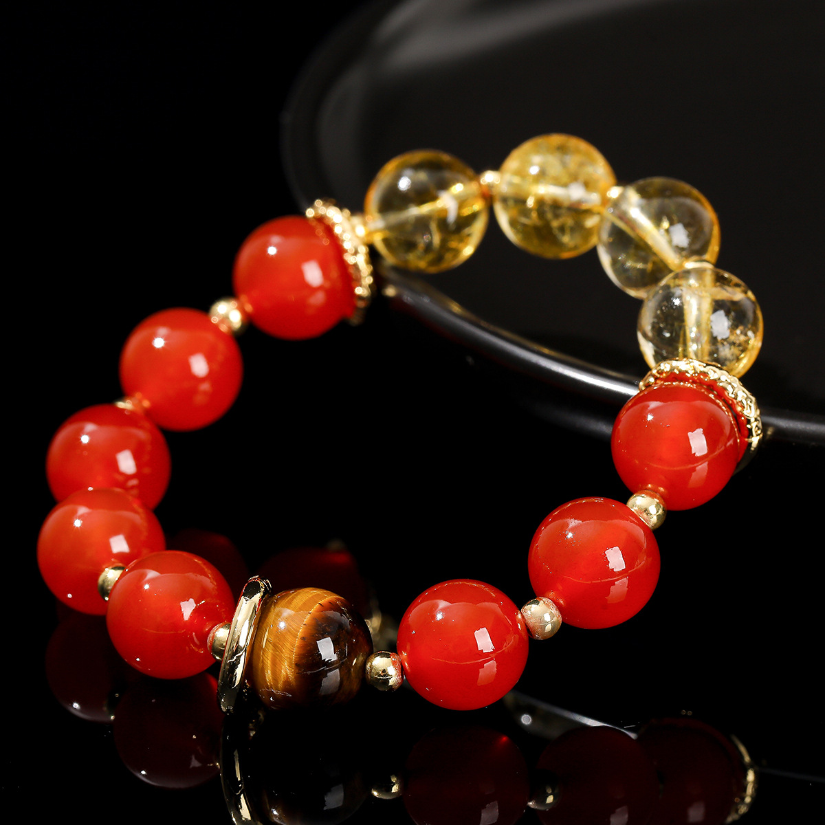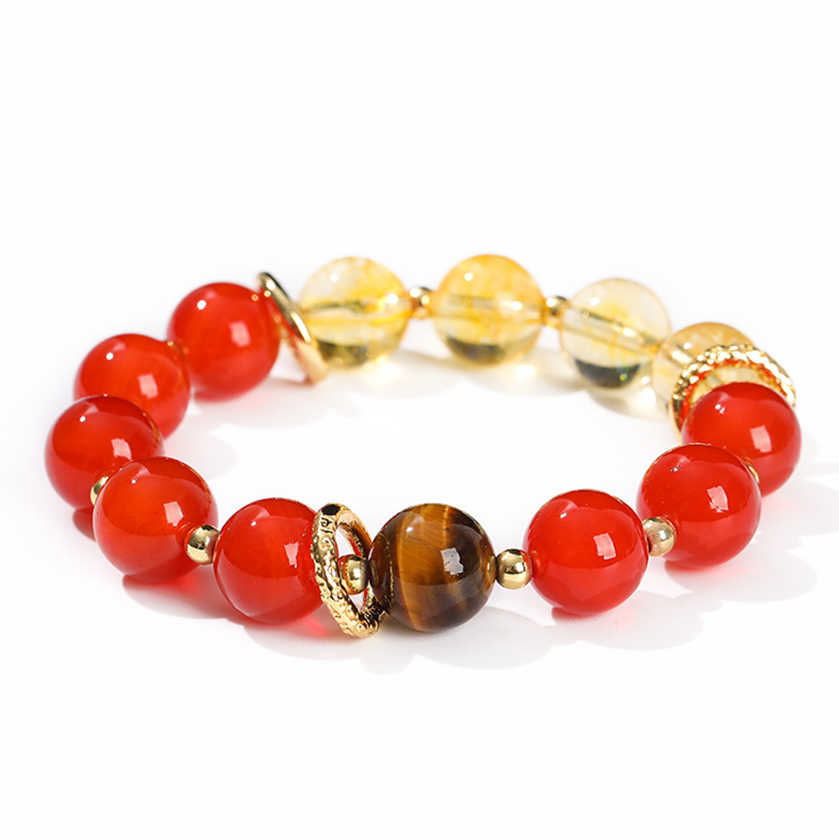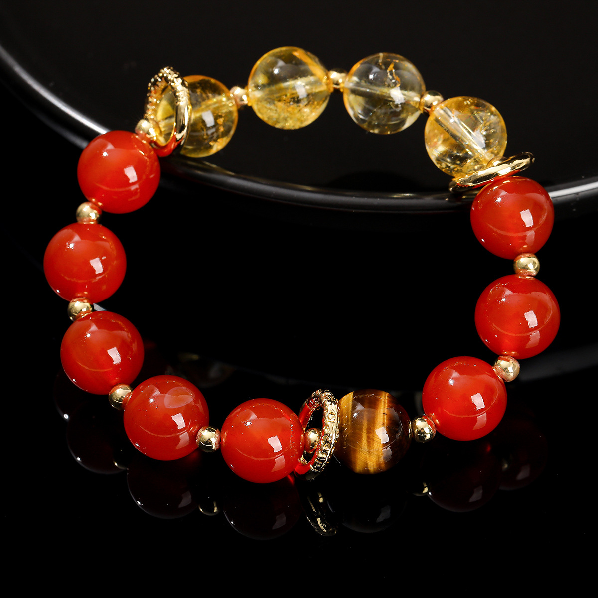 Roter Achat Armband, mit Knistern Quarz & Messing & Zinklegierung, rund, handgemacht, natürliche & unisex, beads length 12mm, Länge:ca. 7 ZollInch, verkauft von PC