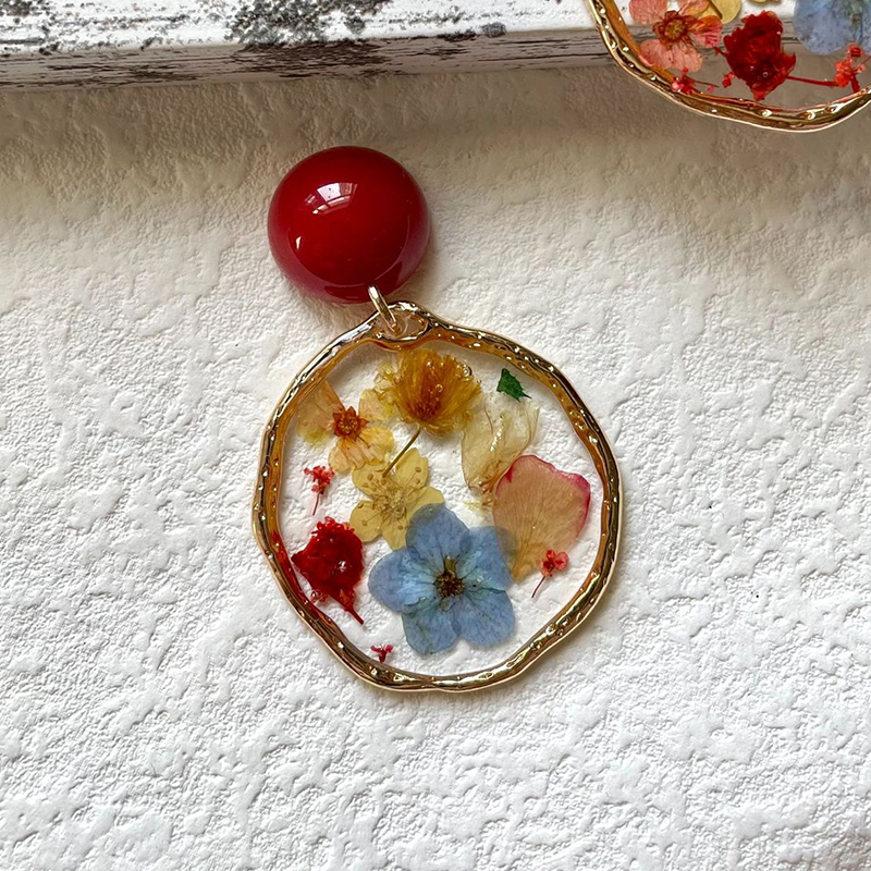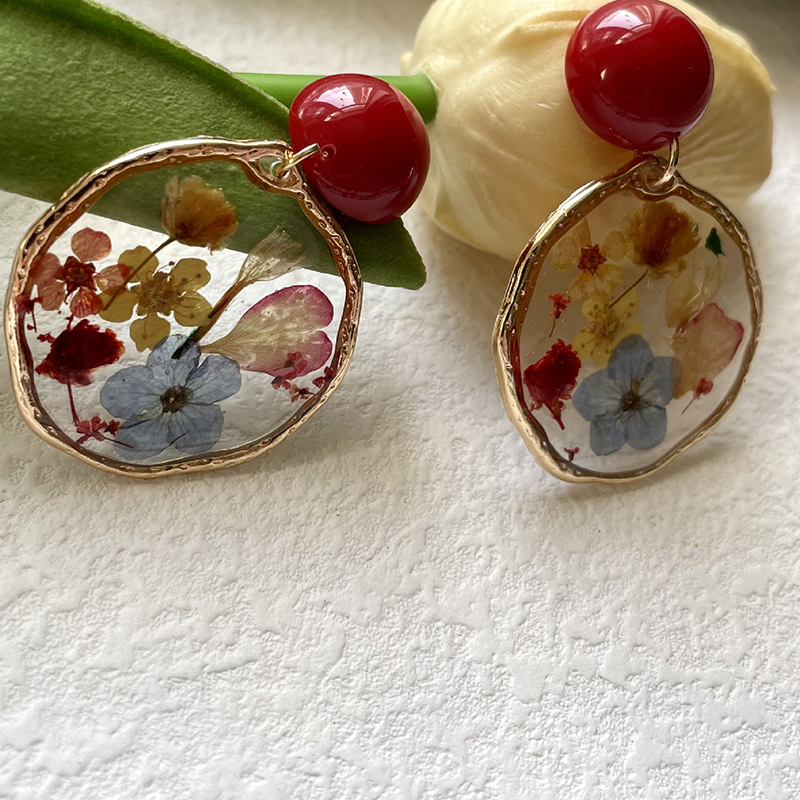Zinklegierung Tropfen Ohrring, mit Getrocknete Blumen, Epoxidharzklebstoff, Vintage & für Frau, 30x50mm, verkauft von Paar