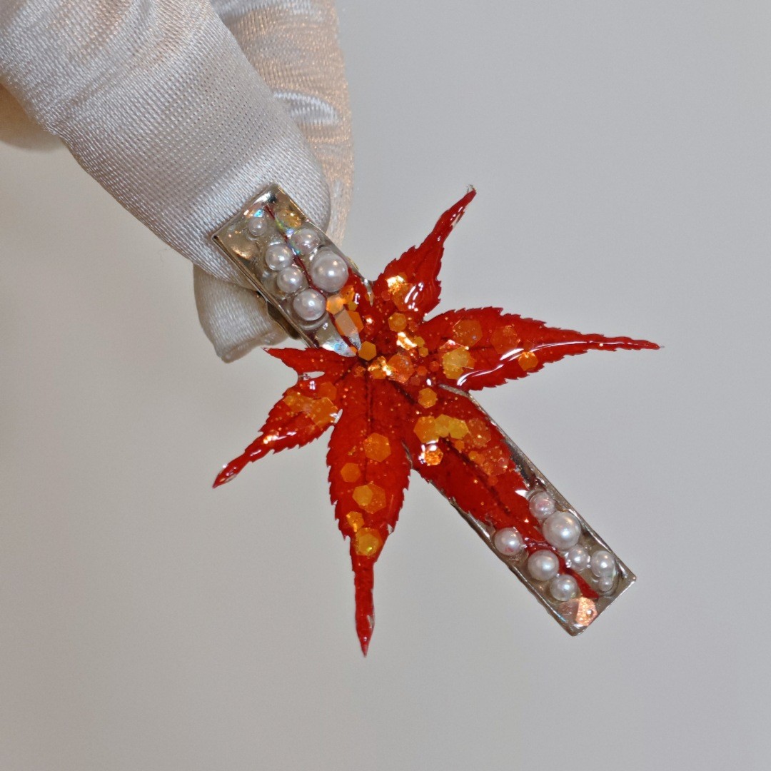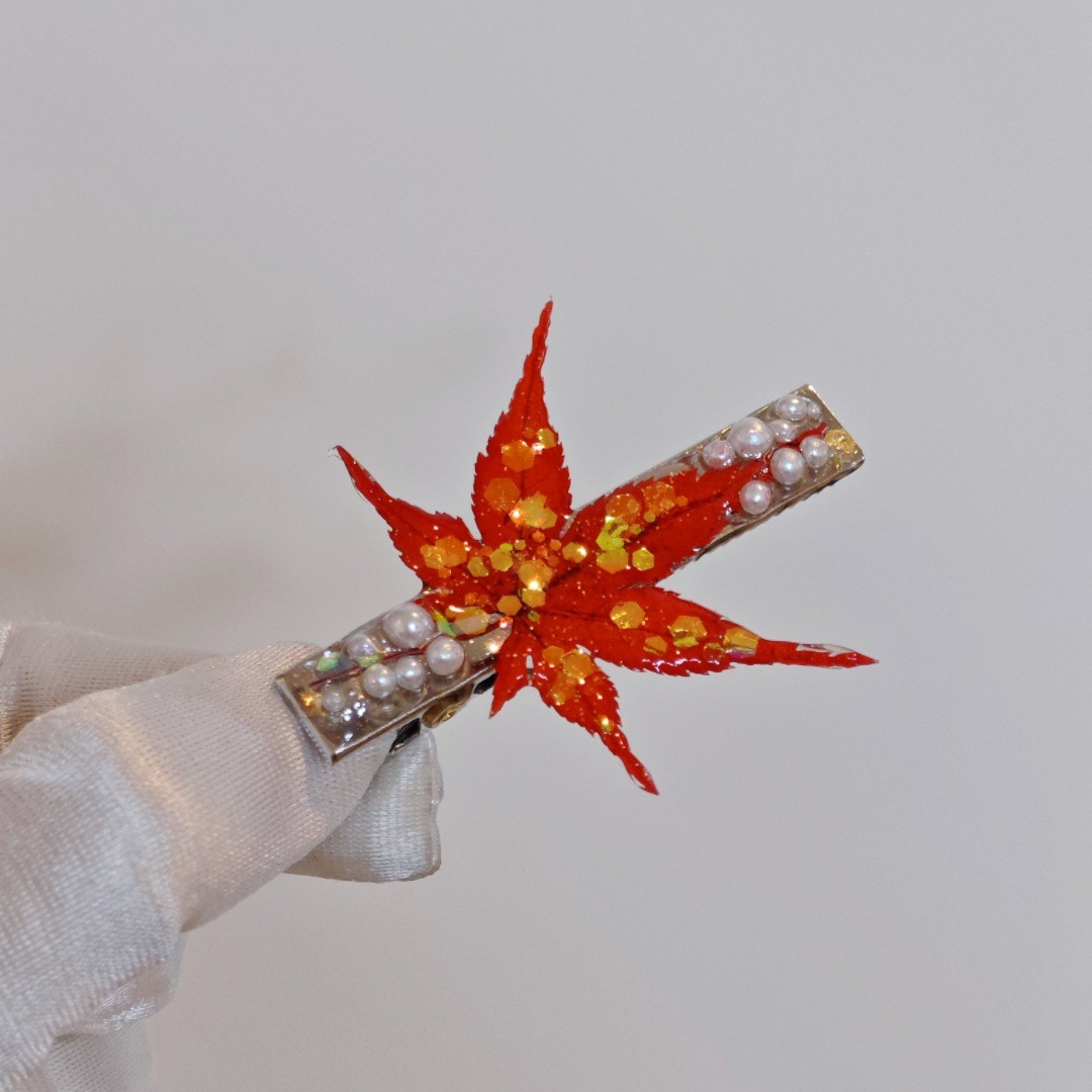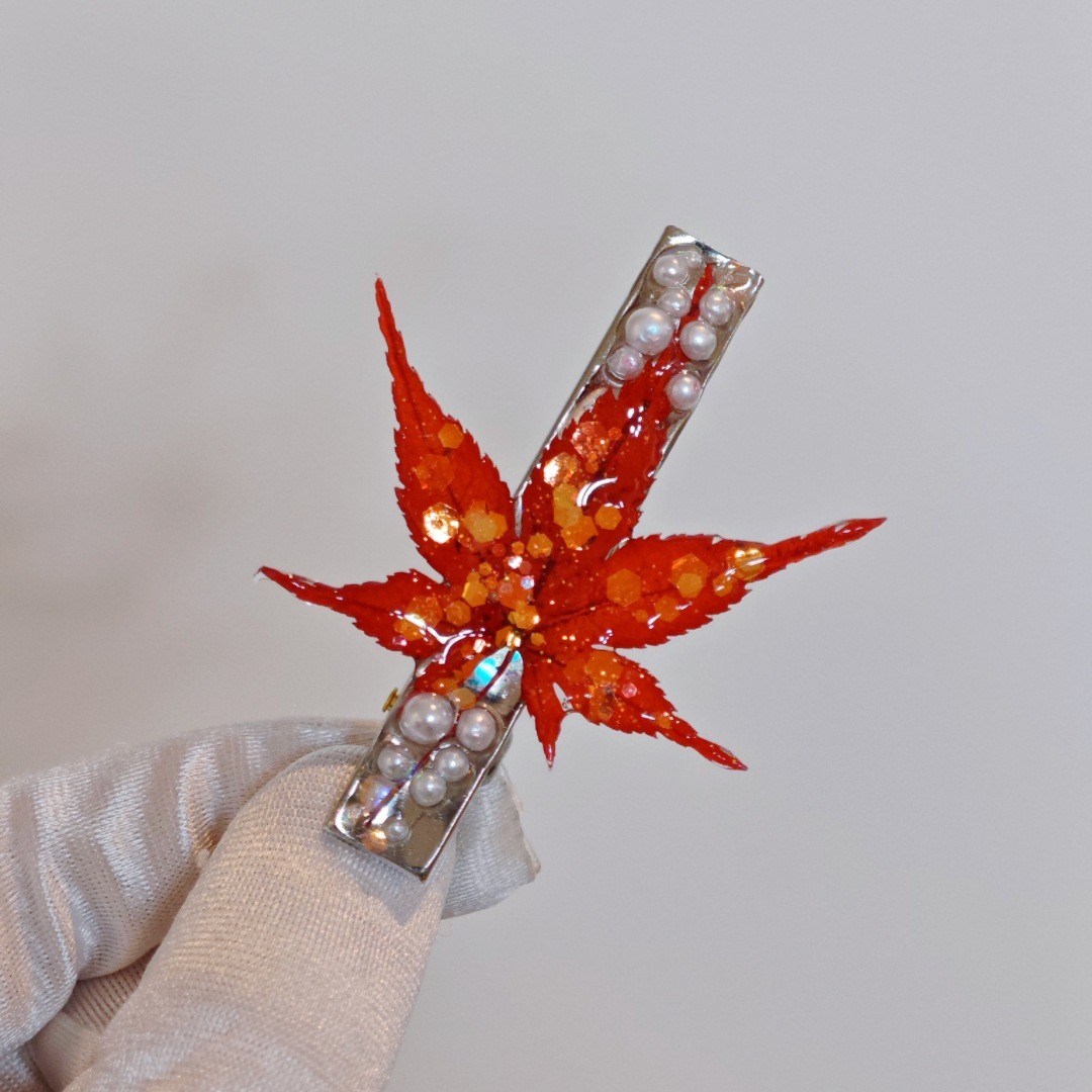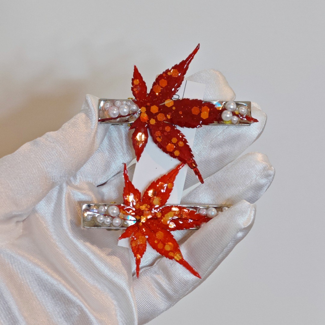 Zinklegierung Haarschnabel, mit ABS-Kunststoff-Perlen & Harz, Ahornblatt, Modeschmuck & für Frau, Länge:ca. 6 cm, verkauft von PC