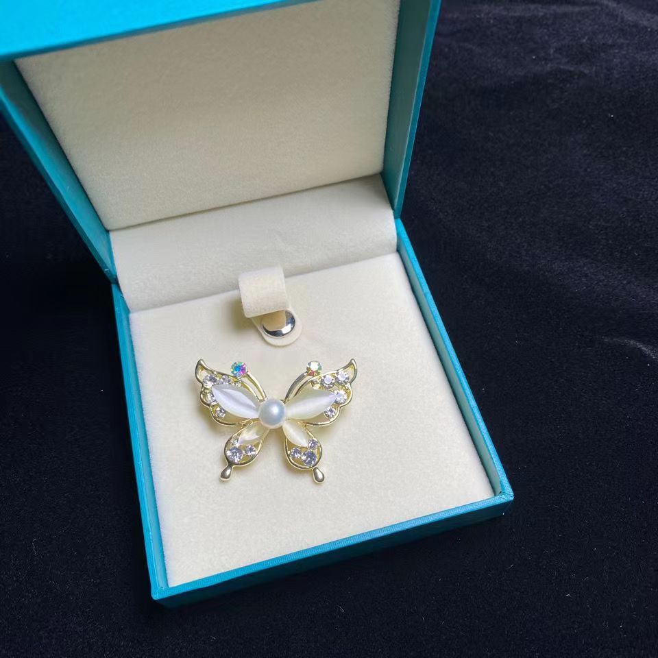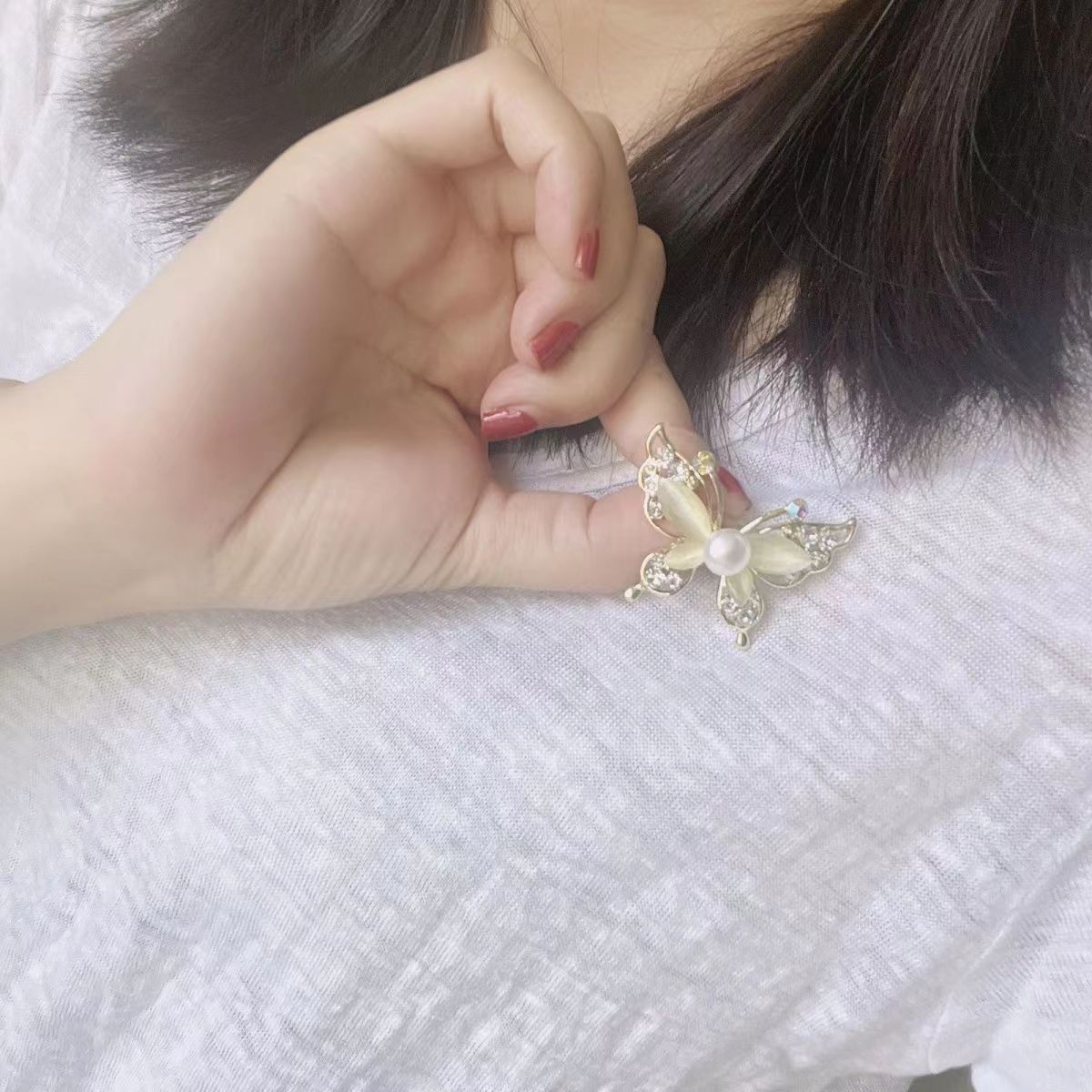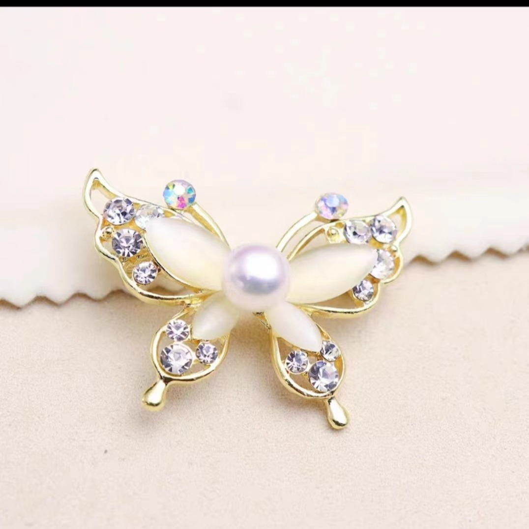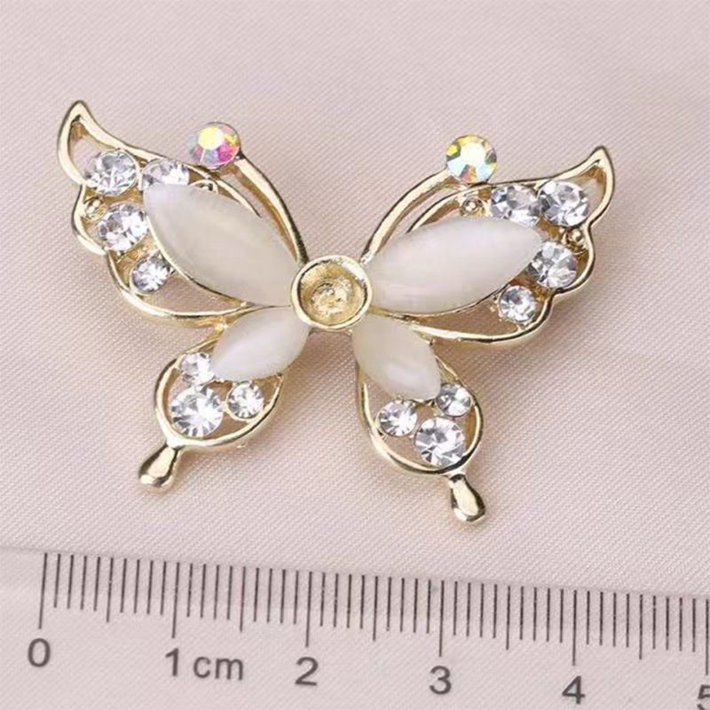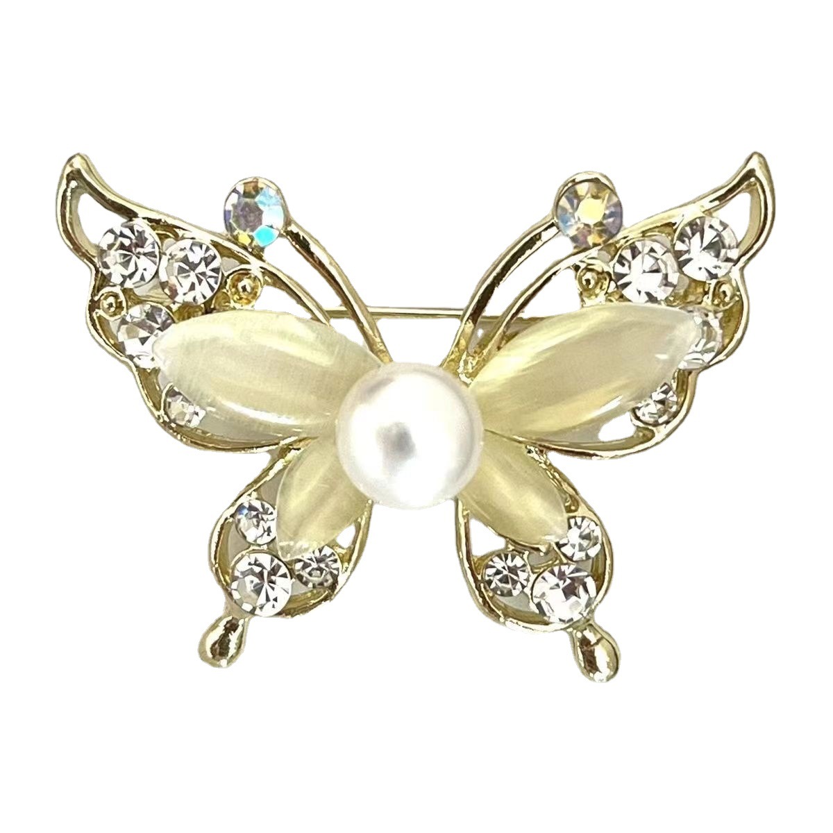 Zinklegierung Brosche, mit Kristall & Kunststoff Perlen, Schmetterling, goldfarben plattiert, für Frau & mit Strass, 43mm, verkauft von PC
