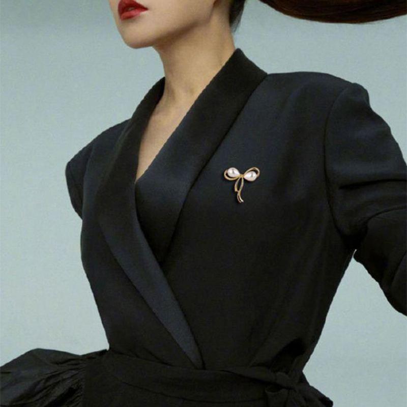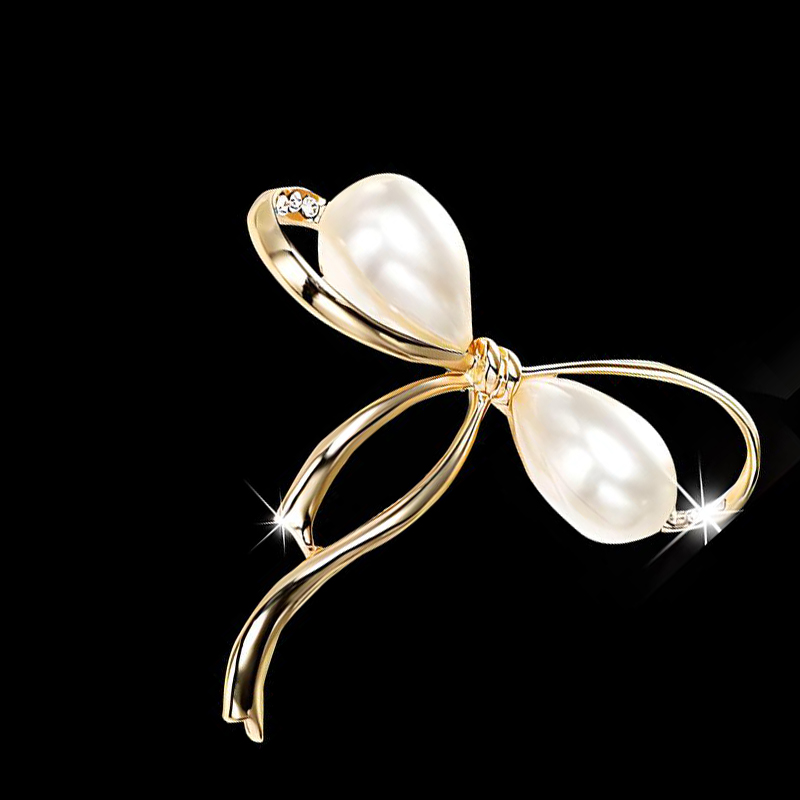 Zinklegierung Brosche, mit Kunststoff Perlen, Schleife, goldfarben plattiert, für Frau & mit Strass, 32mm, verkauft von PC