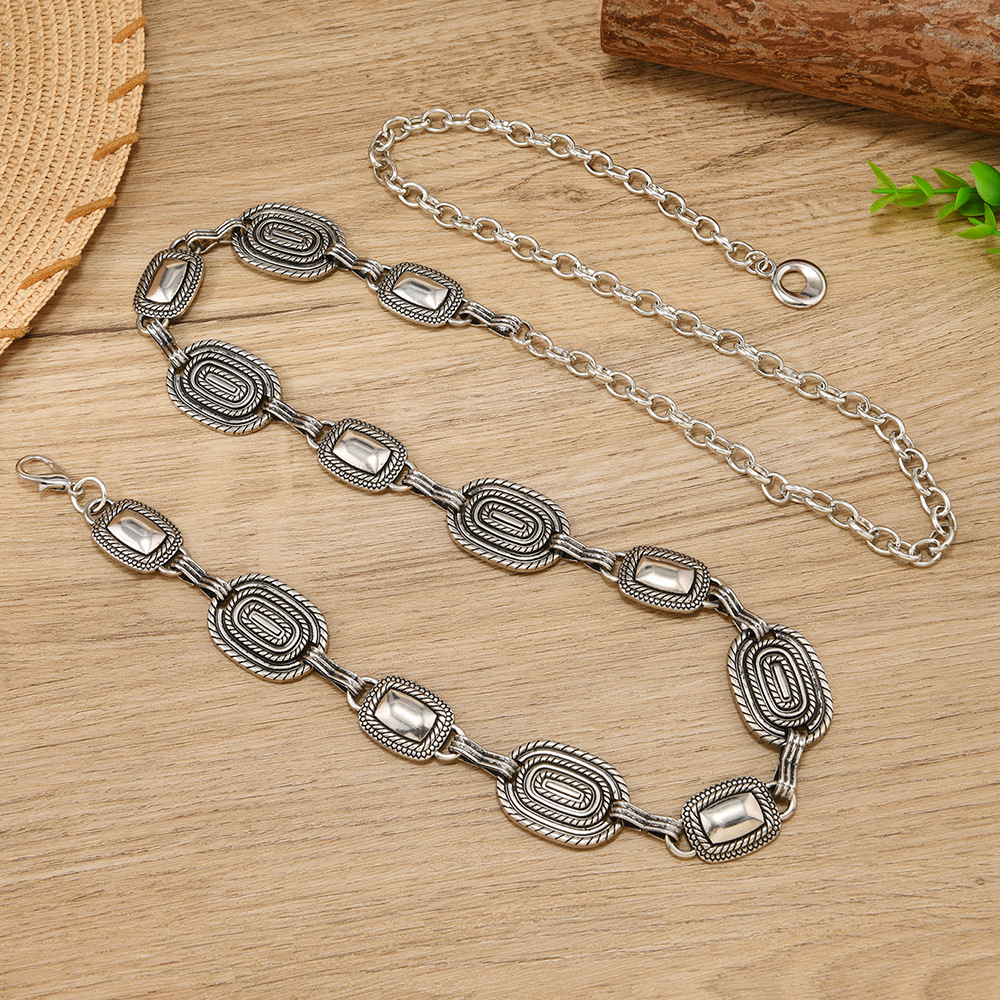 Zinklegierung Taillenkette, mit Eisen, plattiert, Vintage & für Frau, Silberfarbe, Länge:ca. 110 cm, verkauft von PC