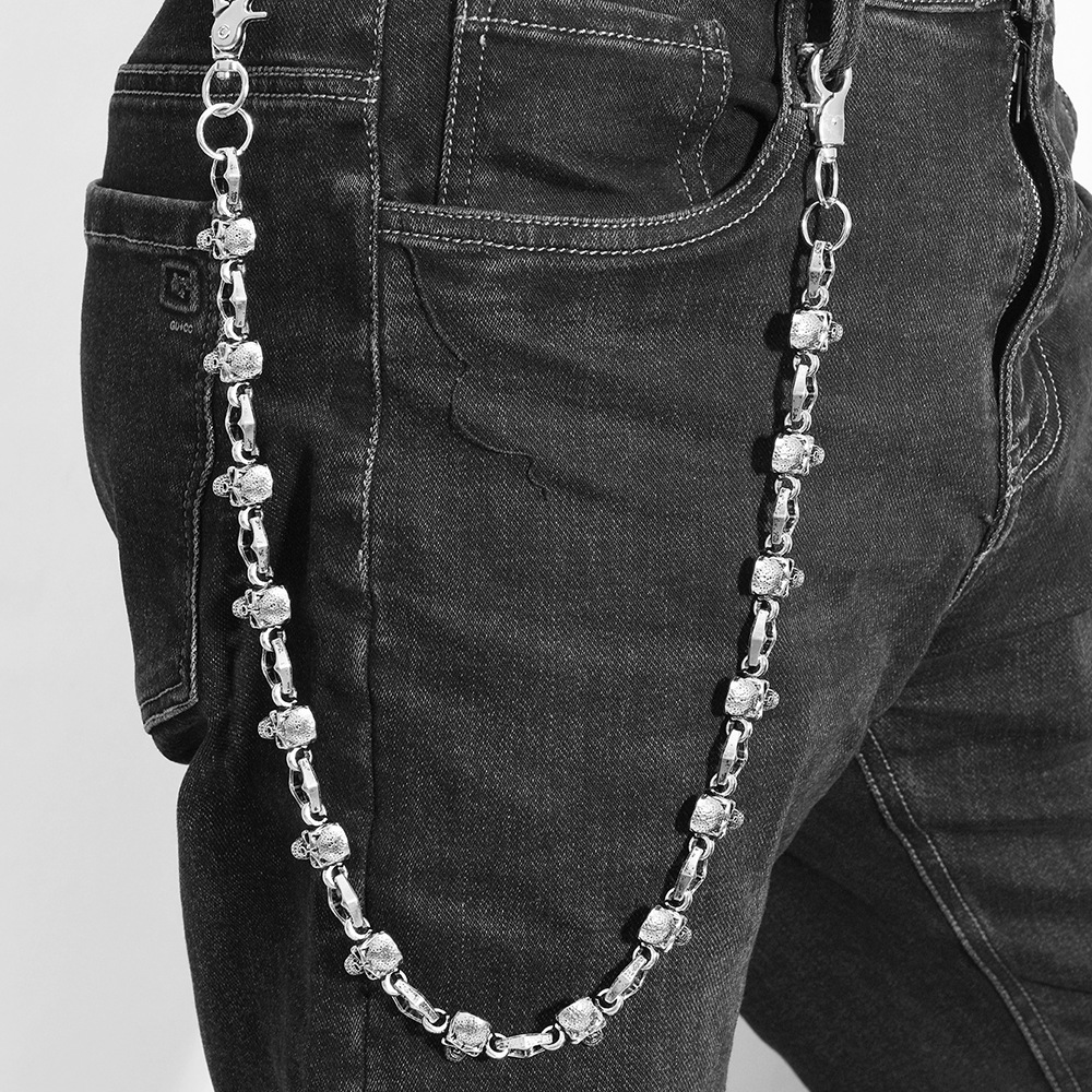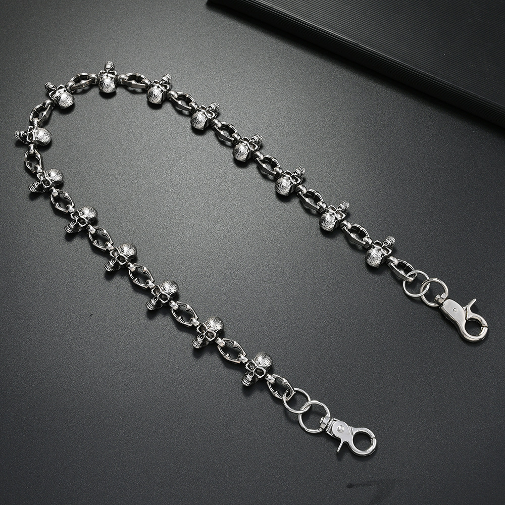 Zinklegierung Taillenkette, mit Eisen, Schädel, plattiert, Punk-Stil & unisex, Silberfarbe, Länge:ca. 64 cm, verkauft von PC
