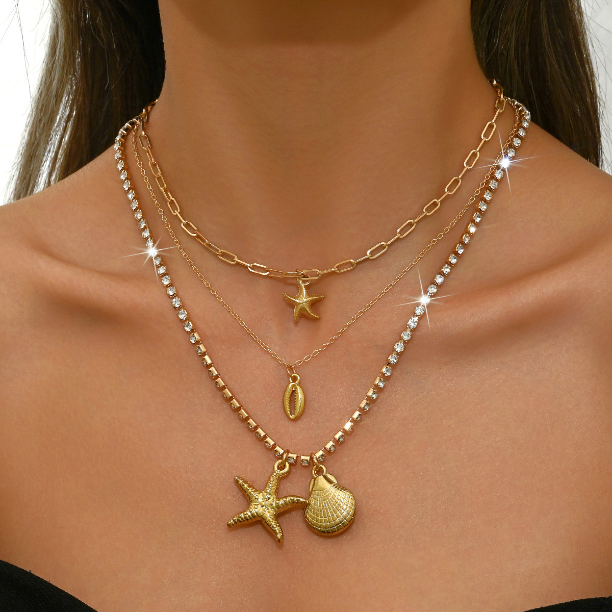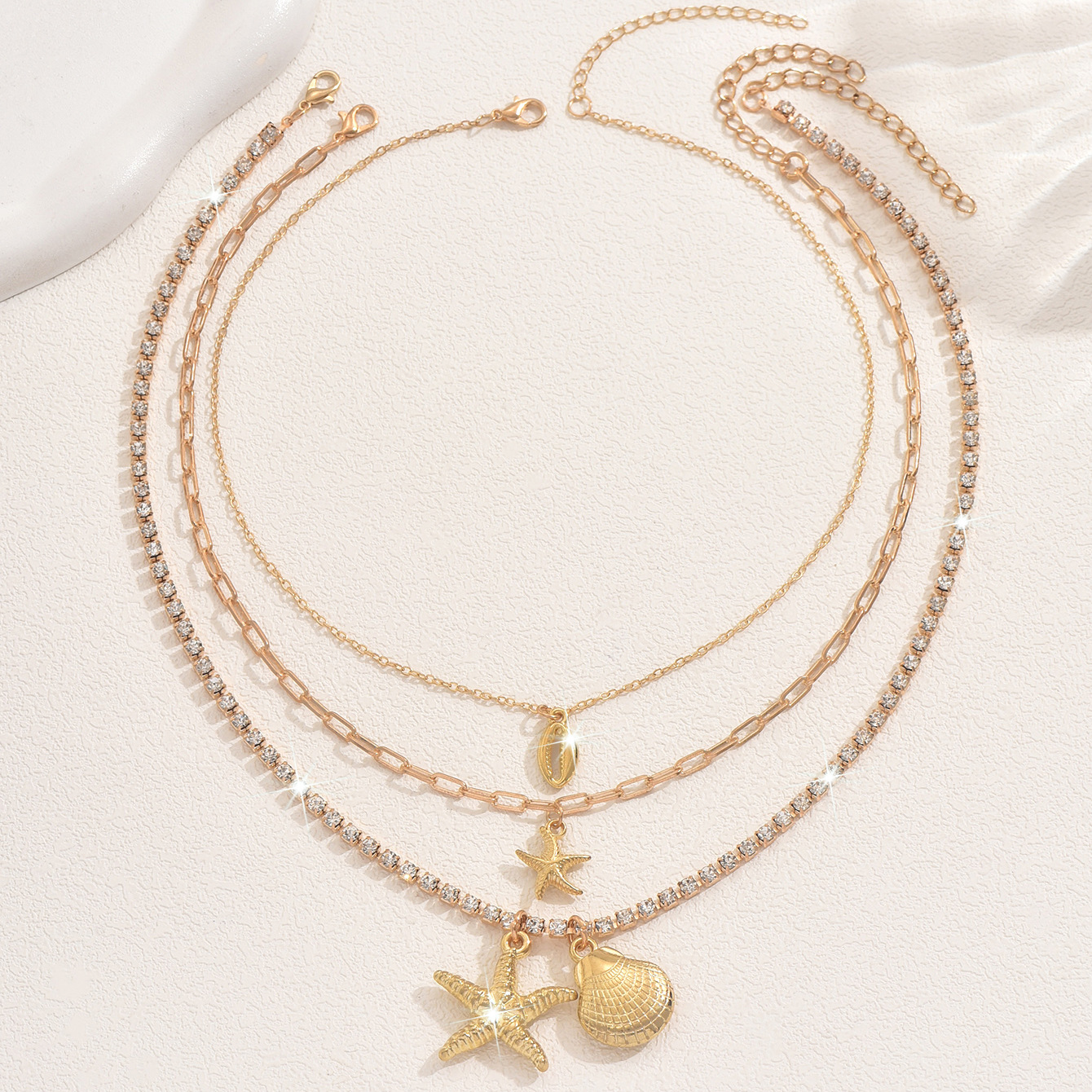 Zinklegierung Halskette, goldfarben plattiert, mehrschichtig & für Frau & mit Strass, verkauft von PC