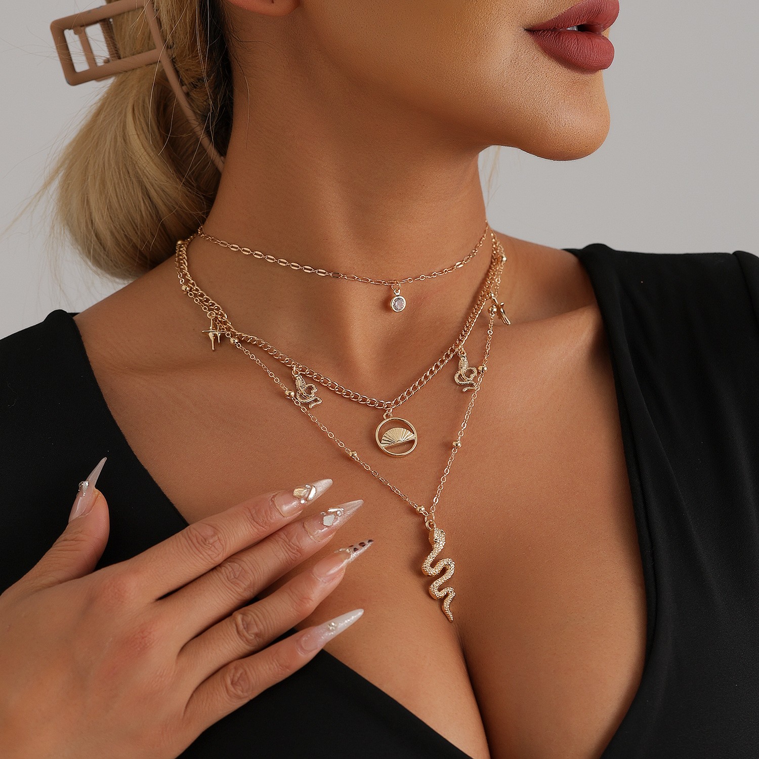 Zinklegierung Halskette, plattiert, Modeschmuck & für Frau & mit Strass, goldfarben, verkauft von PC