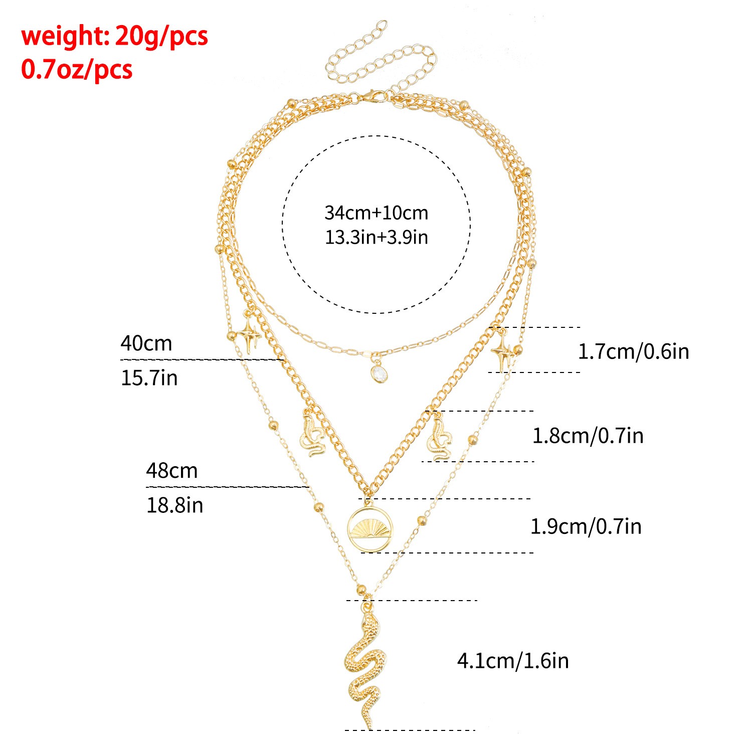 Mode-Multi-Layer-Halskette, Zinklegierung, mit Eisenkette, mit Verlängerungskettchen von 6cm, Mond und Sterne, goldfarben plattiert, Oval-Kette & mit Strass & 2 strängig, frei von Nickel, Blei & Kadmium, 8x8x3mm-15x25x2mm, Länge:ca. 15.5 ZollInch, verkauft von Strang