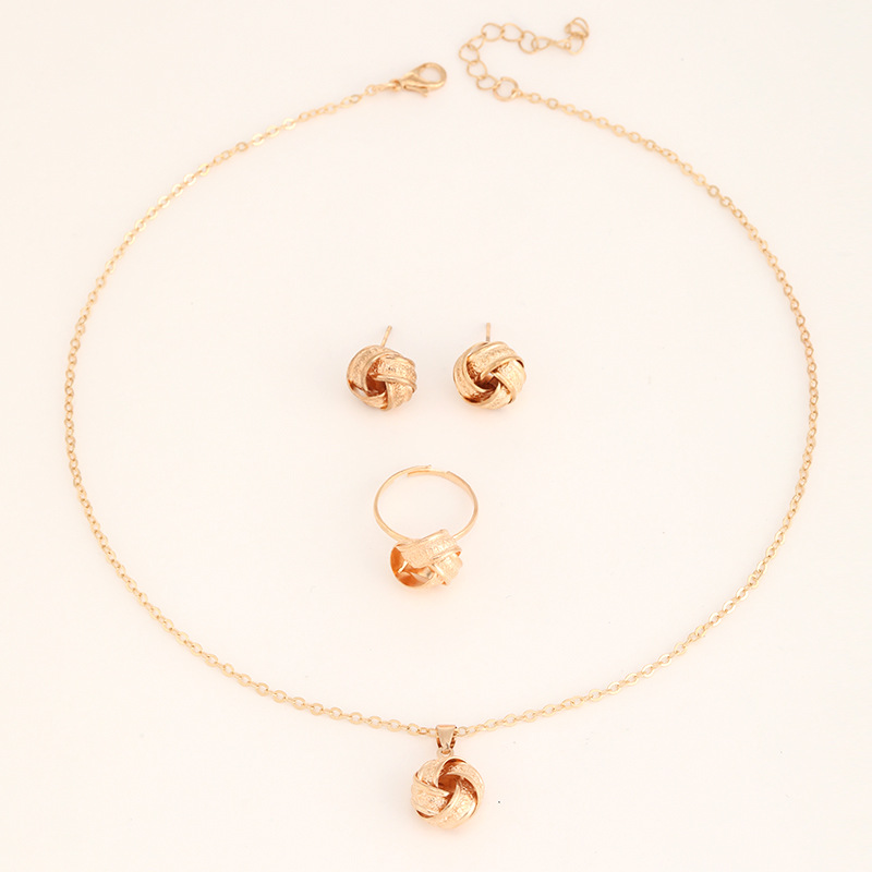 Zinklegierung Mode Schmuckset, Stud Ohrring & Fingerring & Halskette, Geometrisches Muster, goldfarben plattiert, drei Stücke & für Frau, necklace length 18.9inch, Größe:6-8, verkauft von setzen