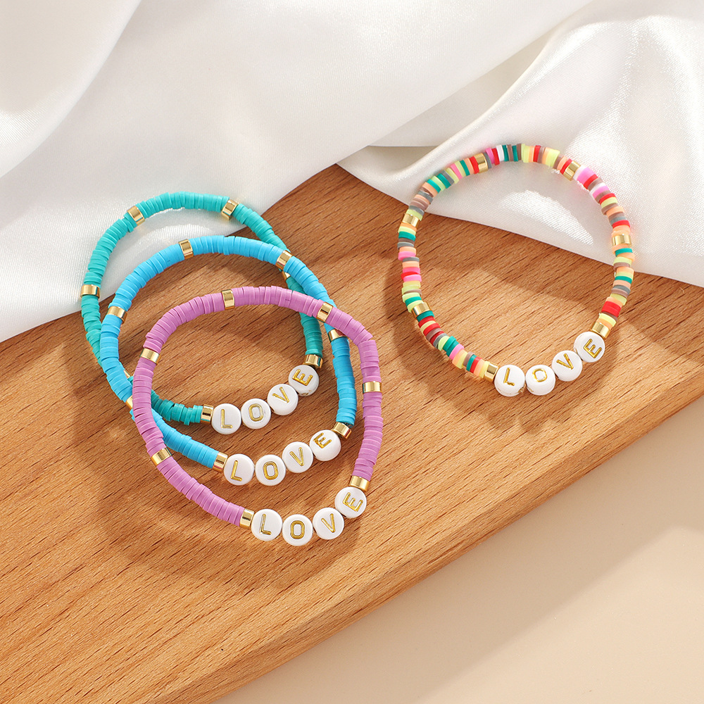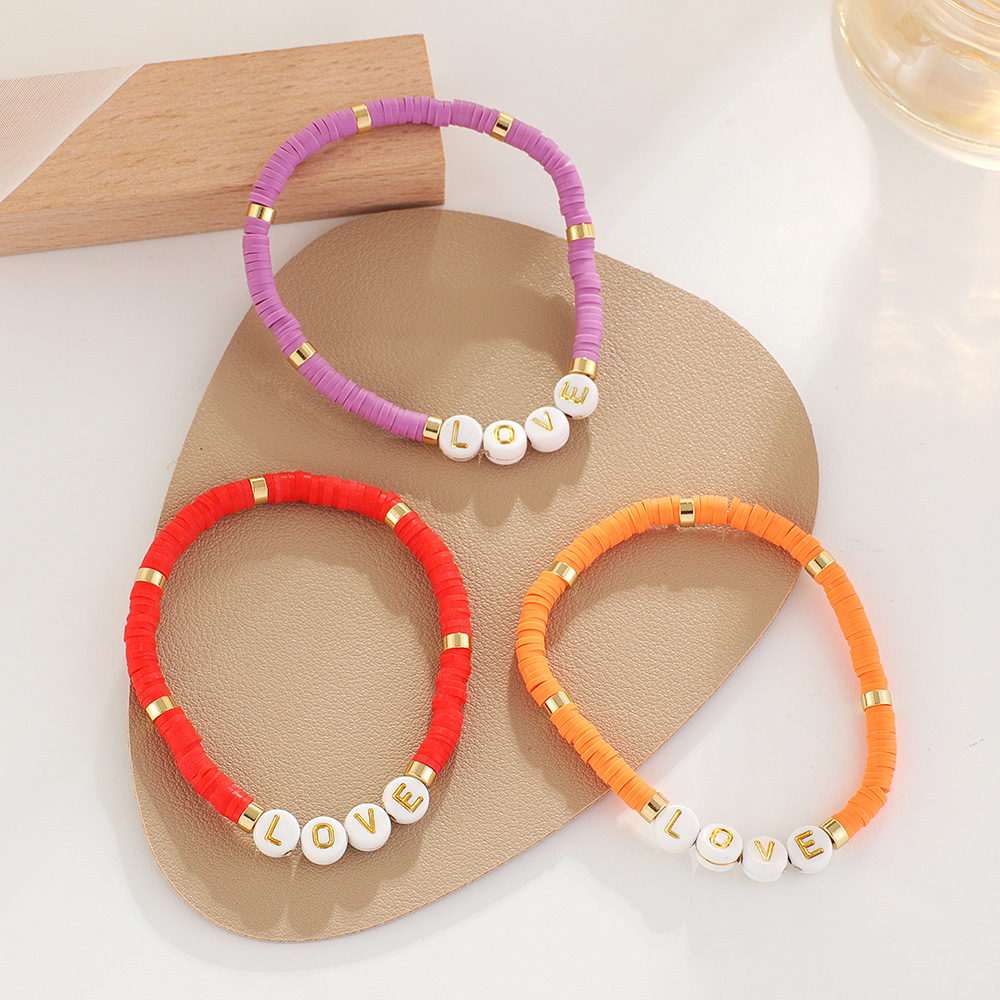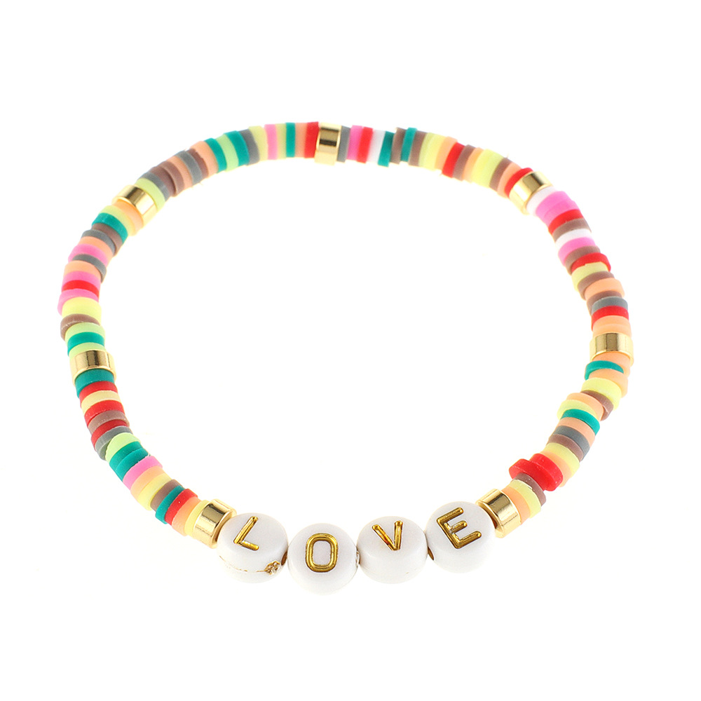 Polymer Ton Armband, mit Zinklegierung & Acryl, handgemacht, unisex & mit Brief Muster, Zufällige Farbe, Länge:ca. 7 ZollInch, verkauft von PC