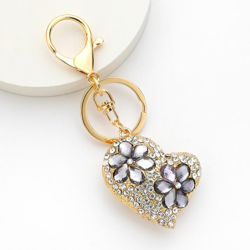 Zink-Legierung Schlüsselanhänger Schmuck, Zinklegierung, Herz, goldfarben plattiert, unisex & mit Strass, 45x110mm, verkauft von PC