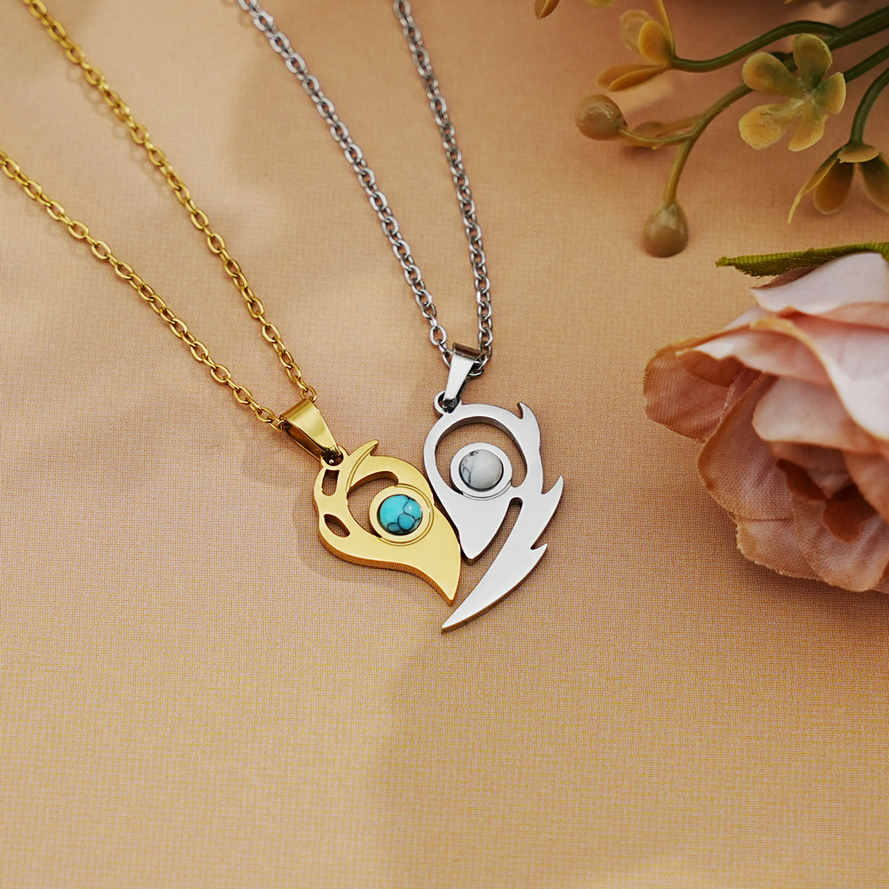 Paar Edelstahl Halskette, 304 Edelstahl, mit Türkis, Vakuum-Ionen-Beschichtung, 2 Stück & unisex, verkauft von setzen